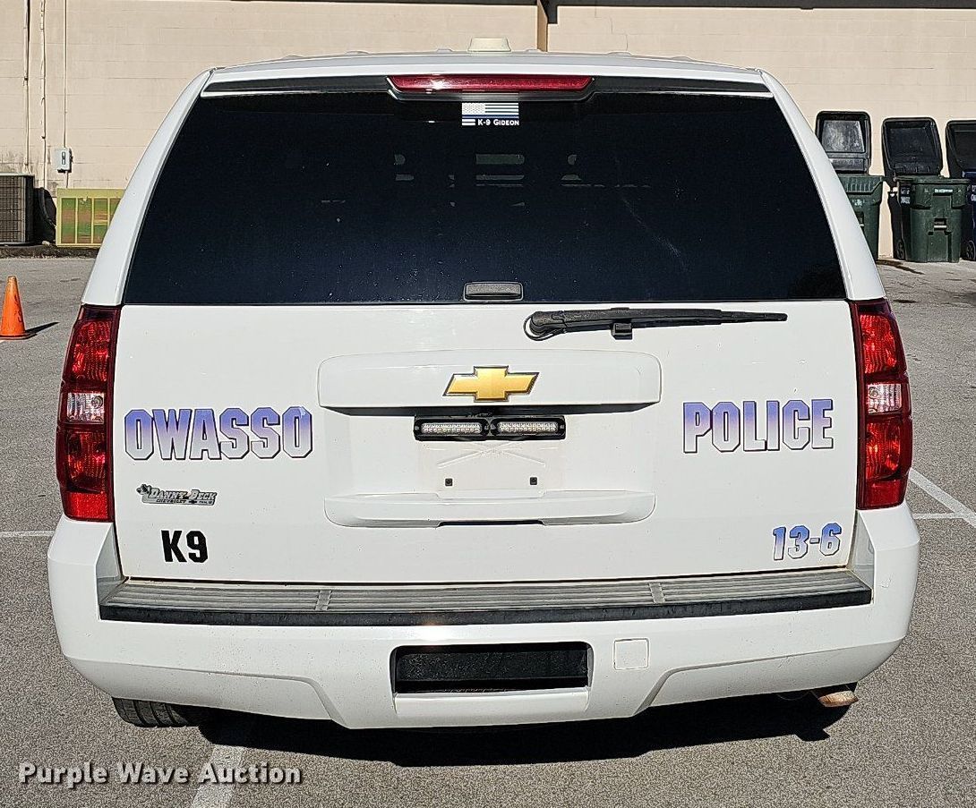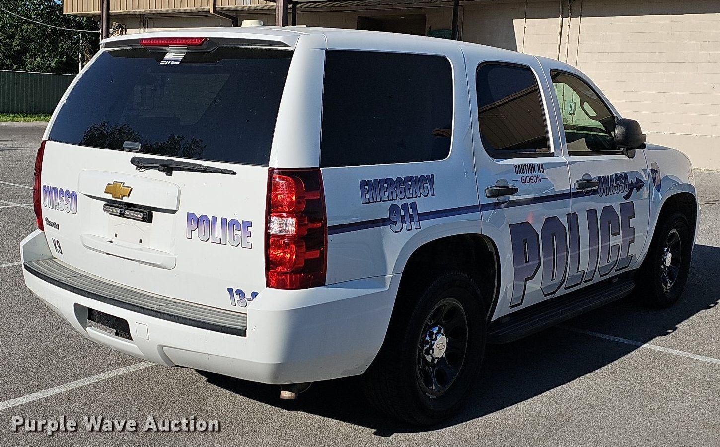 2013 Chevrolet Tahoe Police SUV has sold in Owasso, Oklahoma for $7920. Item LE9730 sold on October 17th, 2023.