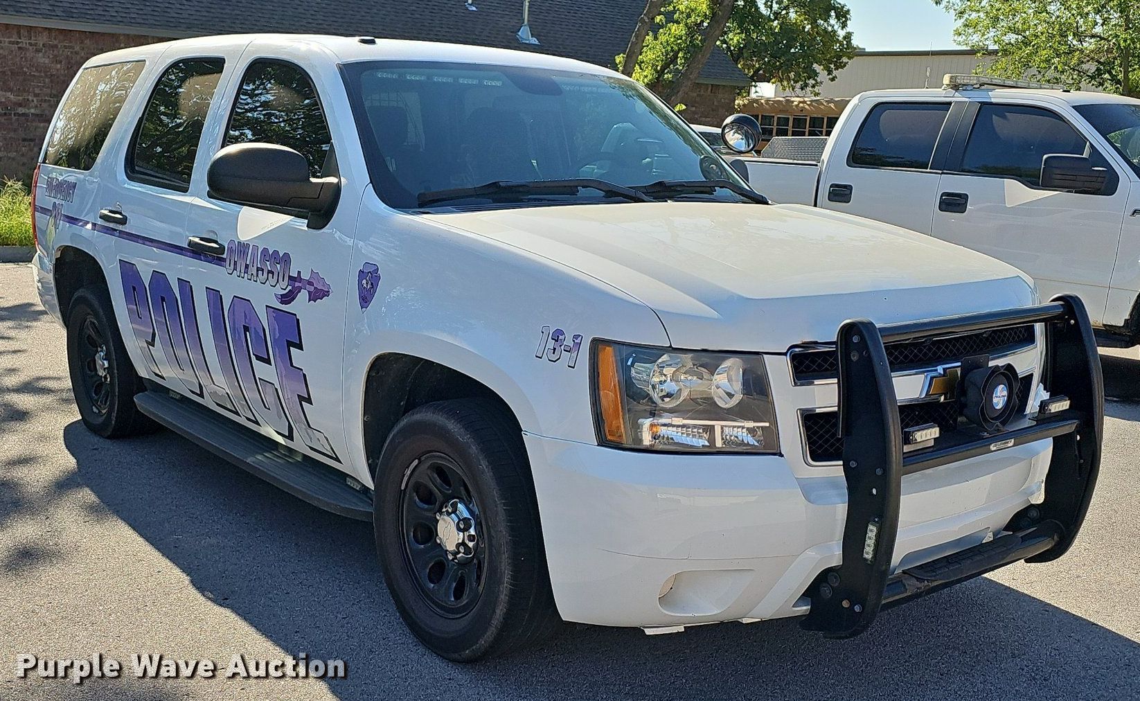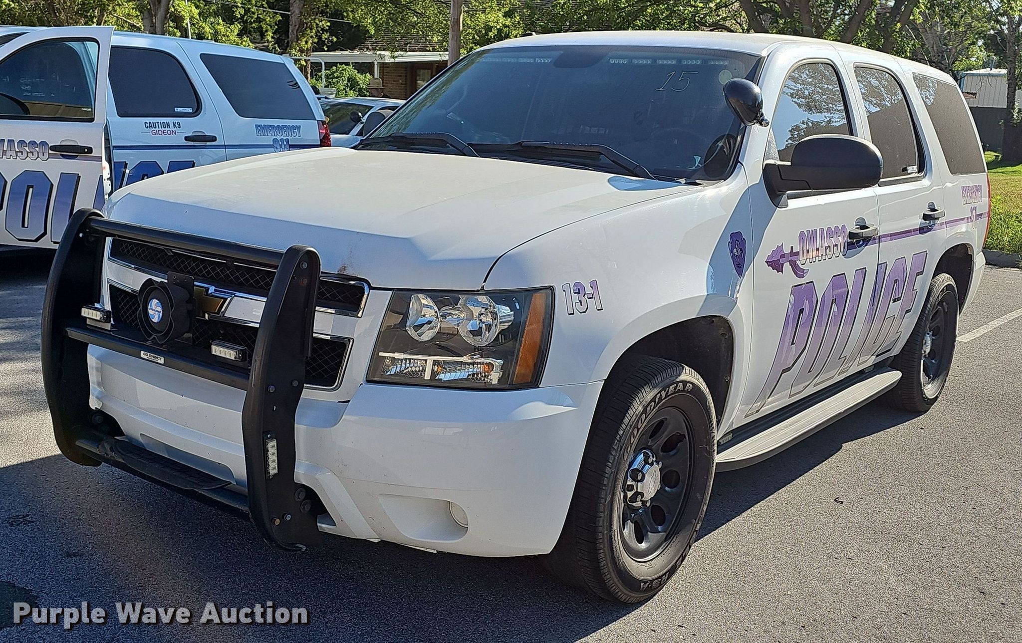 2013 Chevrolet Tahoe Police SUV. Miles: 121,683 on odometer, VIN: 1GNLC2E07DR158157, Unit #: 15. Engine Displacement: 5.3L V8 OHV, Cylinders: 8, Fuel type: Gas. Transmission Automatic. Interior AC, Heat, Seat: Power driver, Power windows, Power locks, Cruise control. Tires Size: P265/60R17. Notes Dash warning indicator: TPMS, Dead battery, Flat tire. Law enforcement and emergency equipment will be removed prior to auction. Includes but not limited to decals, two-way radio, spotlight, emergency lights and siren, firearm rack, and camera. Oklahoma title. Seller is a government entity who will be assigning and distributing the title. Please contact the seller for distribution questions. City of Owasso, OK. 200 South Main Street. Owasso, OK 74055