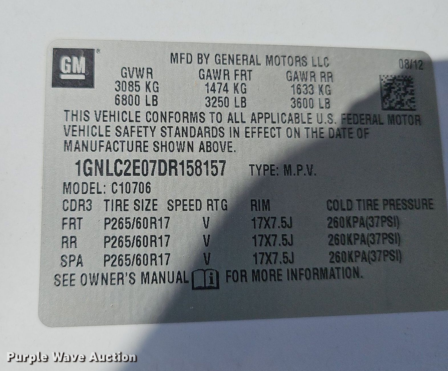 - VIN: 1GNLC2E07DR158157