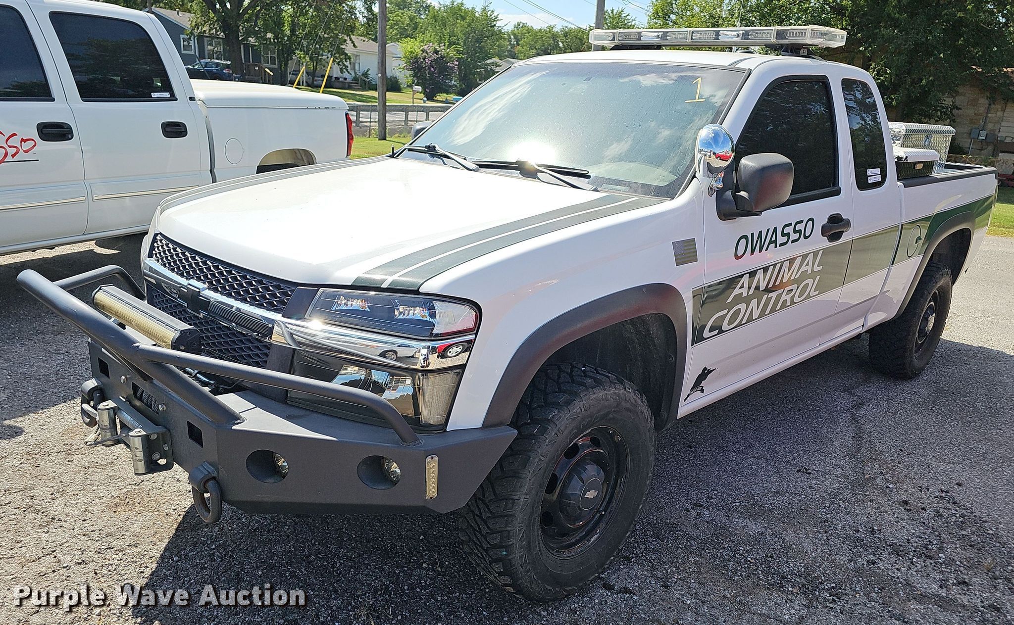 2007 Chevrolet Colorado Ext. Cab pickup truck. Miles: 110,780 on odometer, VIN: 1GCDT199578164744, Unit #: 1. Engine Displacement: 2.9L L4 DOHC, Cylinders: 4, Fuel type: Gas. Transmission Automatic, Four wheel drive. Interior AC, Heat, Power windows, Power locks, Cruise control, Backup camera. Tires Size: LT235/75R15. Notes Decals and emergency service lighting will be removed prior to auction.. Oklahoma title. Seller is a government entity who will be assigning and distributing the title. Please contact the seller for distribution questions. City of Owasso, OK. 200 South Main Street. Owasso, OK 74055