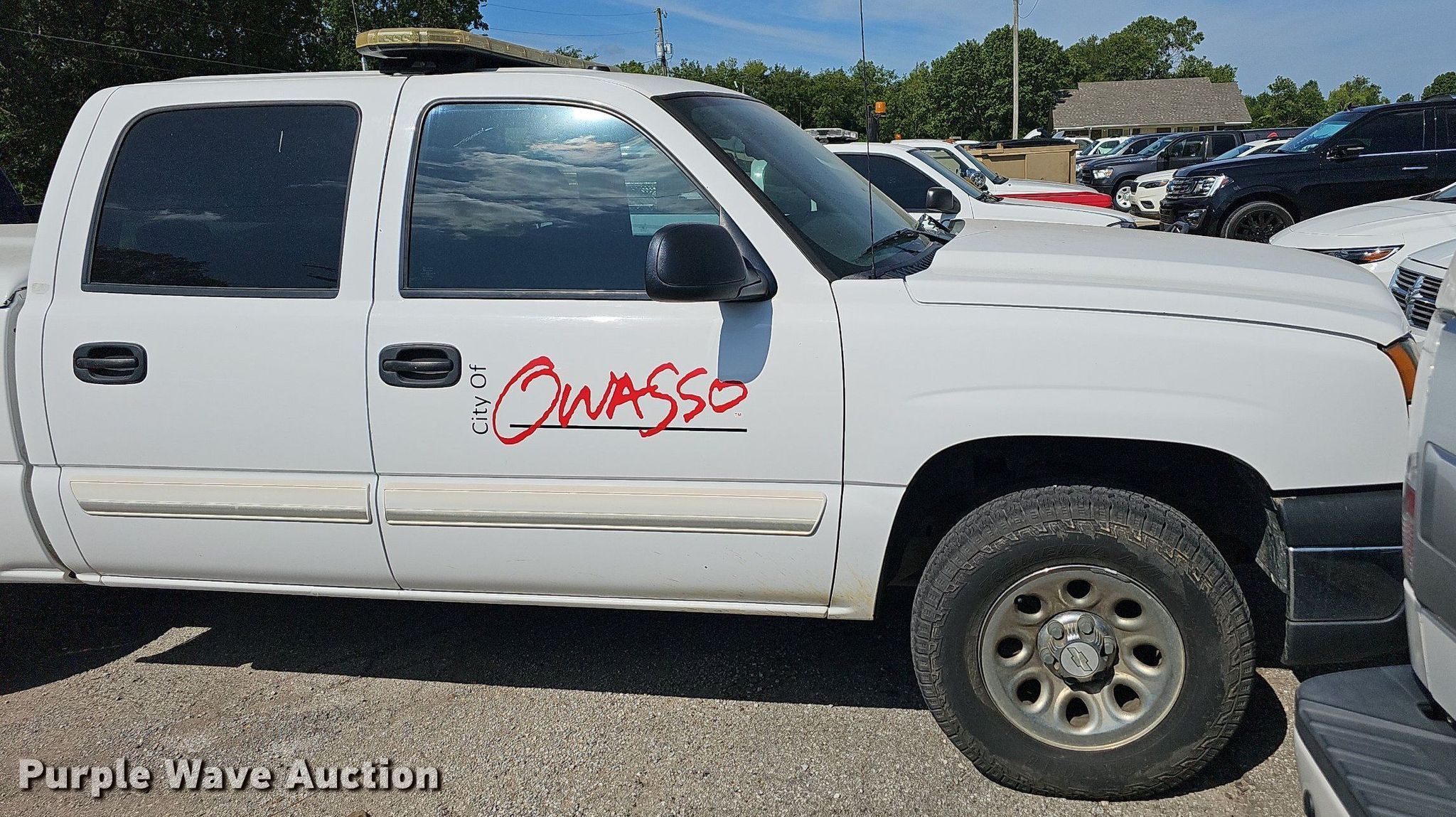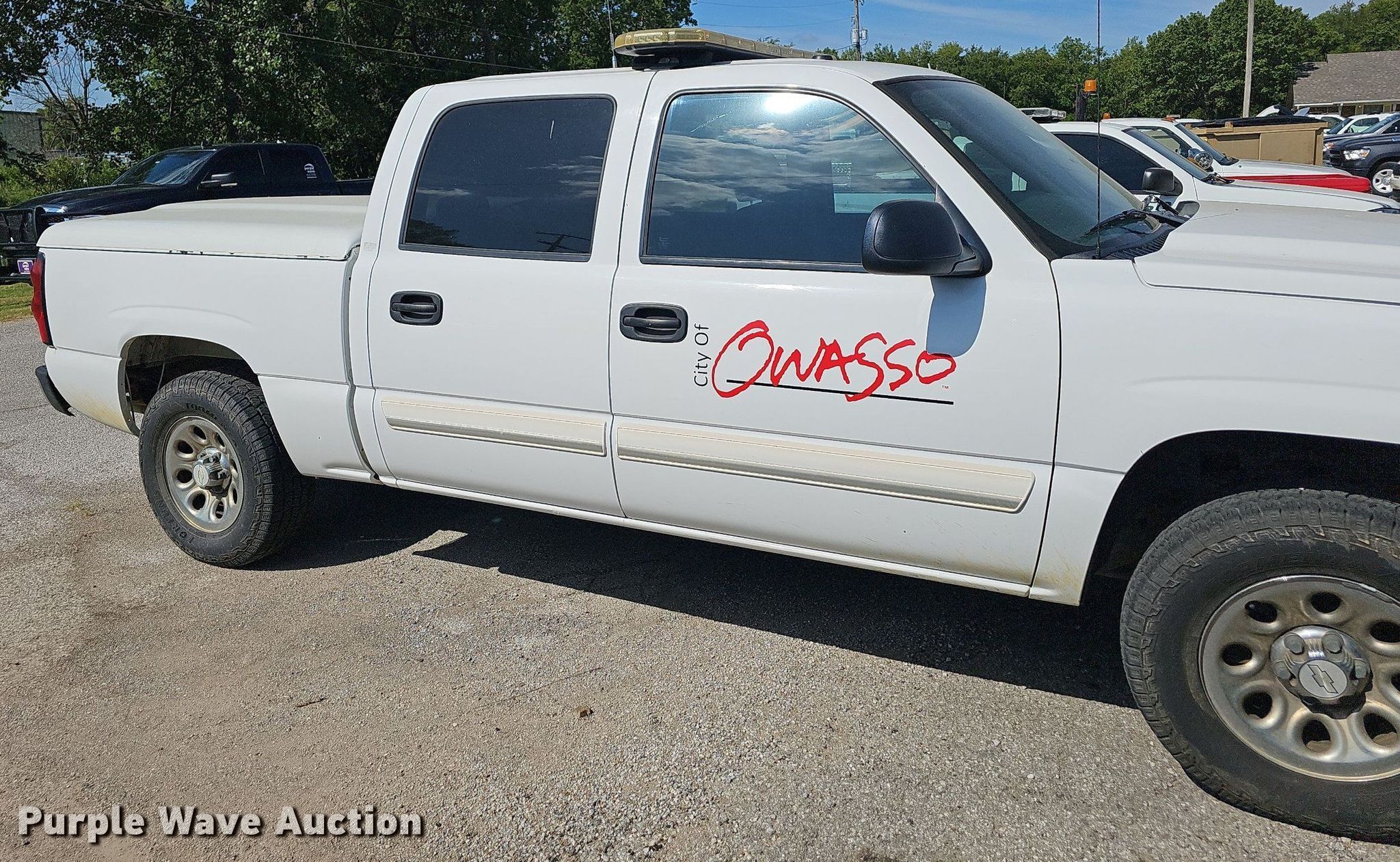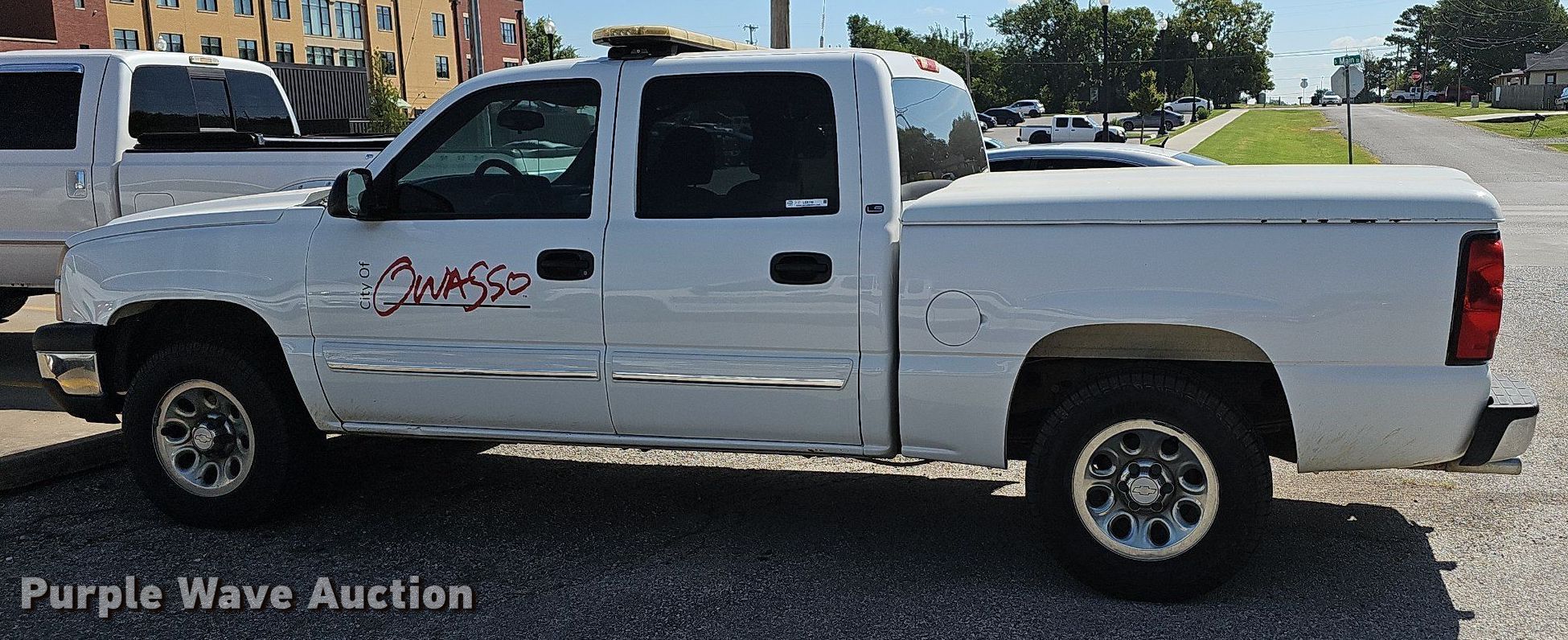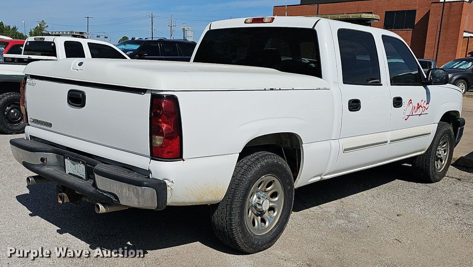 2007 Chevrolet Silverado 1500 Crew Cab pickup truck. Miles: 127,841 on odometer, VIN: 2GCEK13V871136906, Unit #: 5. Engine Displacement: 4.8L V8 OHV, Cylinders: 8, Fuel type: Gas. Transmission Automatic, Four wheel drive. Interior AC, Heat, Power windows, Power locks, Cruise control. Tires Size: LT265/70R17. Notes Dash warning indicator: Check engine, Decals and emergency lighting will be removed prior to auction. Oklahoma title. Seller is a government entity who will be assigning and distributing the title. Please contact the seller for distribution questions. City of Owasso, OK. 200 South Main Street. Owasso, OK 74055