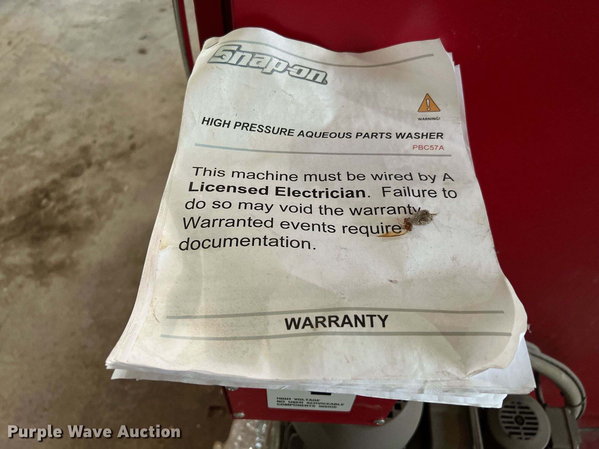 Purple Wave is selling a used Parts Washer in Texas. This item is a Snap-on PBC57A parts washer with the following: Volts: 220, Phase: Single