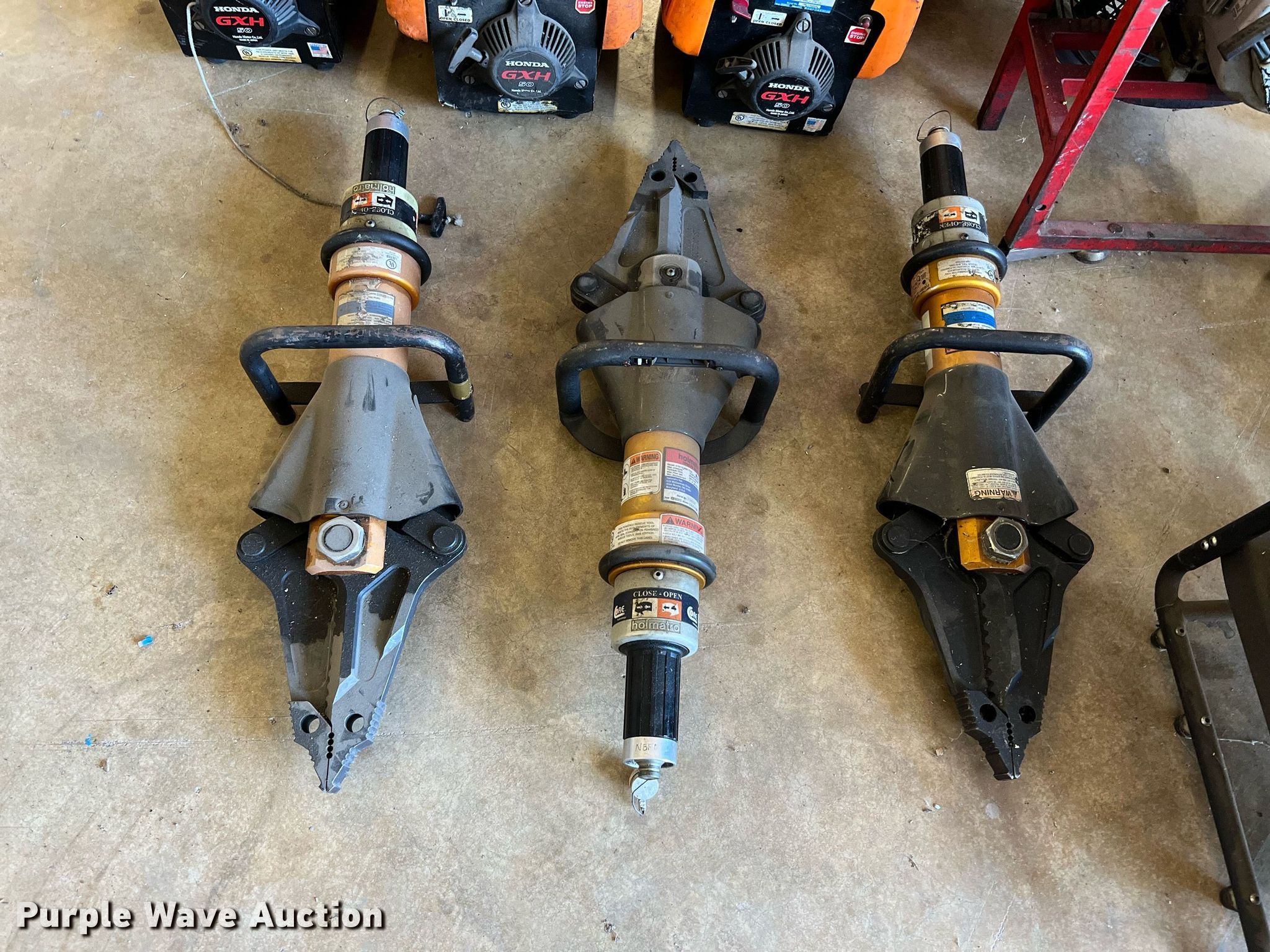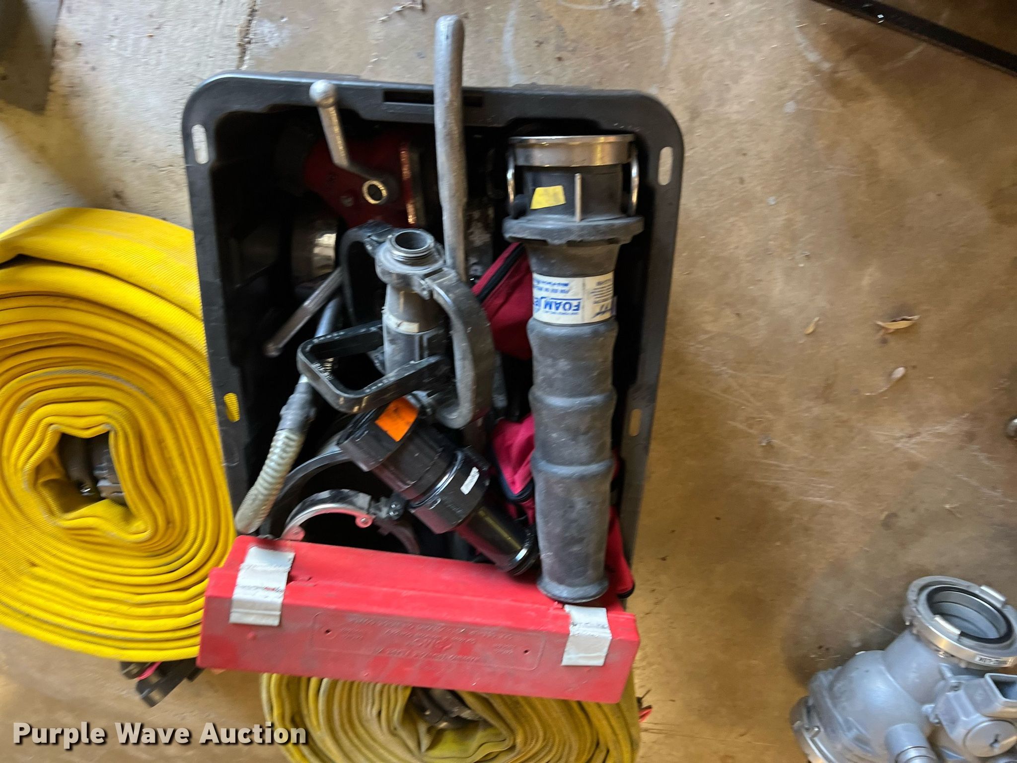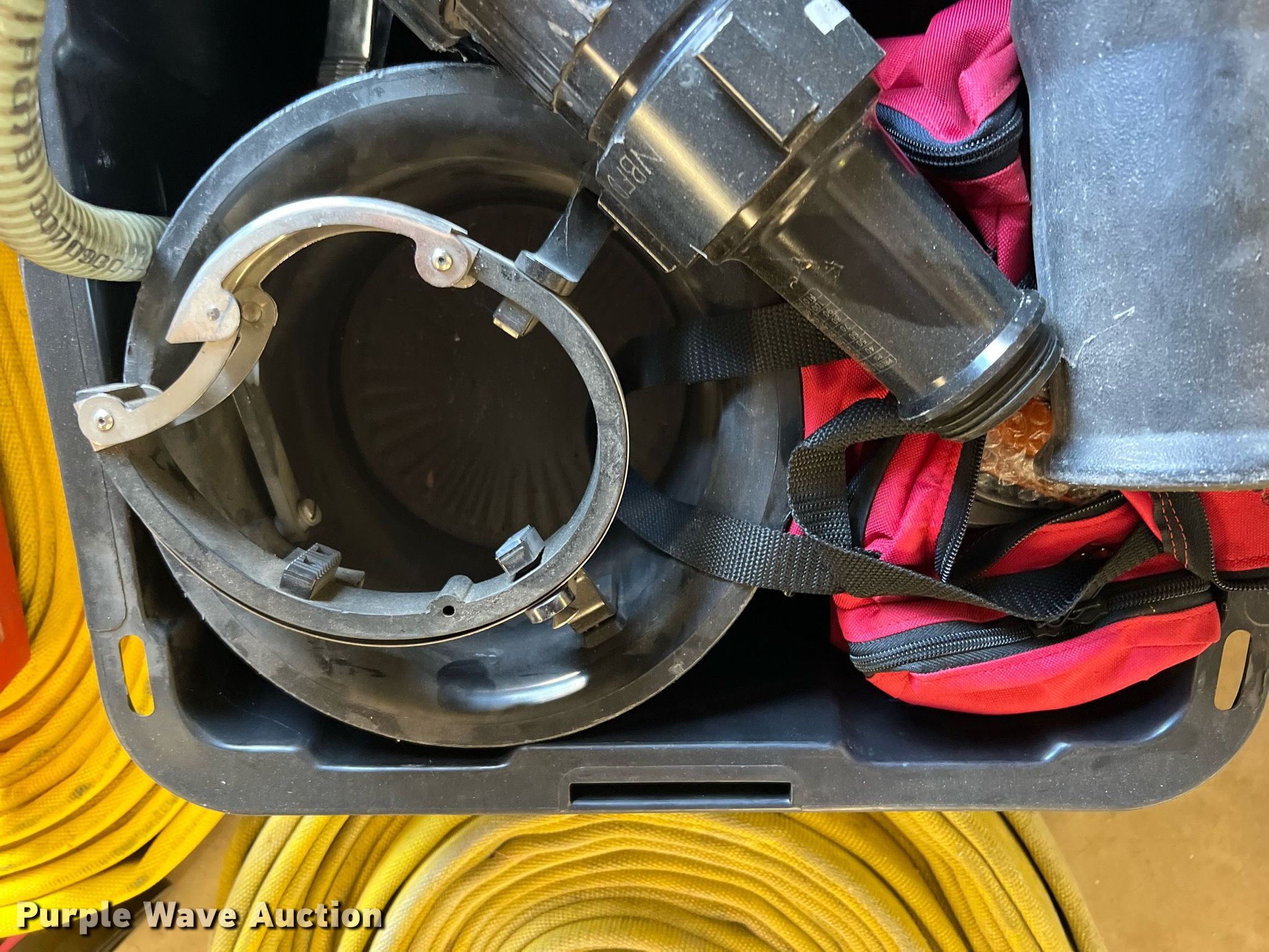 Purple Wave is selling a used Tools in Texas. This item is a Fire rescue equipment with the following: (3) rescue jaws, (3) Honda GXH 50 power units, Holmatrol rescue power unit, Amkus rescue power unit, (2) 5" diameter fire hoses, (2) water valve sets and more
