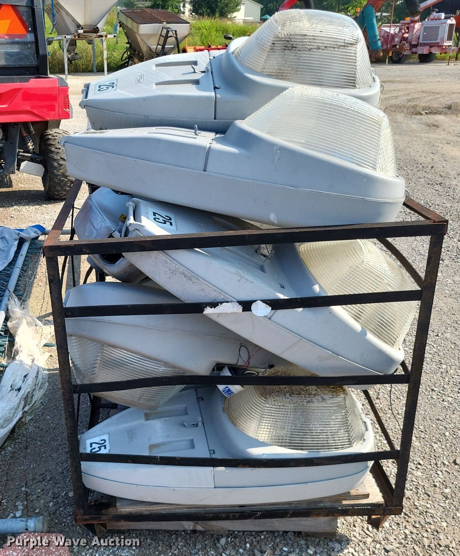 Purple Wave is selling a used Other Industrial or Business in Missouri. This item is a Tools with the following: Propane grill, 116,000 BTU/HR, (8) burners, (2) LPG hookups, Tanks not included, Approx. 14 street lamp fixtures, Poles and arms not included, (4) office chairs, (3) Thunder Beam tornado sirens, (6) siren control panel boxes, (3) wood poles, Length: Approx. 48',