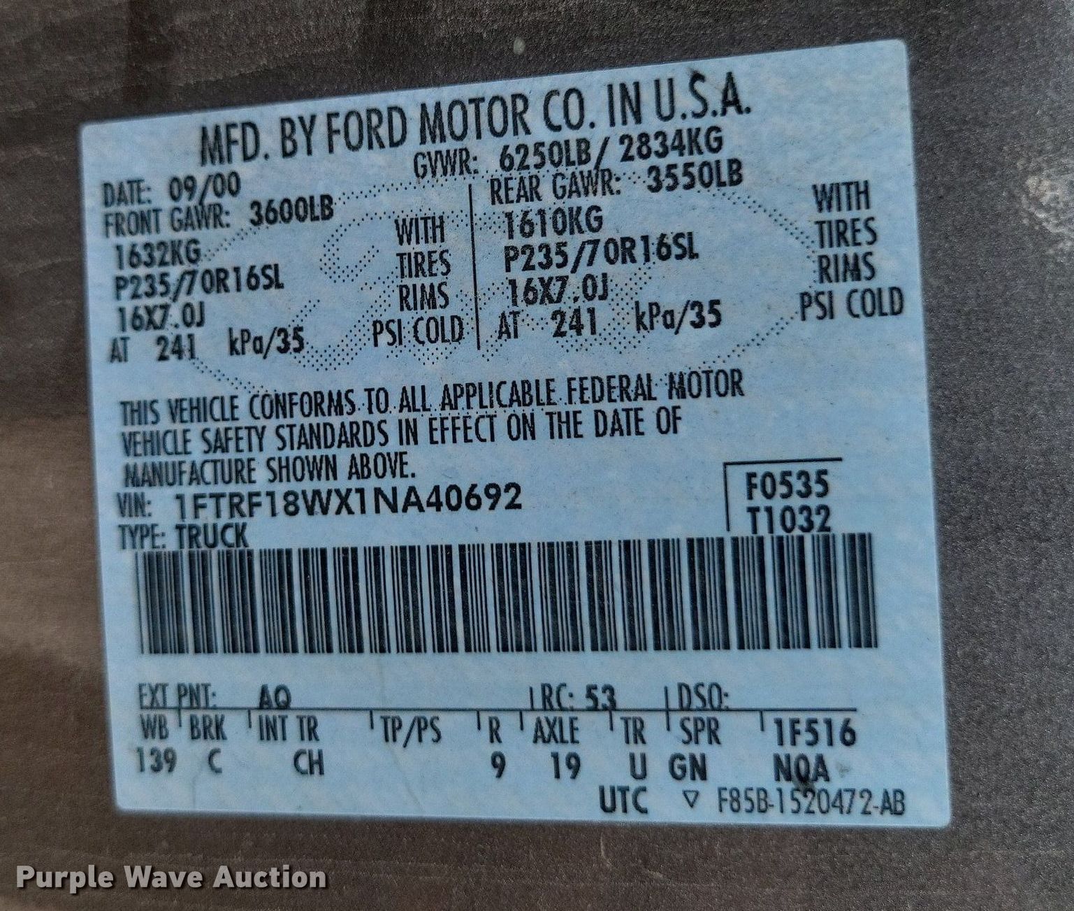 Purple Wave is selling a used 1/2 Ton Pickup or Van in Missouri. This item is a 2001 Ford F150 XL pickup truck with the following: Miles: 127,812 on odometer, VIN: 1FTRF18WX1NA40692