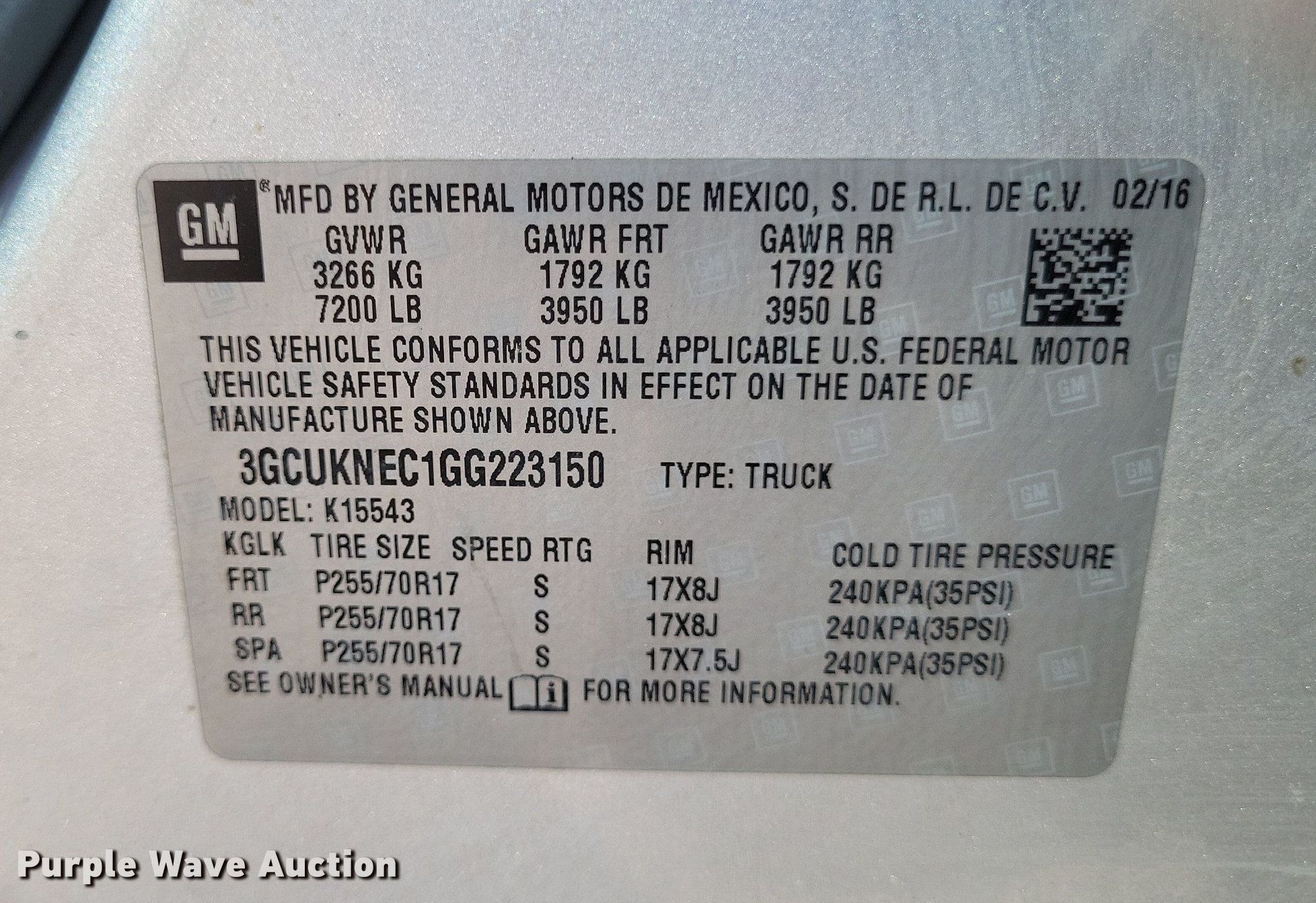 • VIN: 3GCUKNEC1GG223150