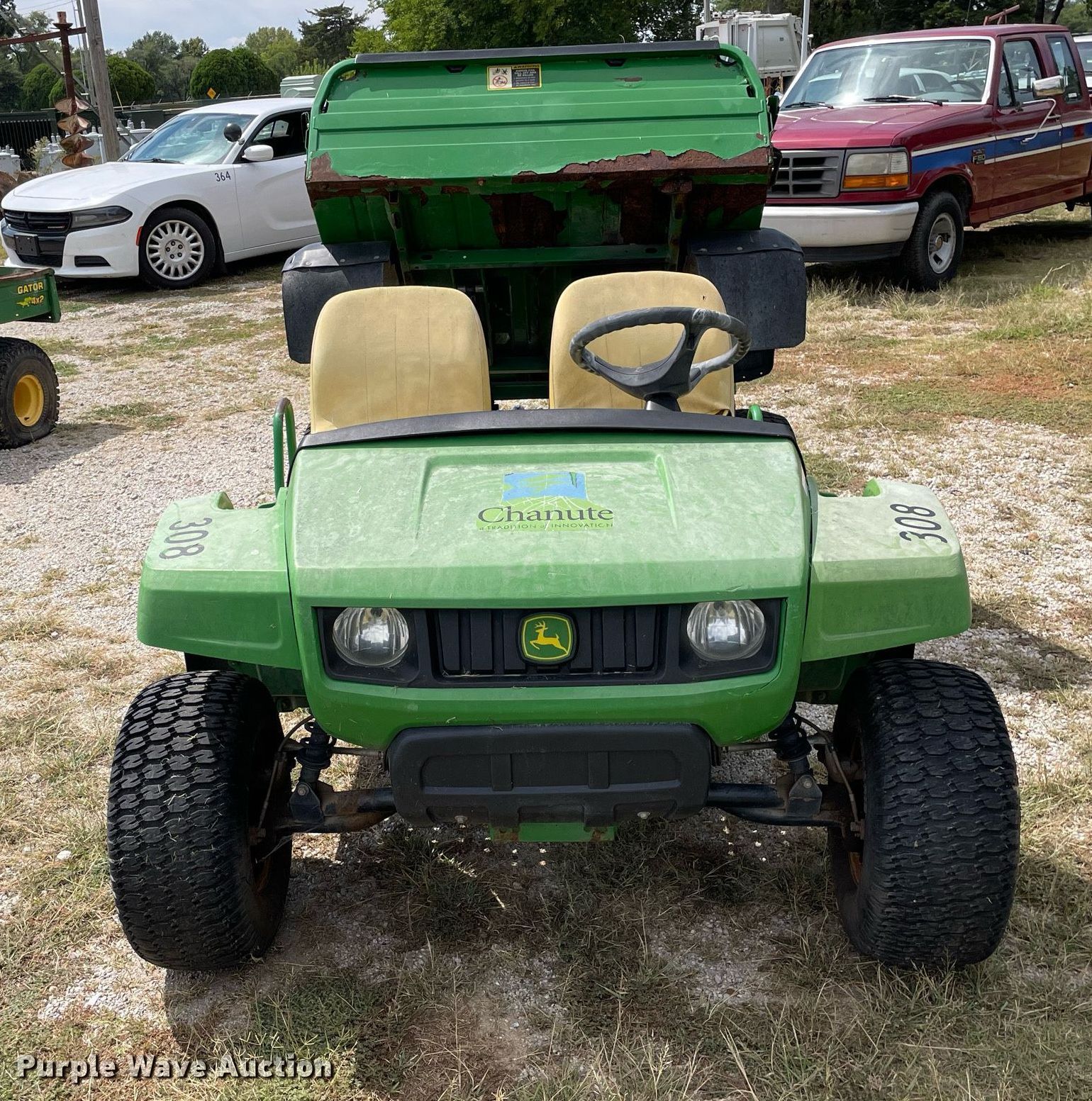 2007 John Deere Gator Turf utility vehicle. Serial: W0TURFD004694, Unit #: 308. Engine Cylinders: 1, Fuel type: Gas, Electric start. Transmission Automatic. Features Receiver hitch, Dump bed 45" L x 50" W, Dump bed type: Electric/ Hydraulic. Tires Front: 22x9.50-10, Rear: 24x12.00-10. Notes Dump bed stuck in upright position , Non-operational unit. City of Chanute, KS. Chanute, KS 66720