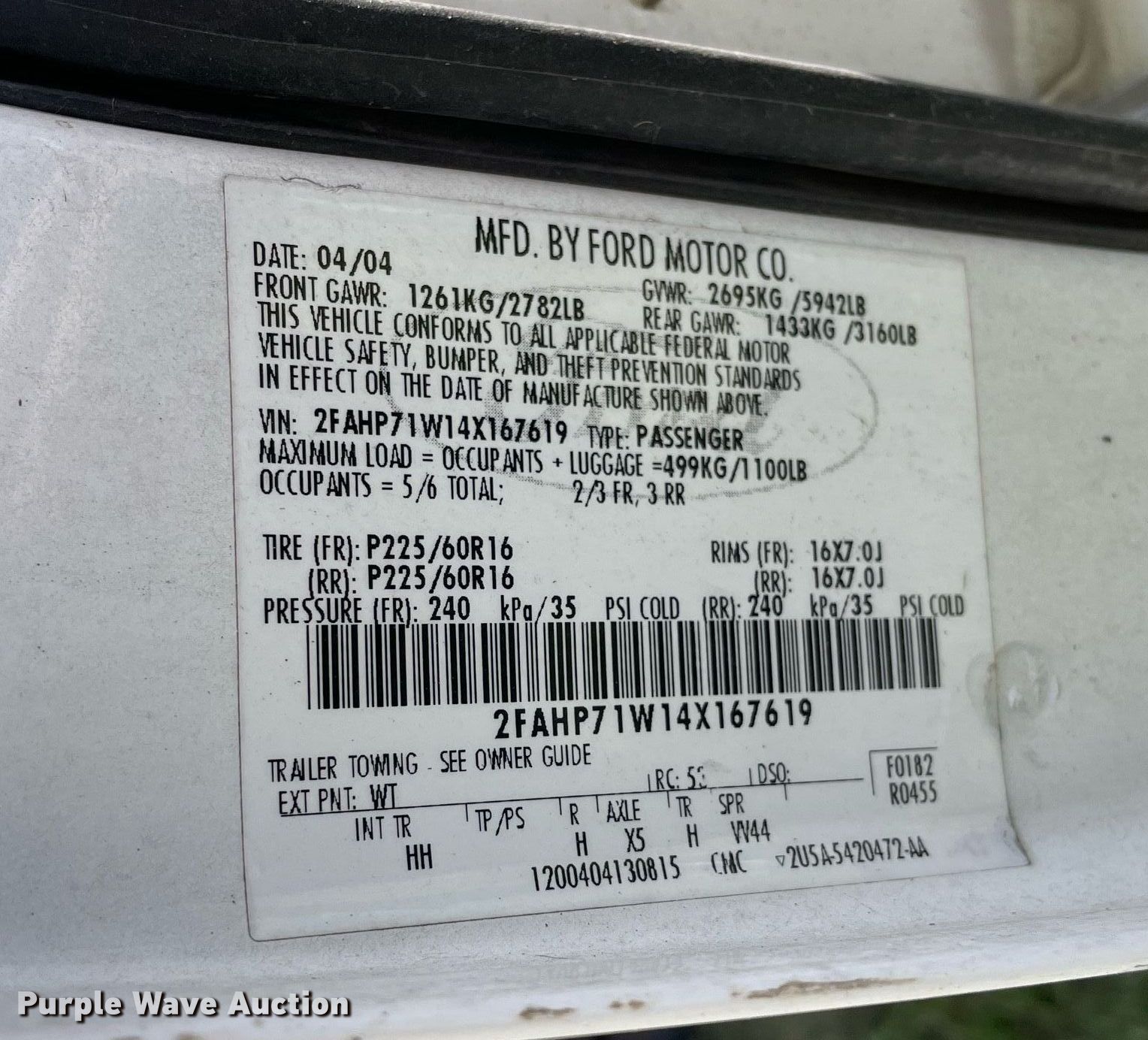 Purple Wave is selling a used Passenger Vehicle in Kansas. This item is a 2004 Ford Crown Victoria Police Interceptor with the following: Miles: 163,376 on odometer, VIN: 2FAHP71W14X167619