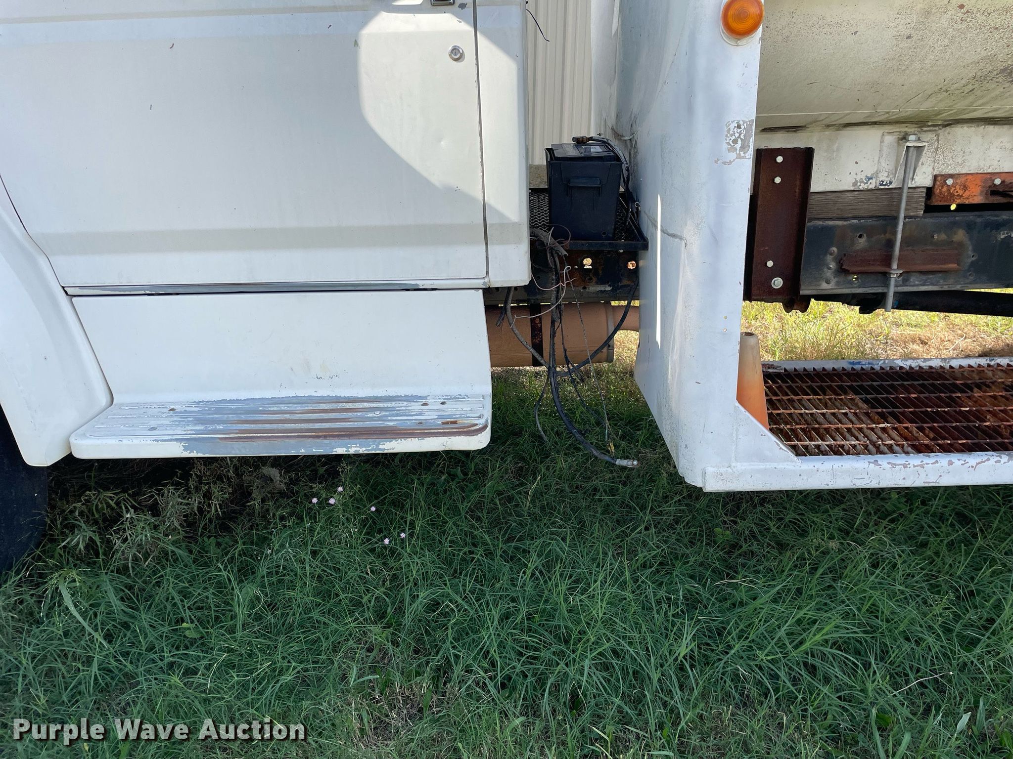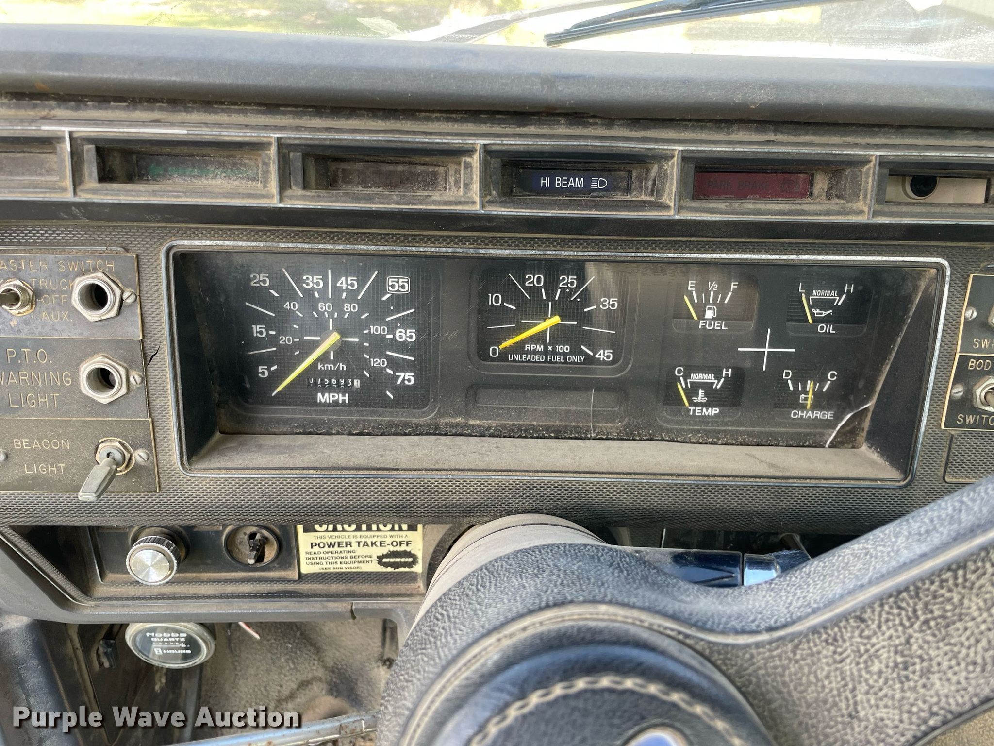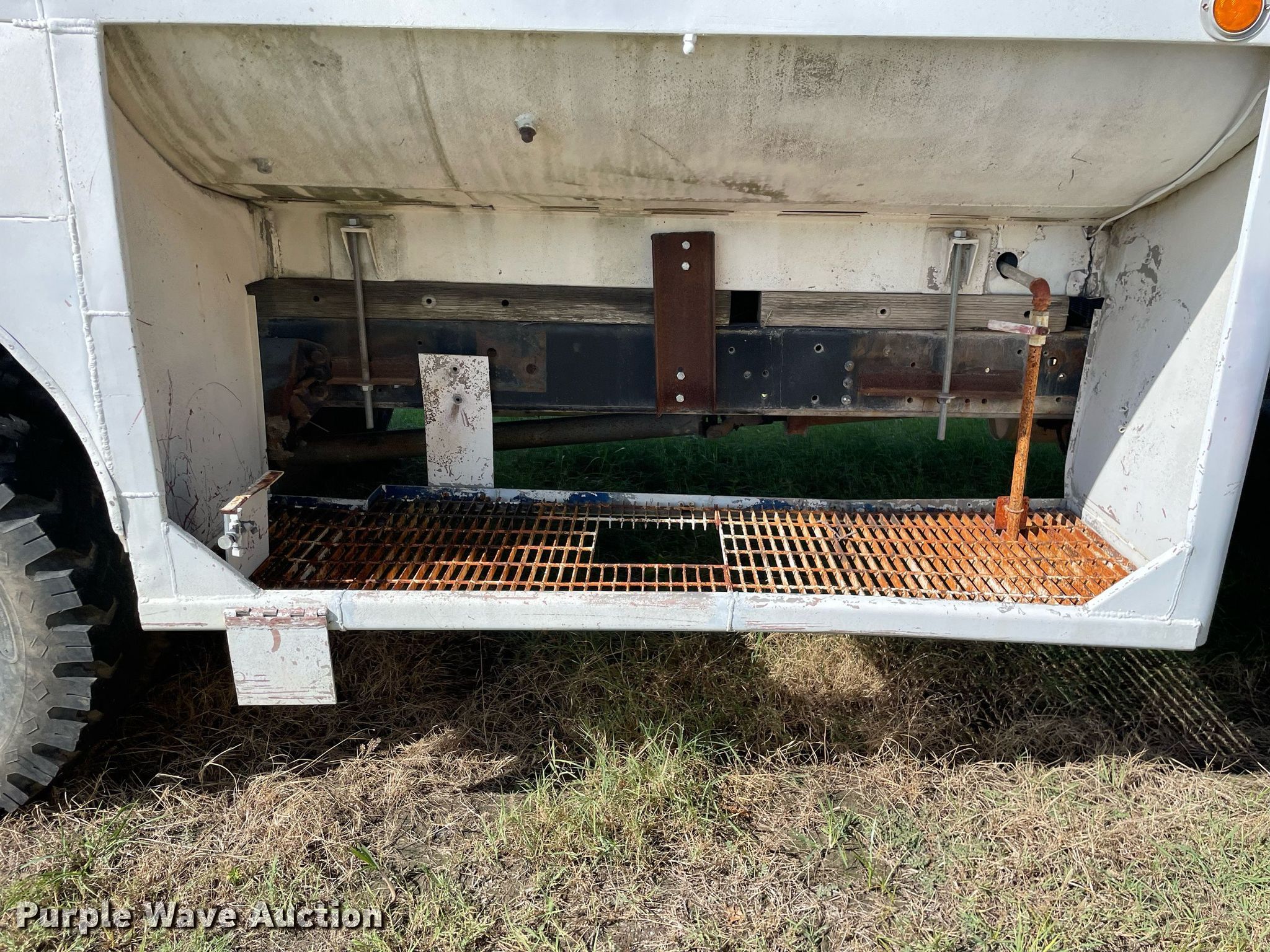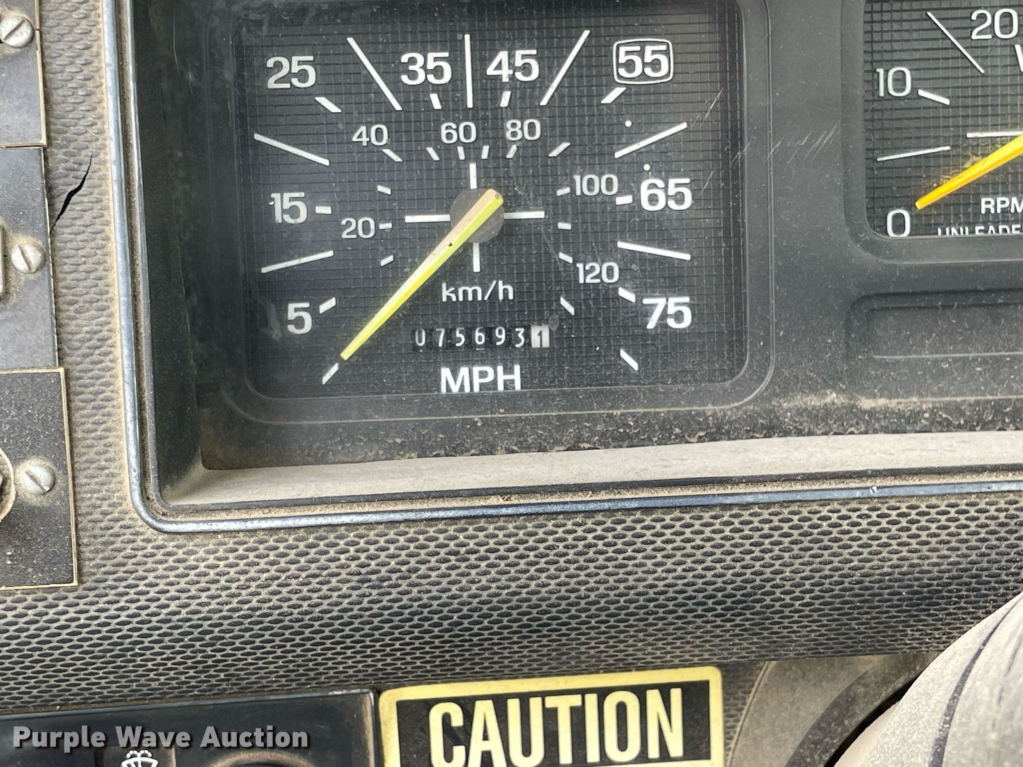 1991 Ford F700 tank truck. Miles: 75,693 on odometer, Hours: 2,590 on meter, VIN: 1FDPF70JXMVA33364, Unit #: 123. Engine Displacement: 7.0L, Cylinders: 8, Fuel type: Gas. Transmission Manual, Speed: 5, plus 2. Chassis Axles: Single, Suspension: Spring, Brakes: Hydraulic, PTO, GVWR: 30,000 lbs. Interior Heat. Features Bed / tank 16' L x 92" W, Spray bar: Rear, Top fill, Rear outlet: 3". Tires Front: 10R20, Rear: 10.00-20. Notes Wiring harness burnt , Unit will need to be towed or hauled, Non-operational unit. Kansas title. Title distribution may be delayed up to 14 days from verification of funds. City of Chanute, KS. Chanute, KS 66720