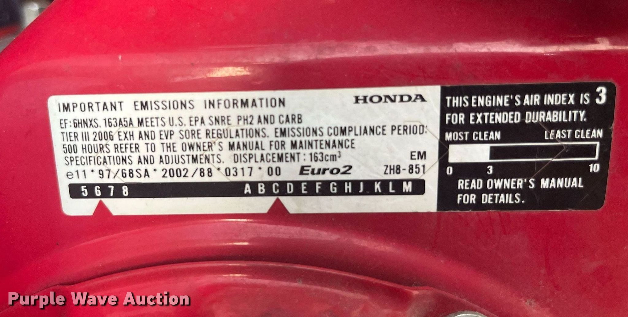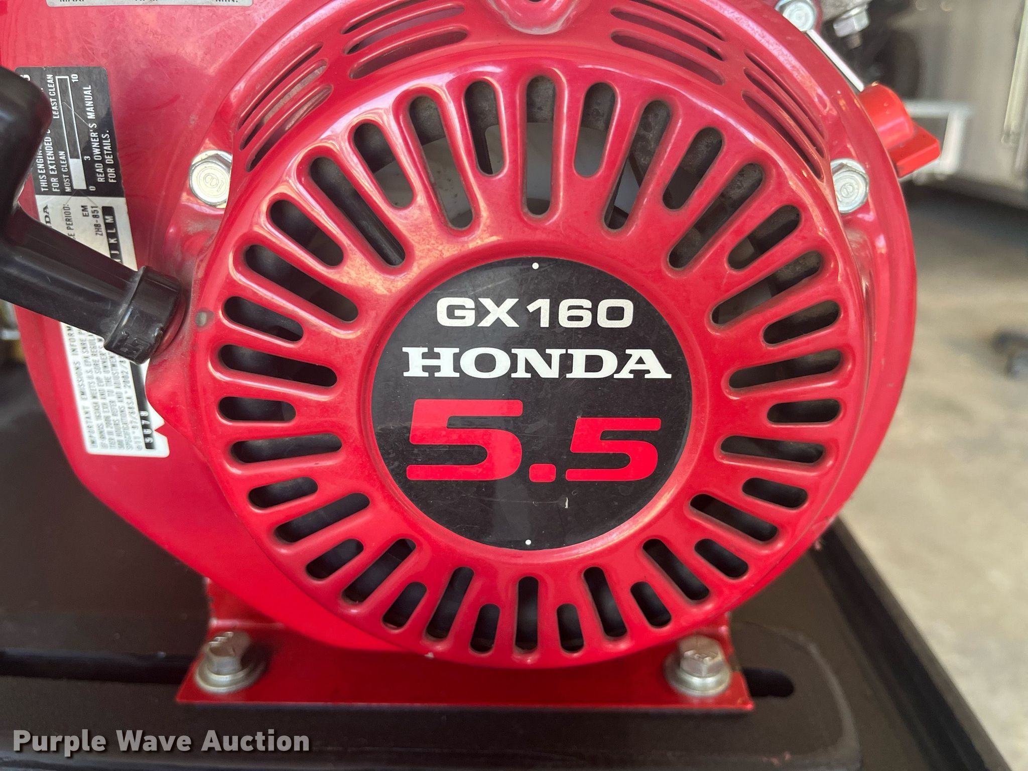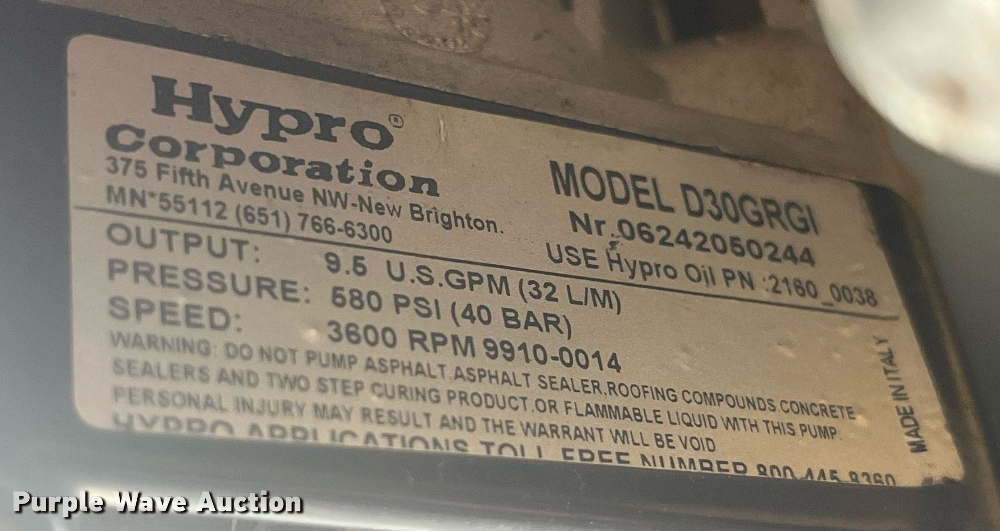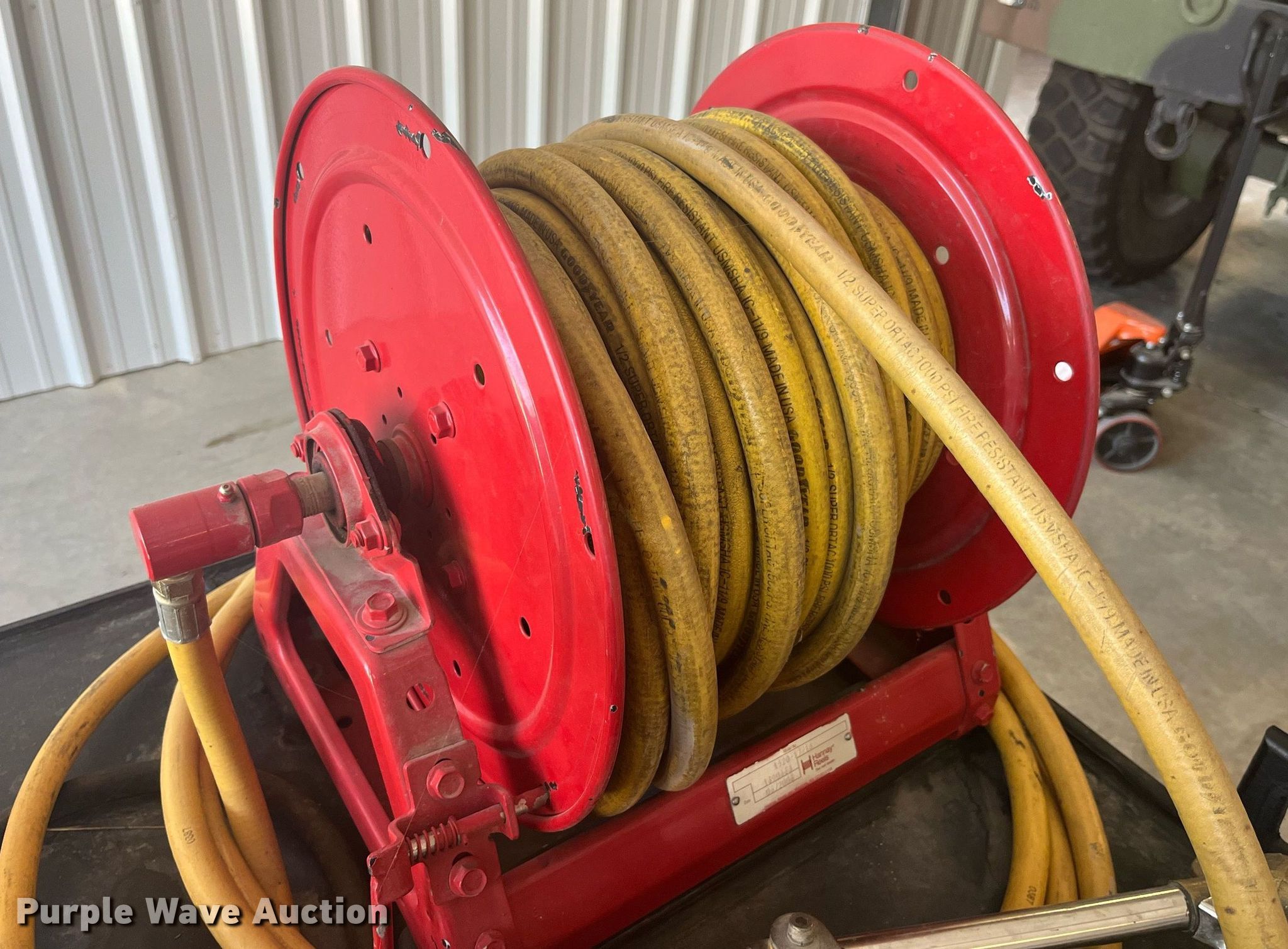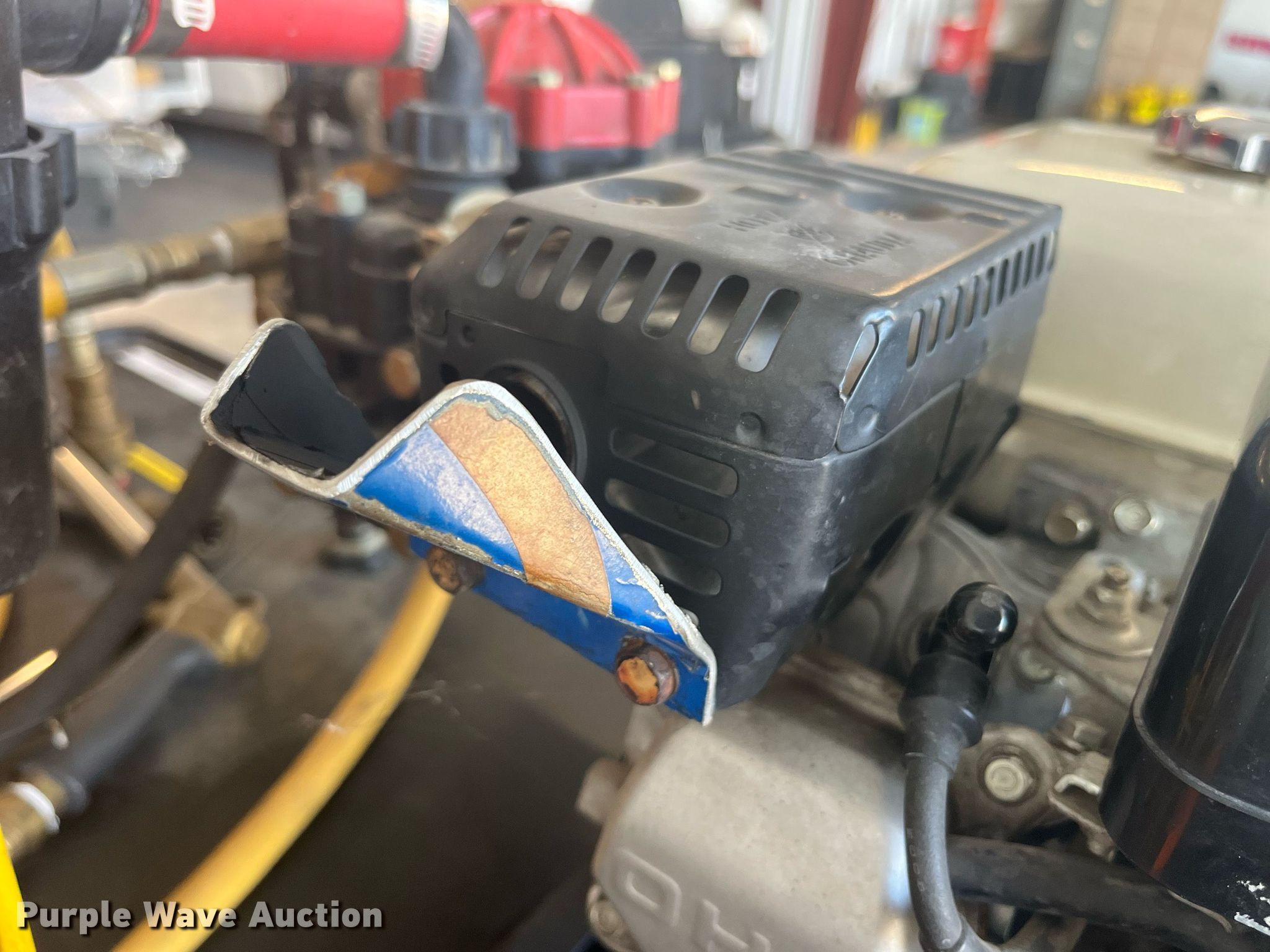 Brush fire skid unit. Serial: MAR2228. Engine Honda GX160, Displacement: 163 cc, Cylinders: 1, Fuel type: Gas. Features Steel tank Capacity: 90 gallons, Hypro D30GRGI pump, Hannay 1520-17-18 hose reel, 1/2" diameter hose, (2) spray nozzles. City of Cameron, MO. 101 West 2nd. Cameron, MO 64429