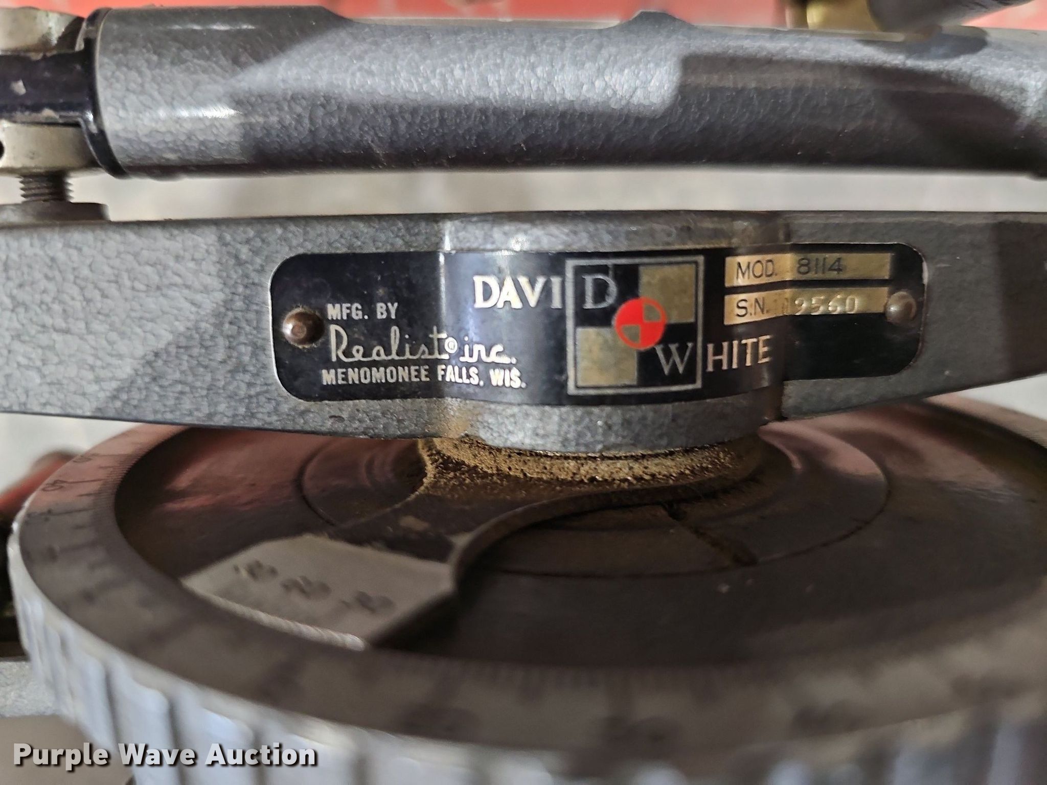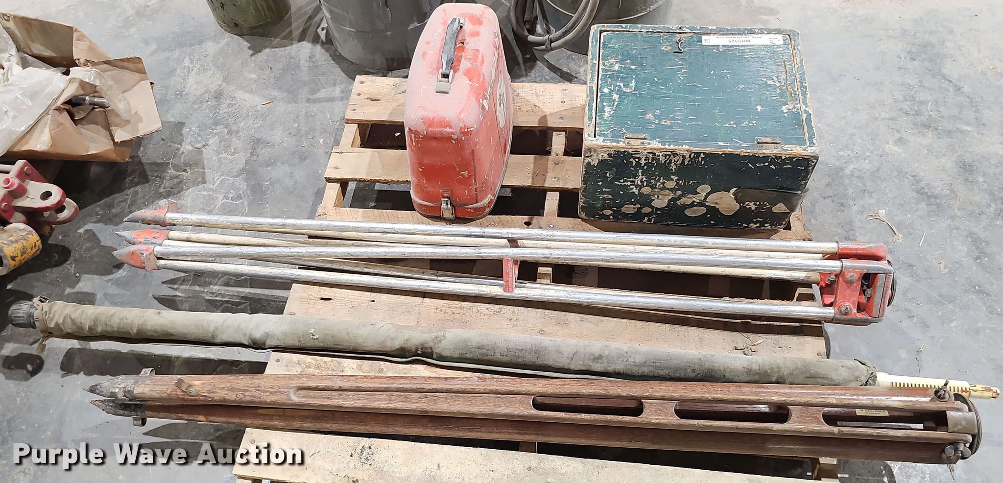 Purple Wave is selling a used Surveying Equip. in Missouri. This item is a Survey equipment with the following: Keuffel & Esser Co survey scope, Serial: 42312, 8114 David & White survey scope, Serial: 109560, (2) tripods, Survey measuring stick