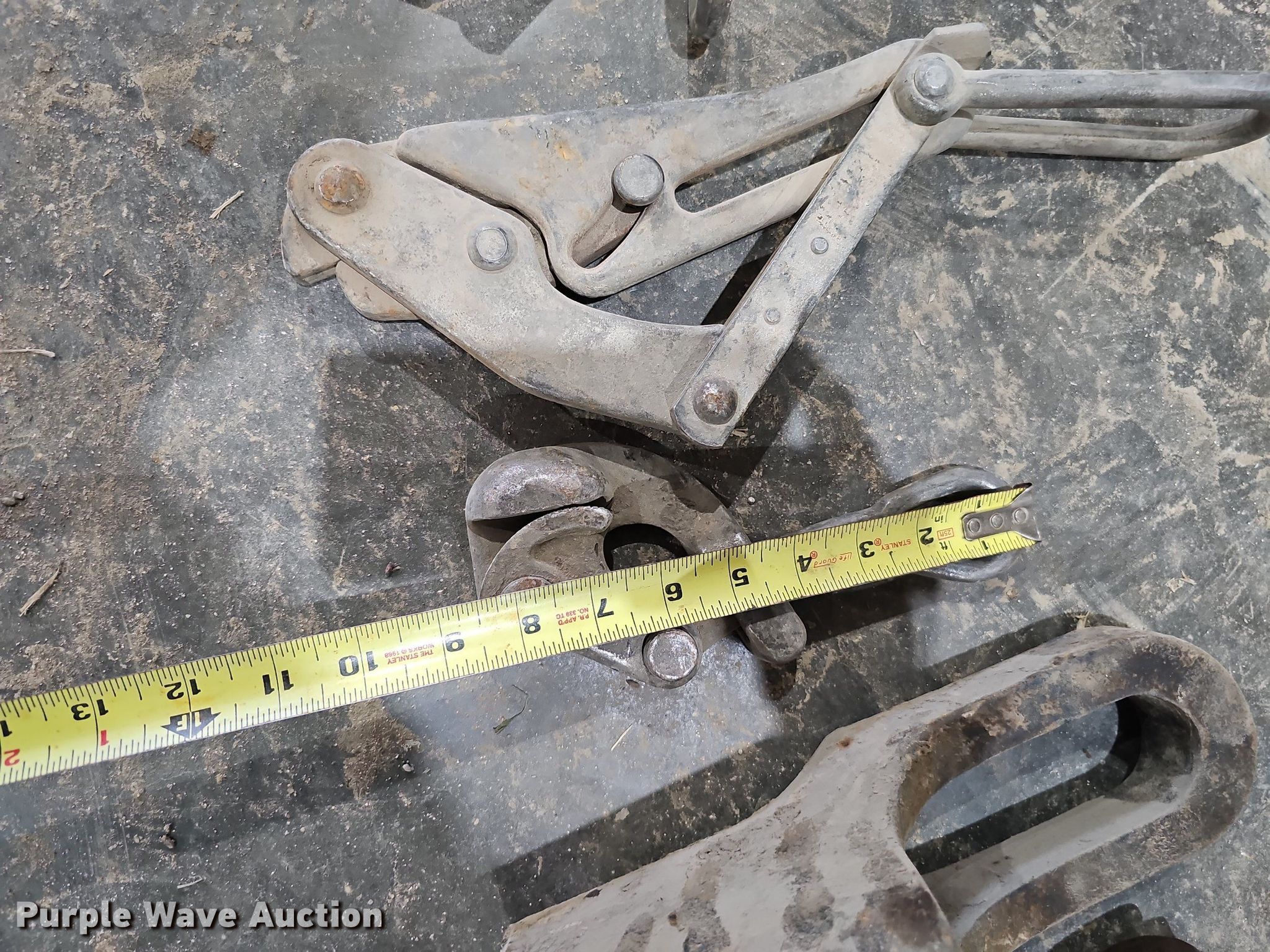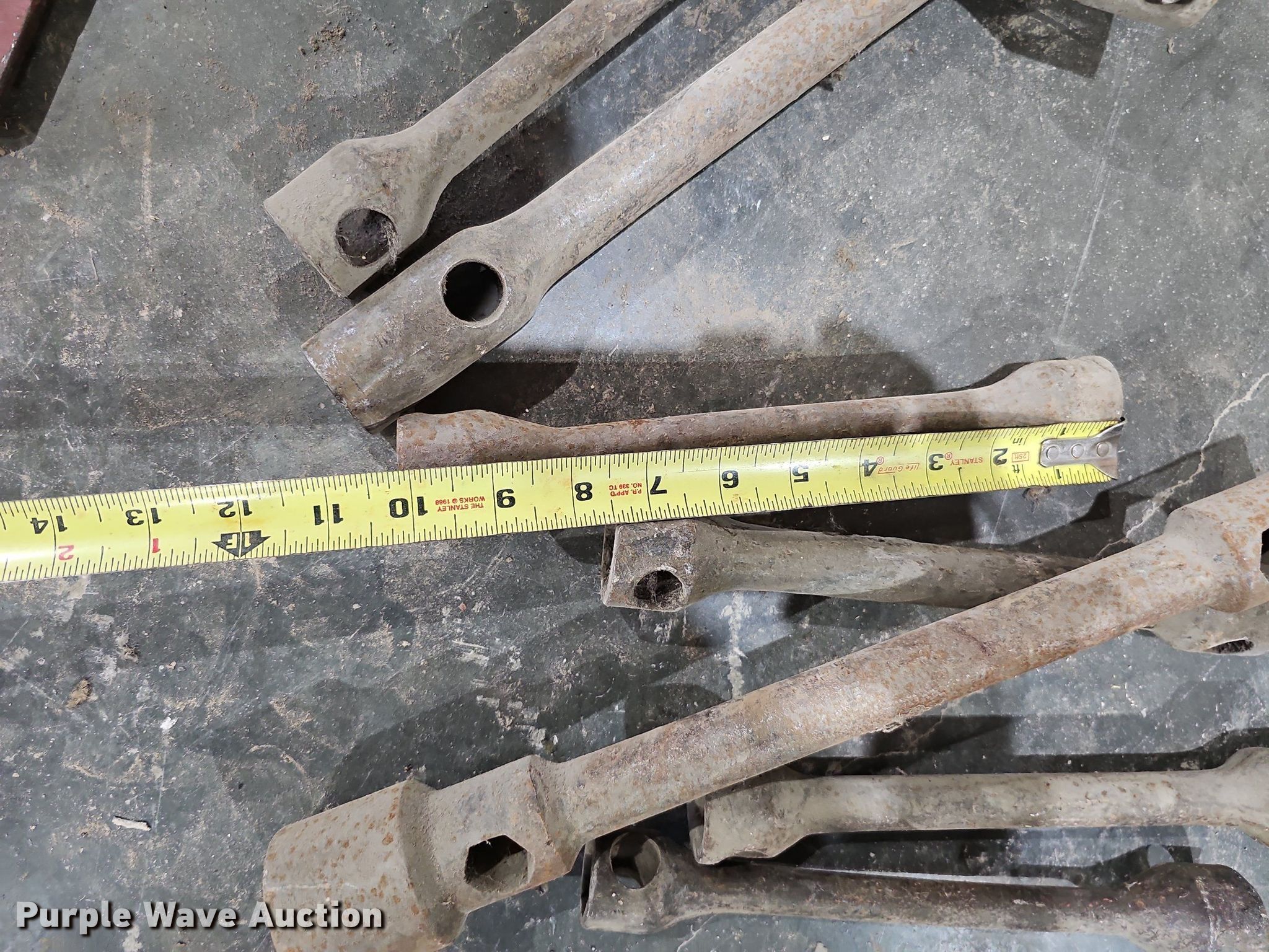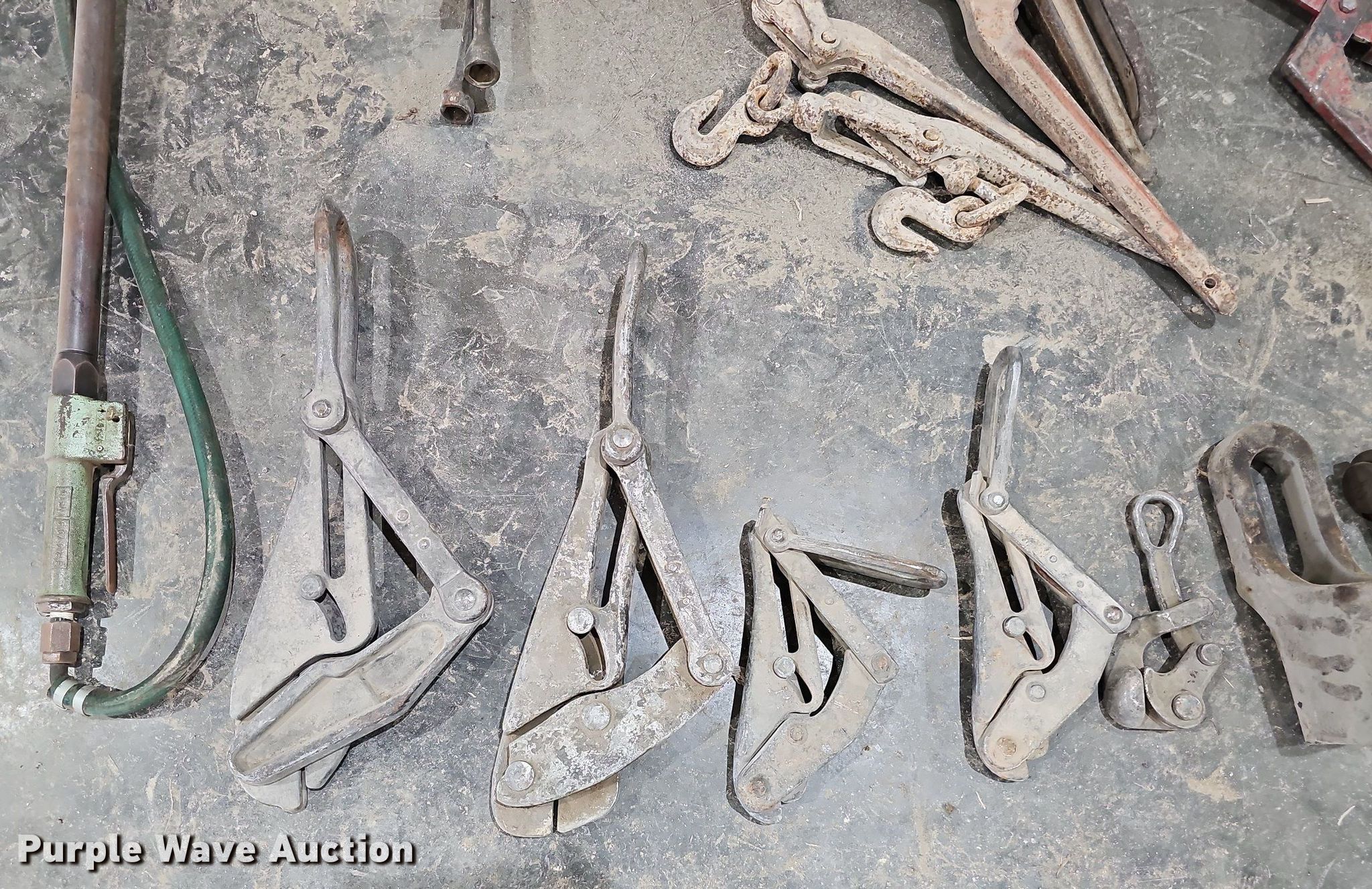 Purple Wave is selling a used Tools in Missouri. This item is a Tools with the following: (2) 22"L C pipe carriers, (10) two way wrenches, (3) four way wrenches, (5) chain boomers, (5) clamp jaws 8.5" to 20"L, MF-15 48"L air jack