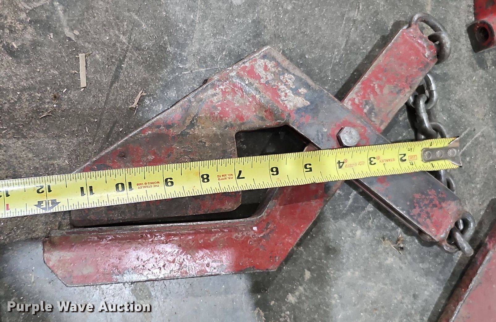 Tools. (2) 22"L C pipe carriers, (10) two way wrenches, (3) four way wrenches, (5) chain boomers, (5) clamp jaws 8.5" to 20"L, MF-15 48"L air jack. 24105 Missouri 111. Rock Port, MO 64482