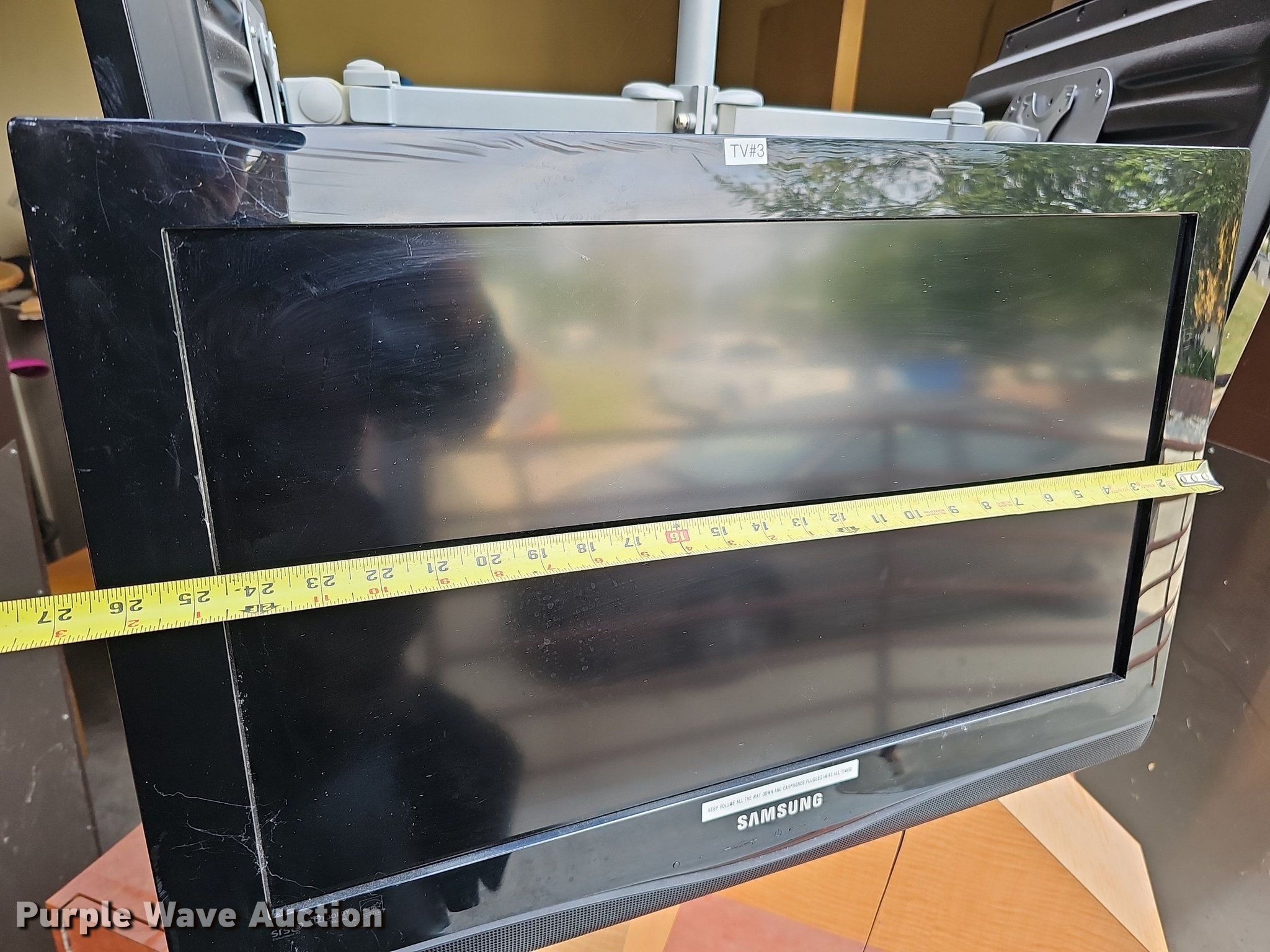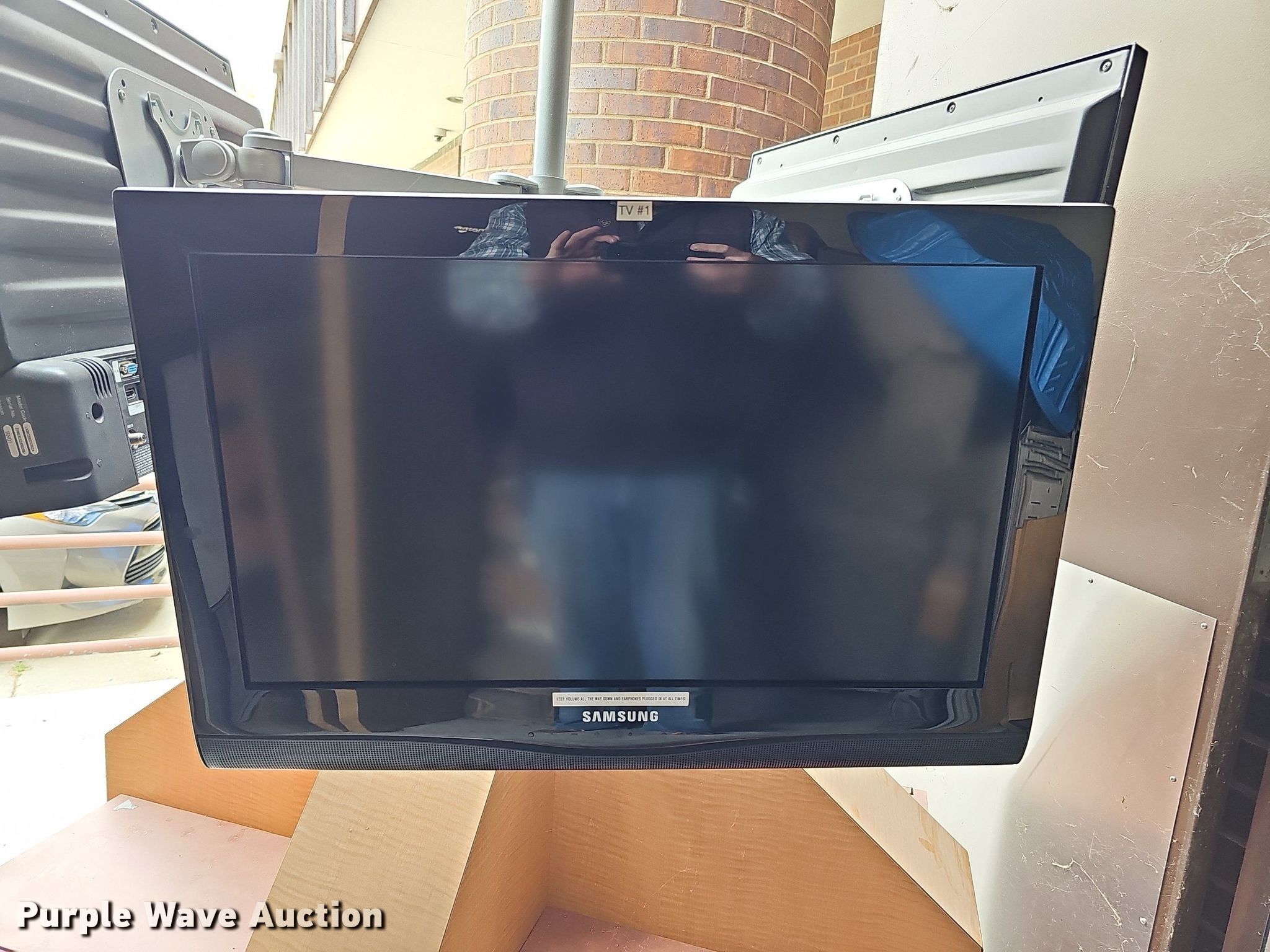 Purple Wave is selling a used Furniture in Nebraska. This item is a Furniture with the following: (12) chairs, (5) end tables, 20.5" x 20.5" x 17", (2) ottomans, 52" L x 16" H, TV media center, 45" L x 22" W x 74" H, (4) Samsung TV's