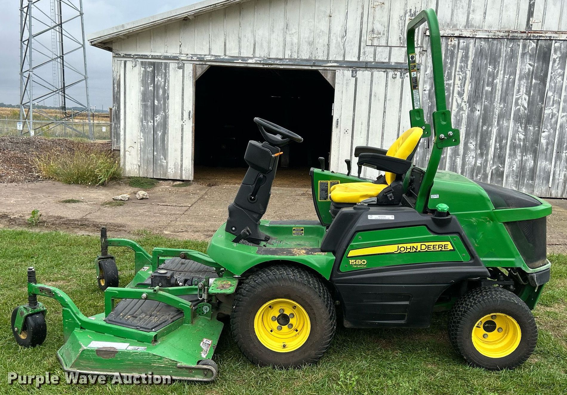 Purple Wave is selling a used Commercial Turf Mower in Iowa. This item is a John Deere 1580 lawn mower with the following: Hours: 2,693 on meter, Cutting width: 72", Serial: 1TC1580VEFR010107