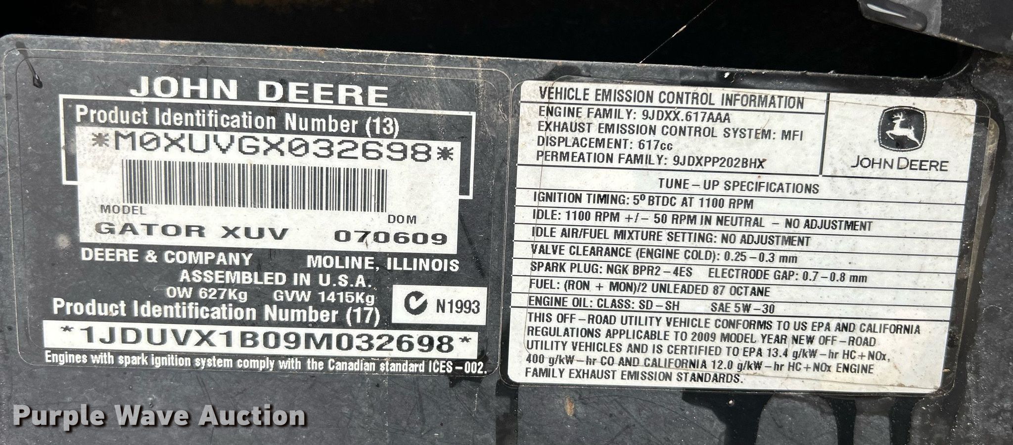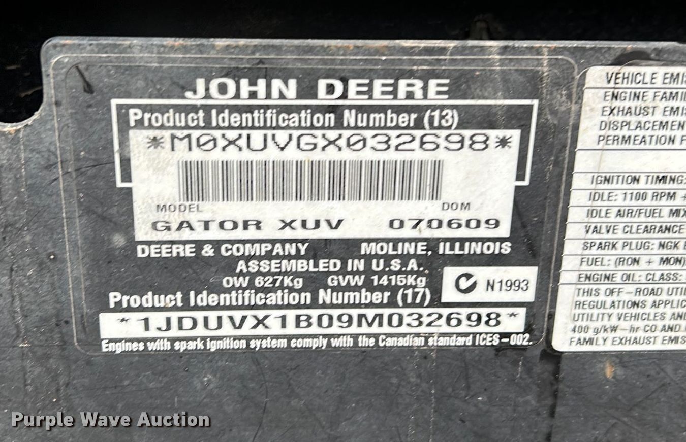 Purple Wave is selling a used Utility Vehicle in Iowa. This item is a 2009 John Deere Gator XUV 620i utility vehicle with the following: Hours: 1,718 on meter, Hours: Unknown, Serial: M0XUVGX032698