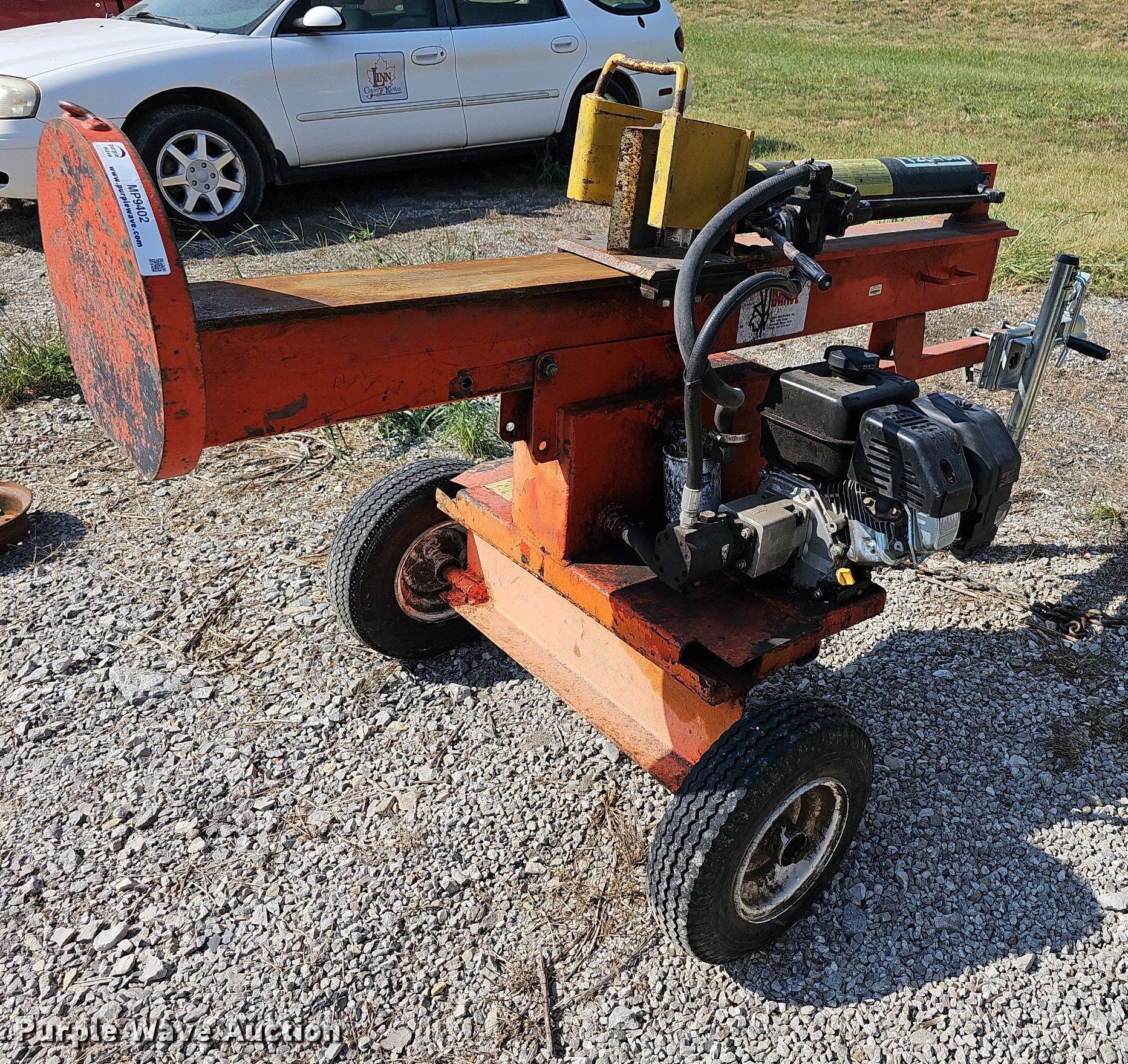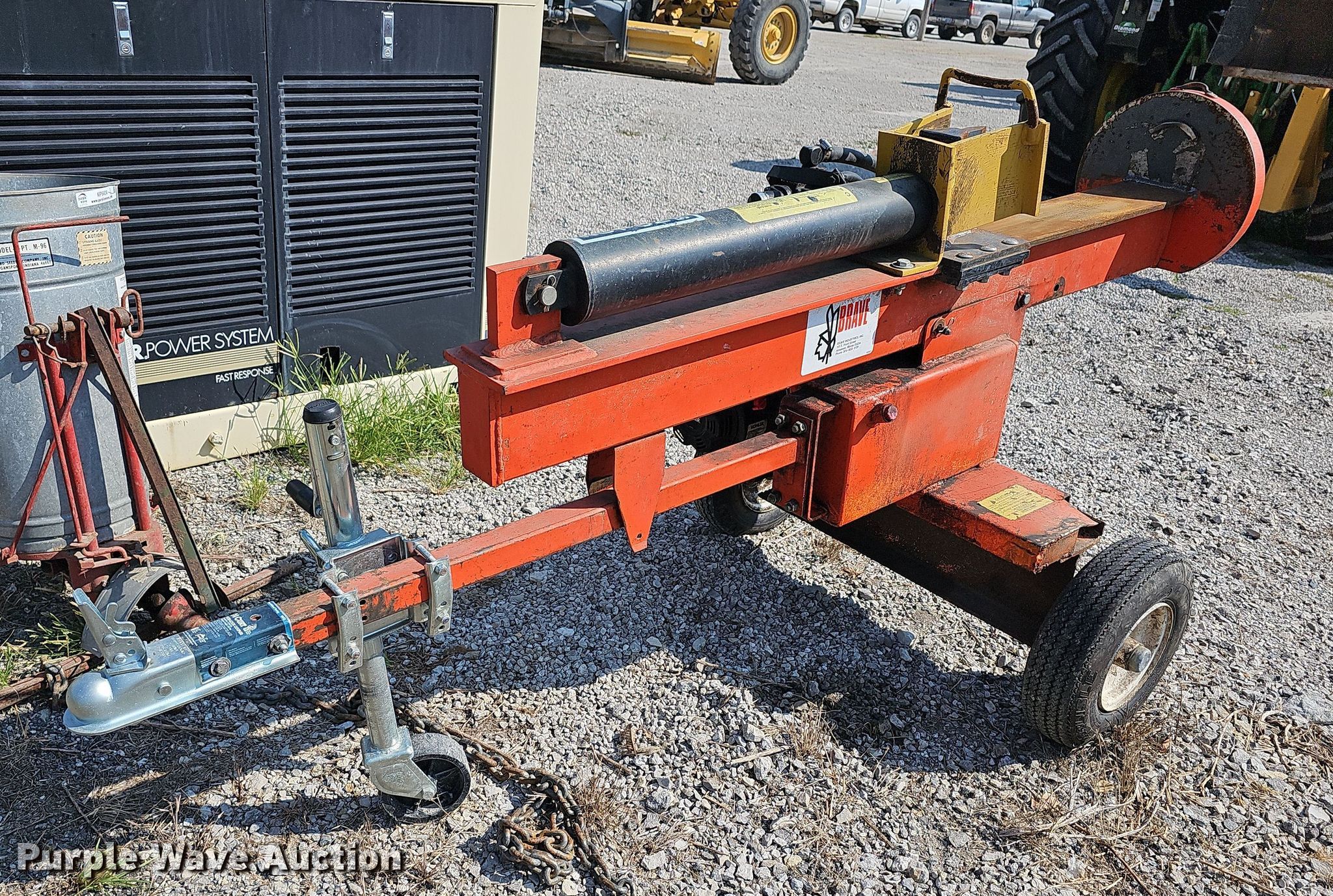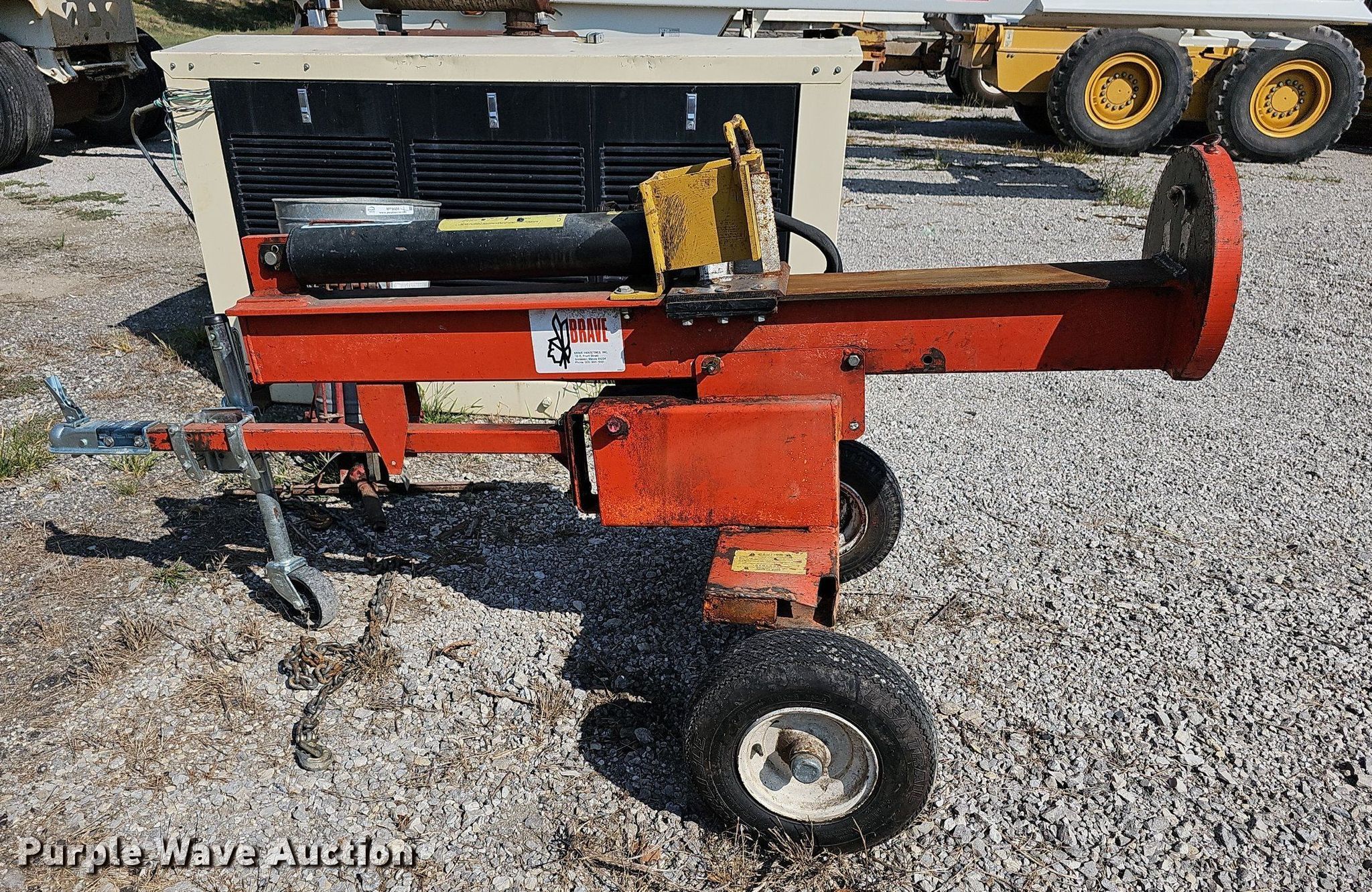 Purple Wave is selling a used Wood Splitter or Processor in Kansas. This item is a Brave log splitter with the following: Ball hitch: 2 in, Cylinder capacity: 20 ton, Positions: horizontal and vertical