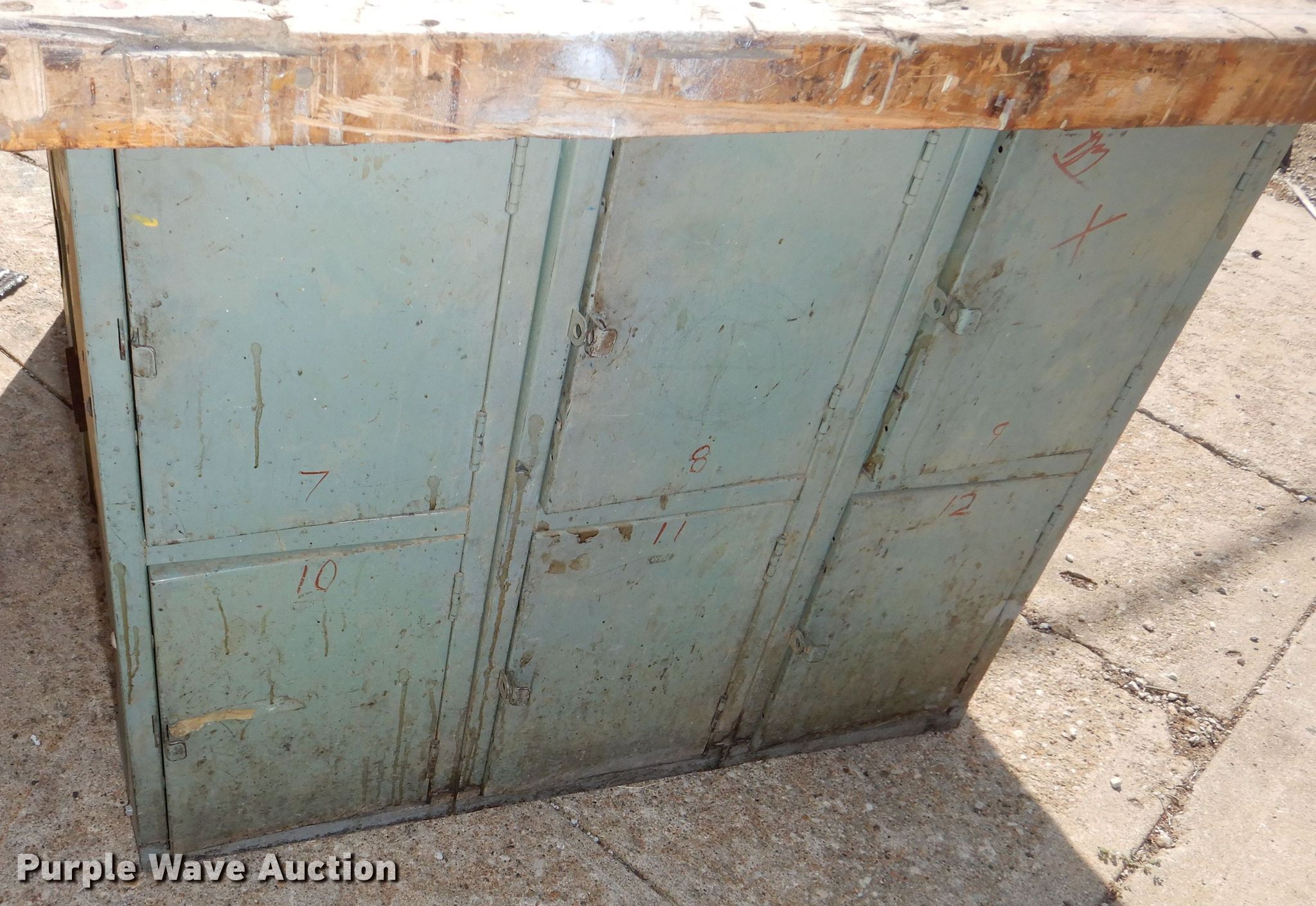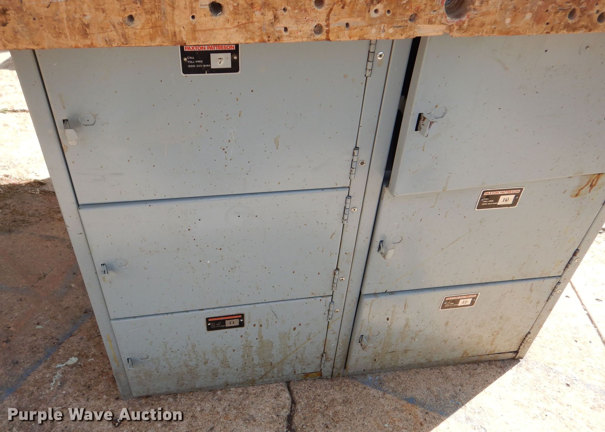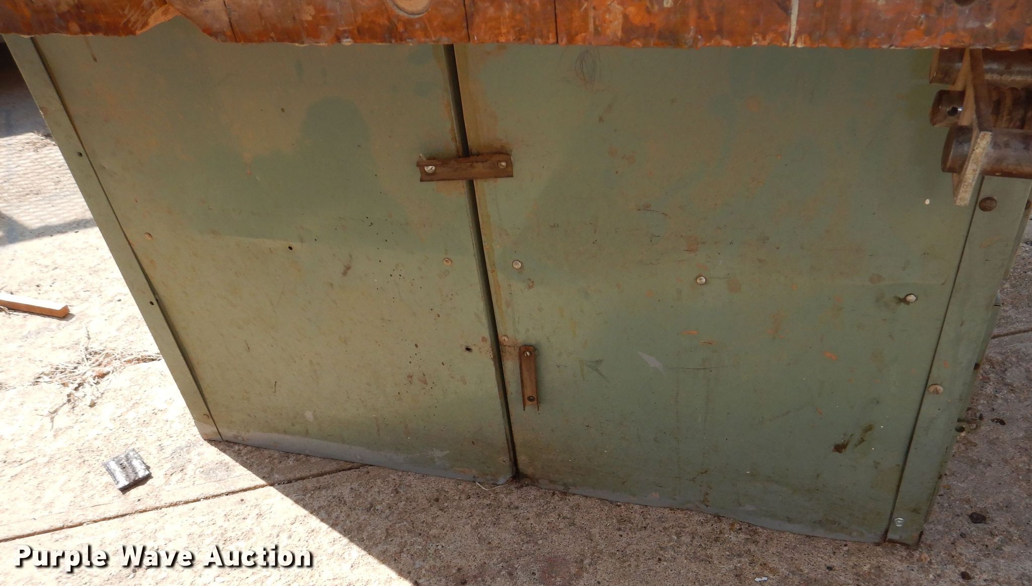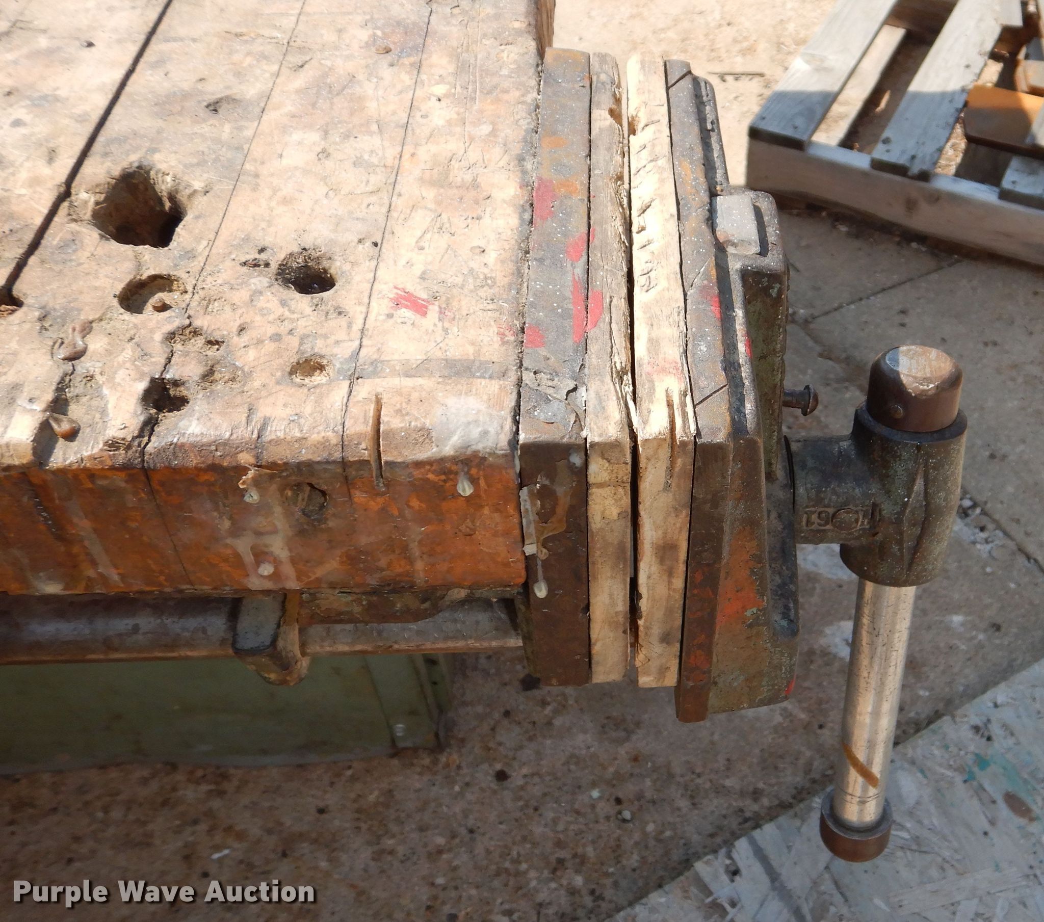 Purple Wave is selling a used Tools in Kansas. This item is a (3) shop tables with the following: 64" x 55" x 32", Vises