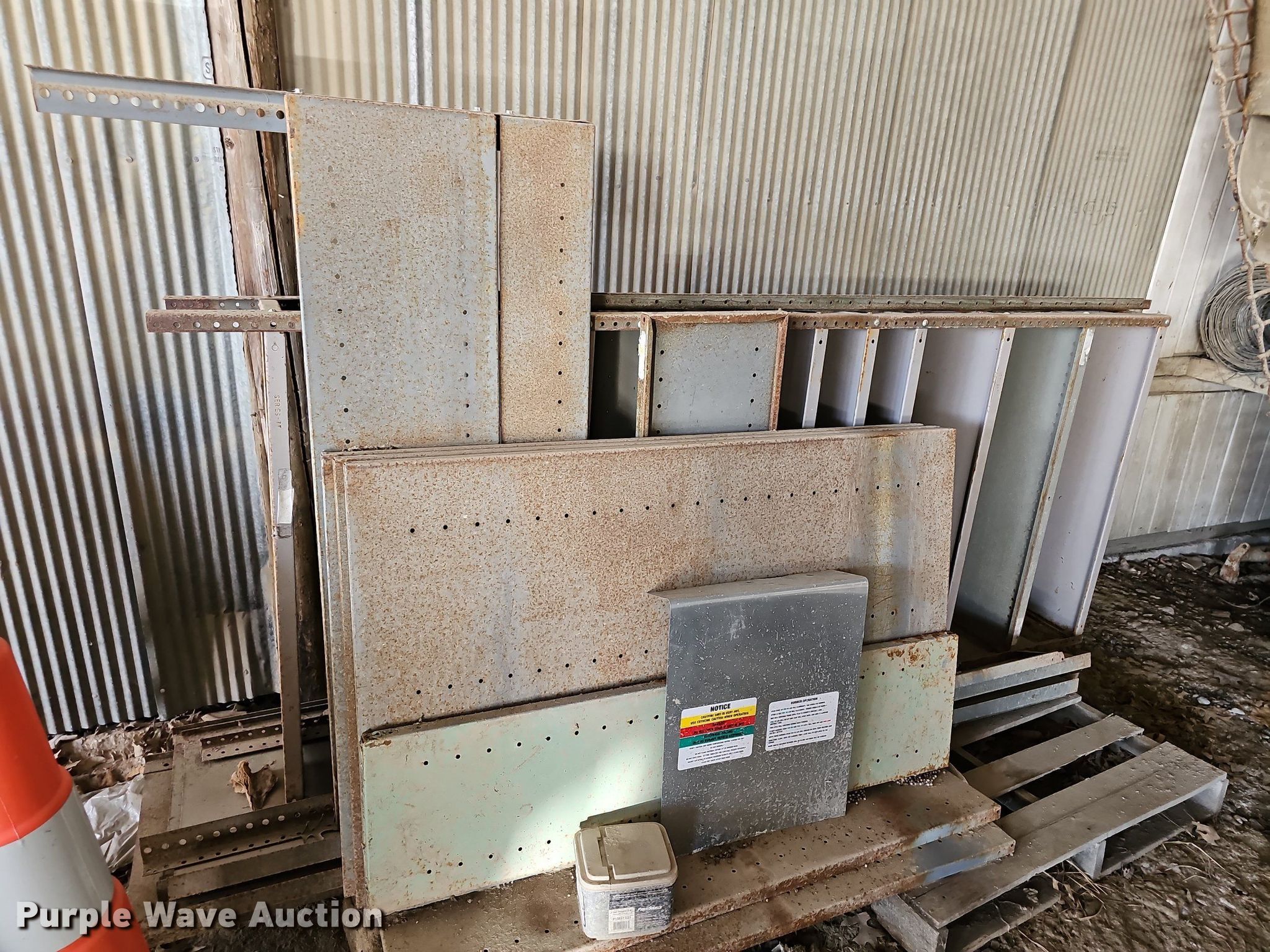 Purple Wave is selling a used Building Materials in Kansas. This item is a Building materials with the following: Shelving braces, Shelving uprights, Metal cabinet and more