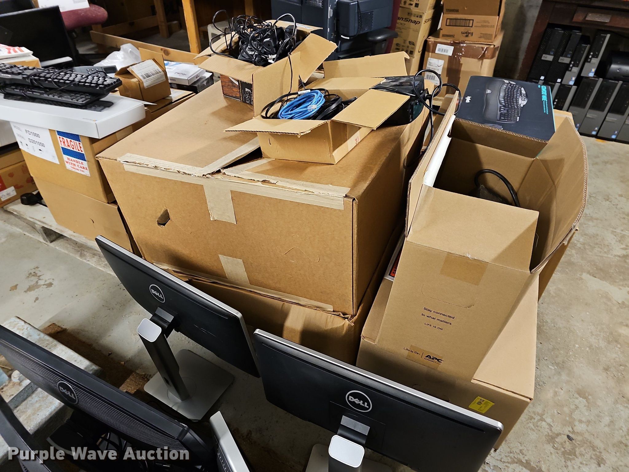 Purple Wave is selling a used Electronics in Kansas. This item is a Electronics with the following: (2) televisions, Non-operational units, Desktop phones, Cases, Keyboards, Power cords, Battery backups, (6) monitors, Calculators, Typewriters and more