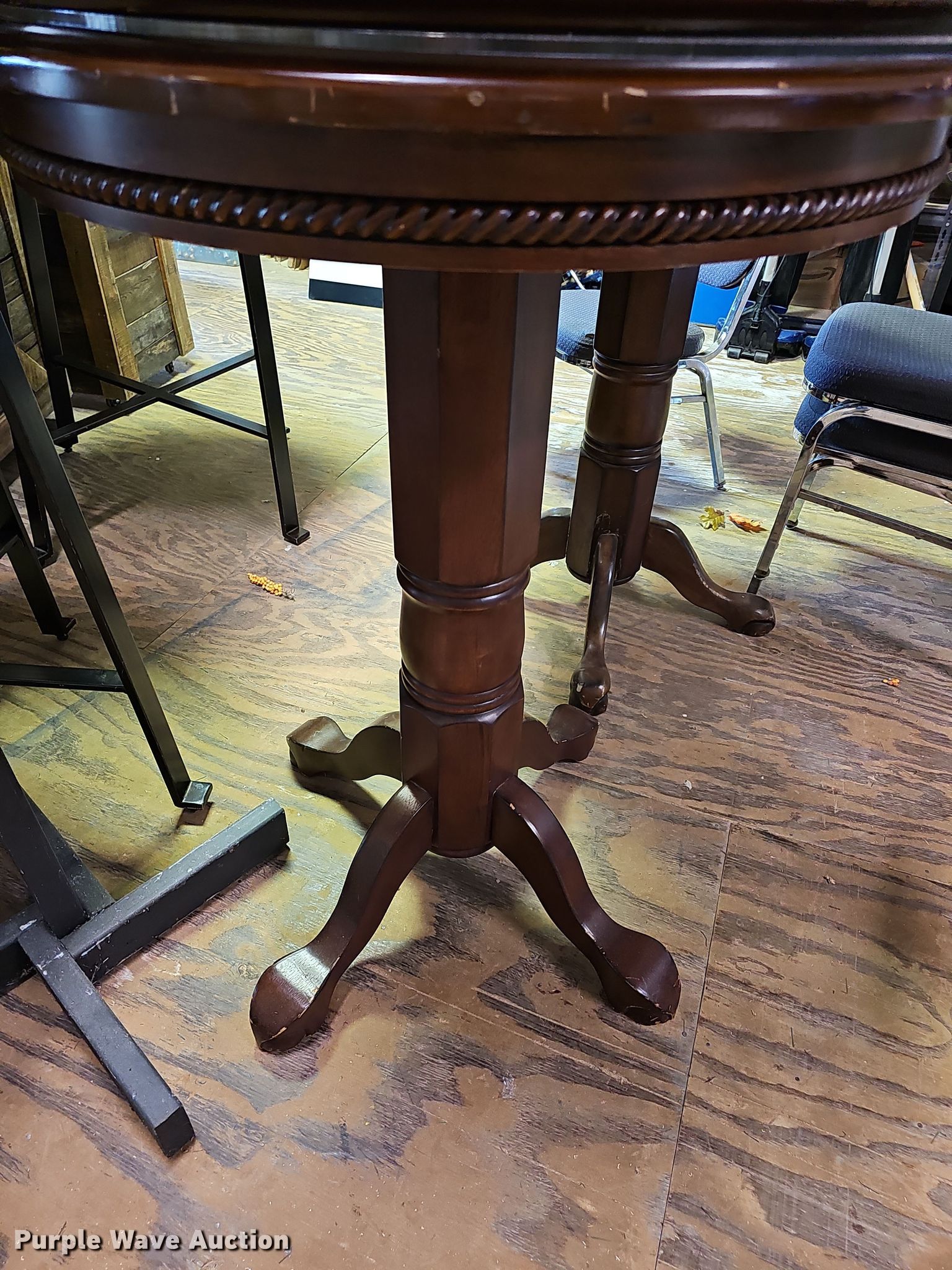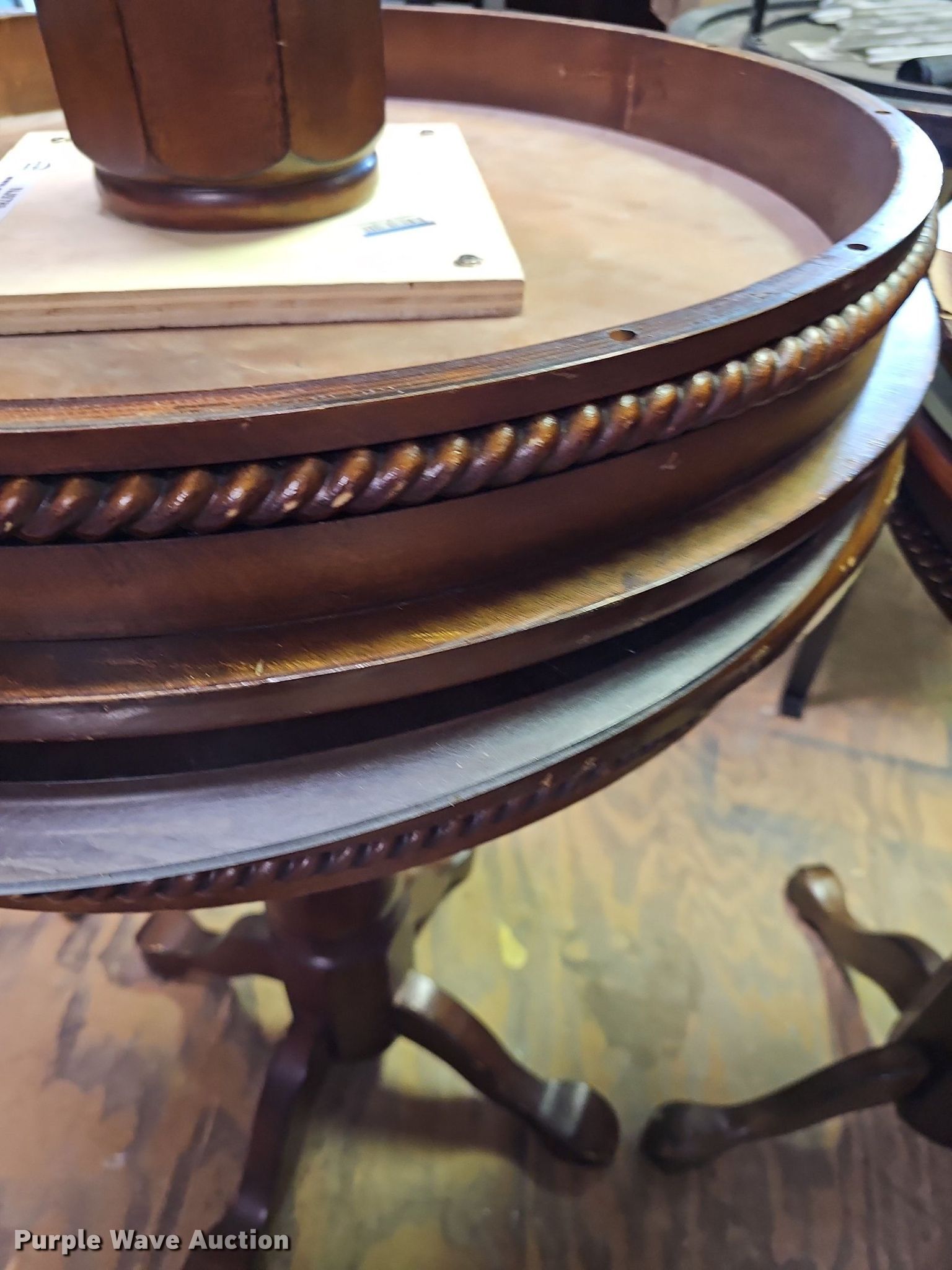 Purple Wave is selling a used Furniture in Kansas. This item is a (4) tables with the following: 43"H x 32" diameter