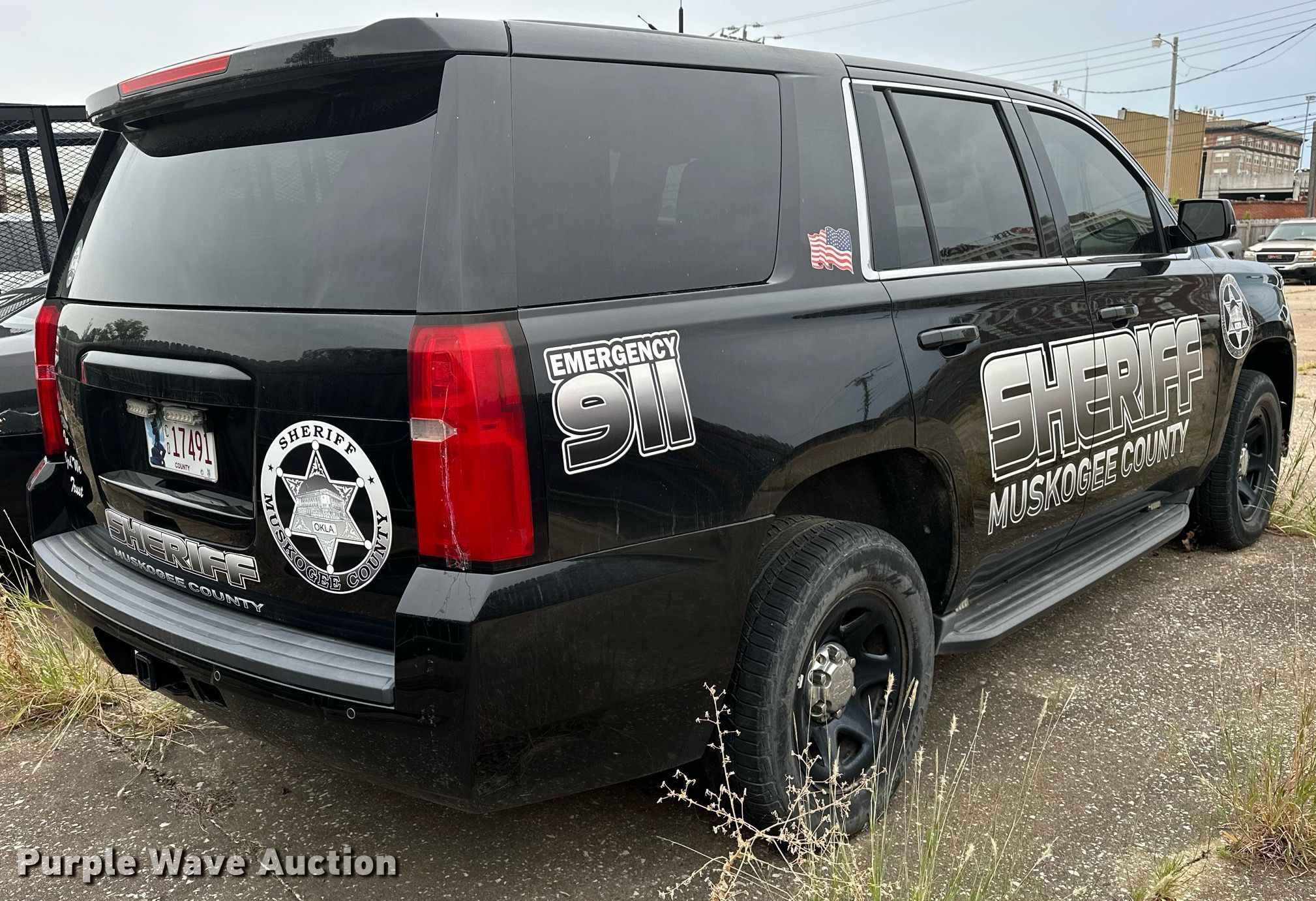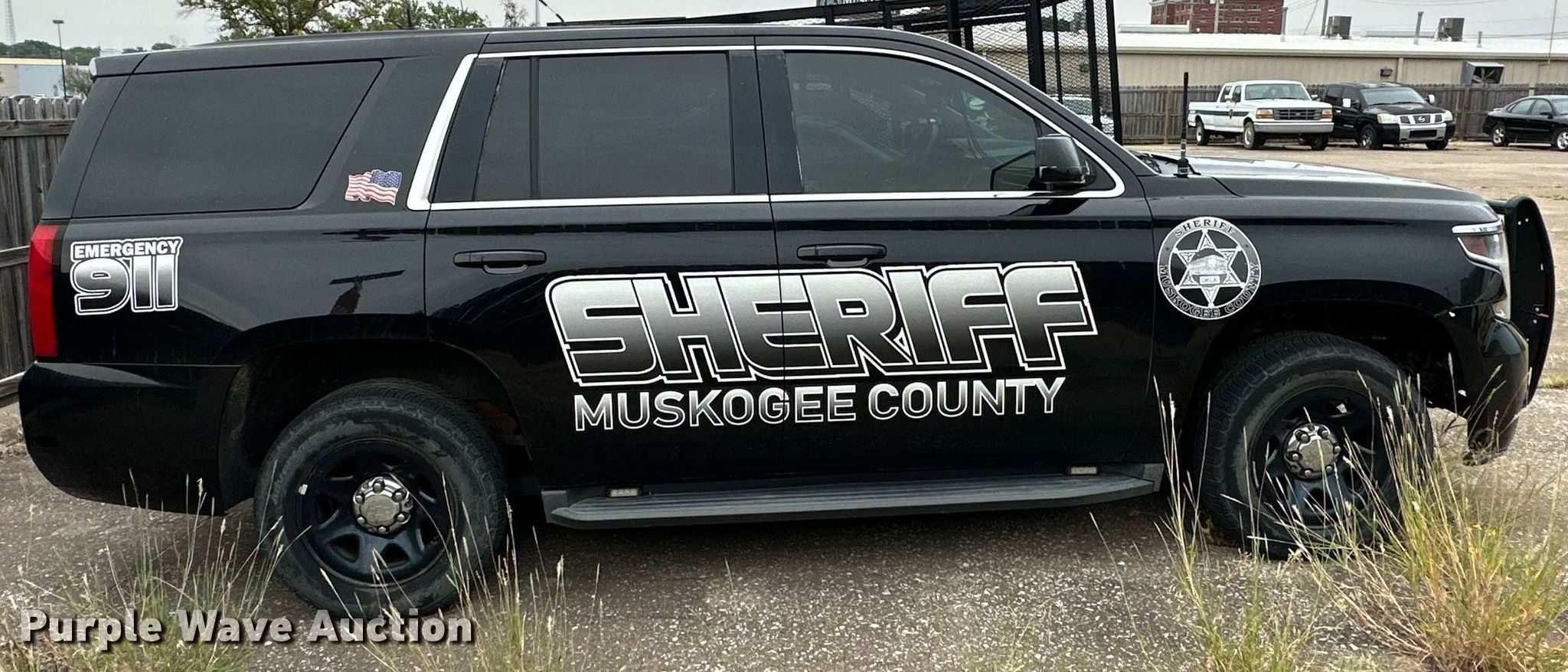 2015 Chevrolet Tahoe Police SUV. Miles: Unknown, VIN: 1GNSK2EC1FR517904. Engine Displacement: 5.3L V8 OHV, Cylinders: 8, Fuel type: Gas. Transmission Automatic, Four wheel drive. Interior AC, Heat, Seat: Power driver, Power passenger, Power windows, Power locks, Cruise control, Backup camera. Tires Size: 265/60R17. Notes Emergency service equipment not included , No keys, Parts missing, Non-operational engine , Non-operational unit. Oklahoma title. Mileage has not been verified. Odometer discrepancy will be marked on the title. Seller is a government entity who will be assigning and distributing the title. Please contact the seller for distribution questions. Muskogee County, OK. 220 State Street. Muskogee, OK 74401