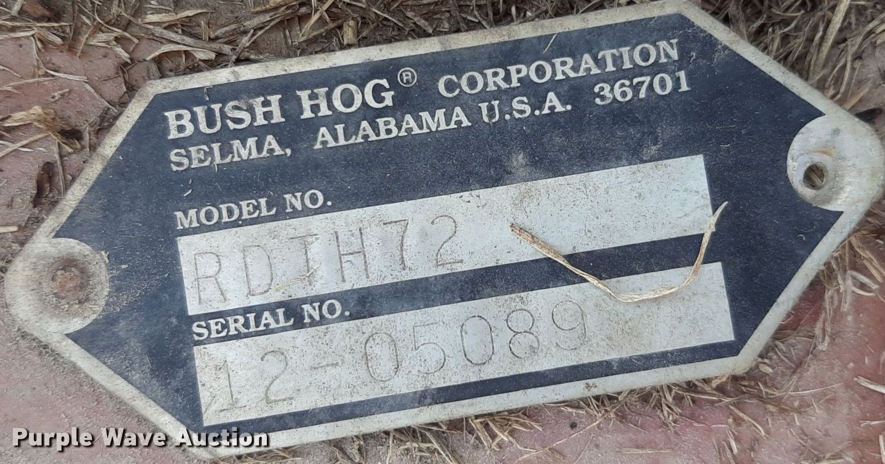Purple Wave is selling a used Mower, Cutter, Shredder in Kansas. This item is a Brush Hog RDTH72 finish mower with the following: Serial: 12-05089