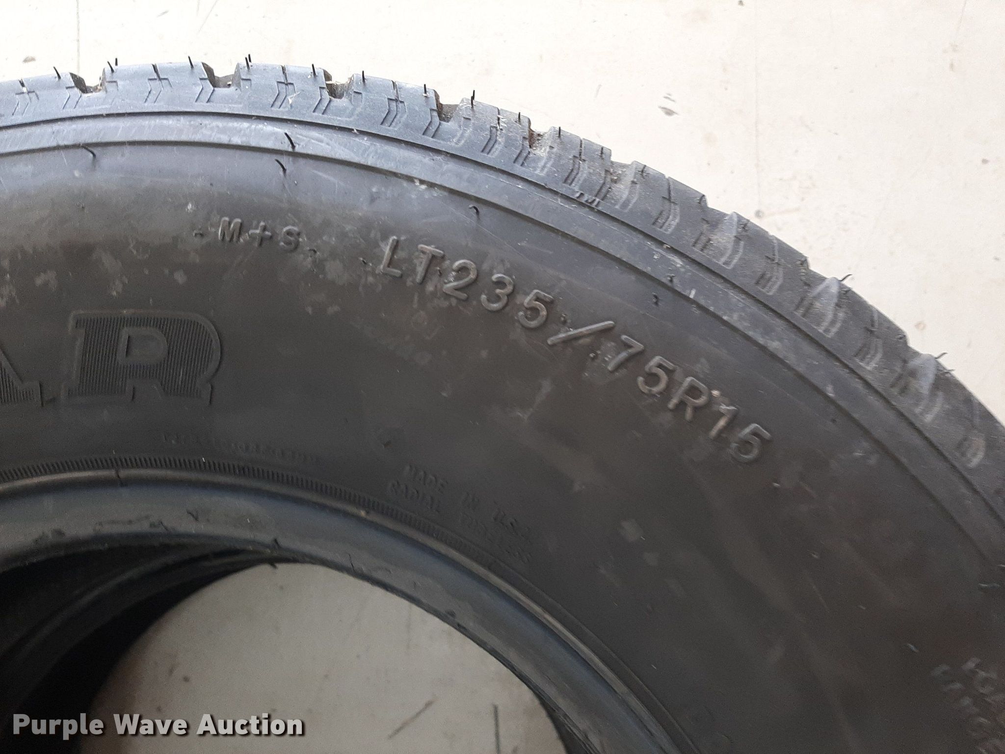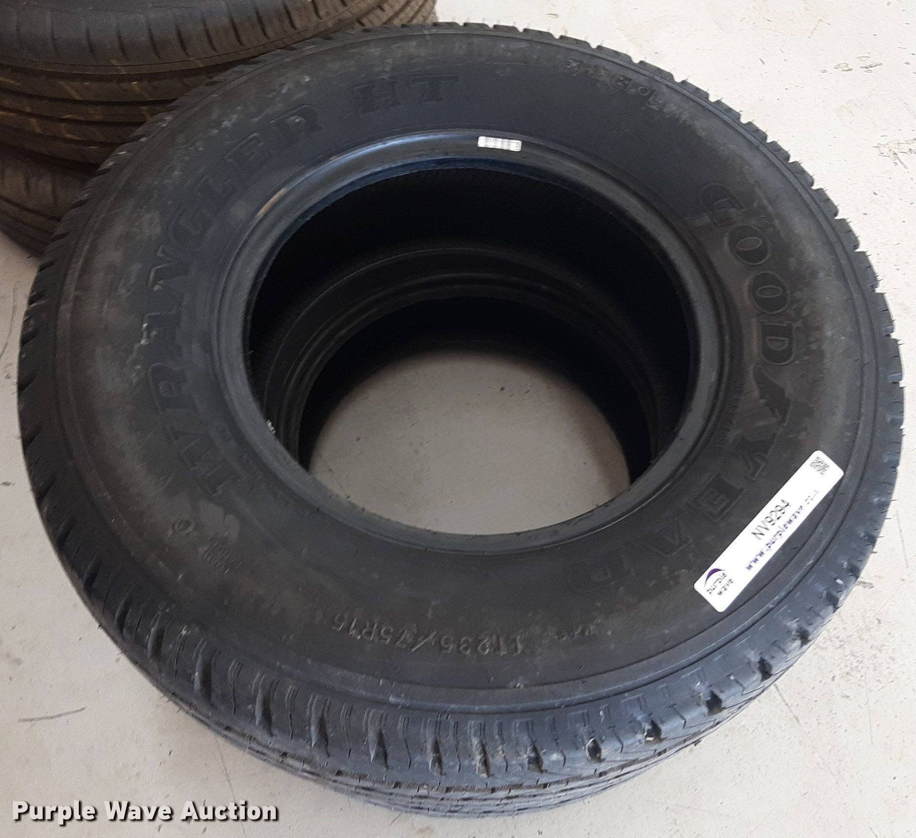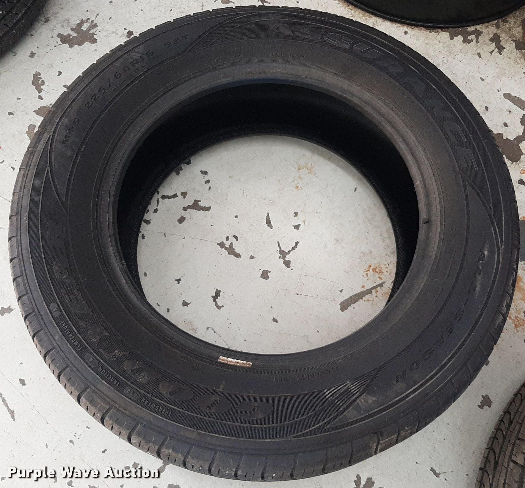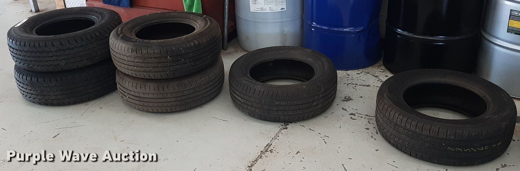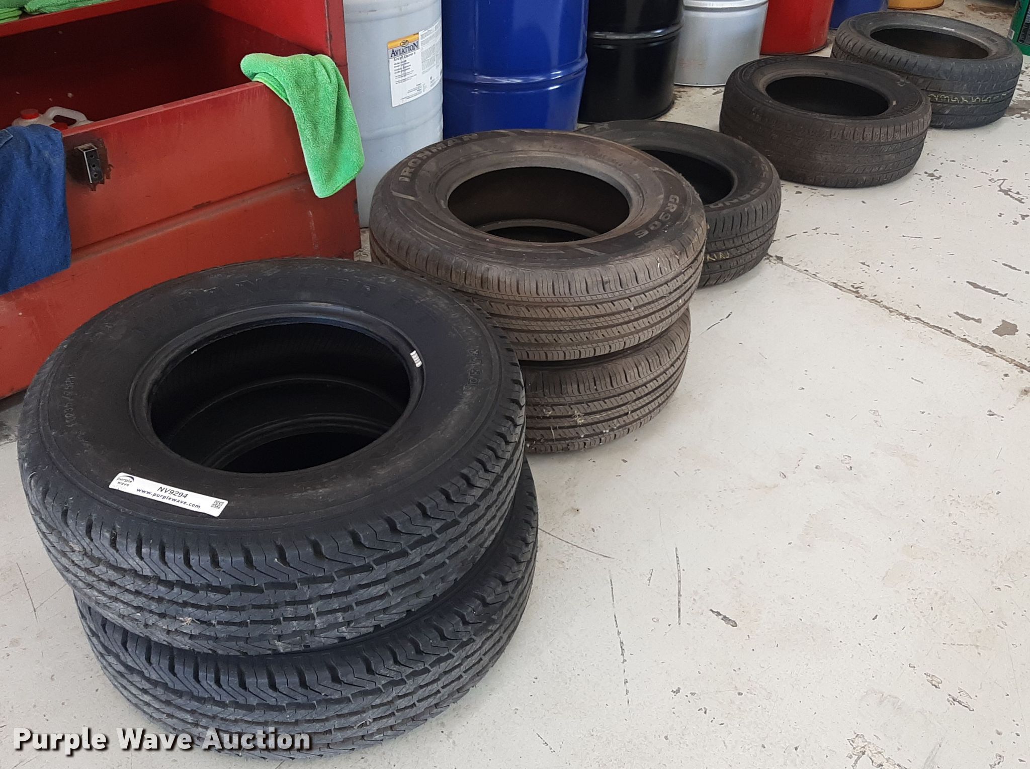 Purple Wave is selling a used Fleet Tires in Kansas. This item is a (7) tires with the following: (2) Goodyear Wrangler 235/75R15, (2) Ironman 906 225/70R15, Cooper CSS Grand Touring 225/60R16, Goodyear Assurance 225/60R16, Firestone Firehawk 235/55R17