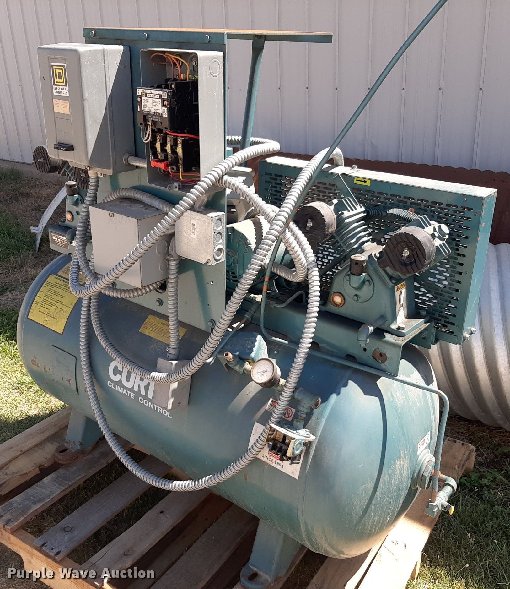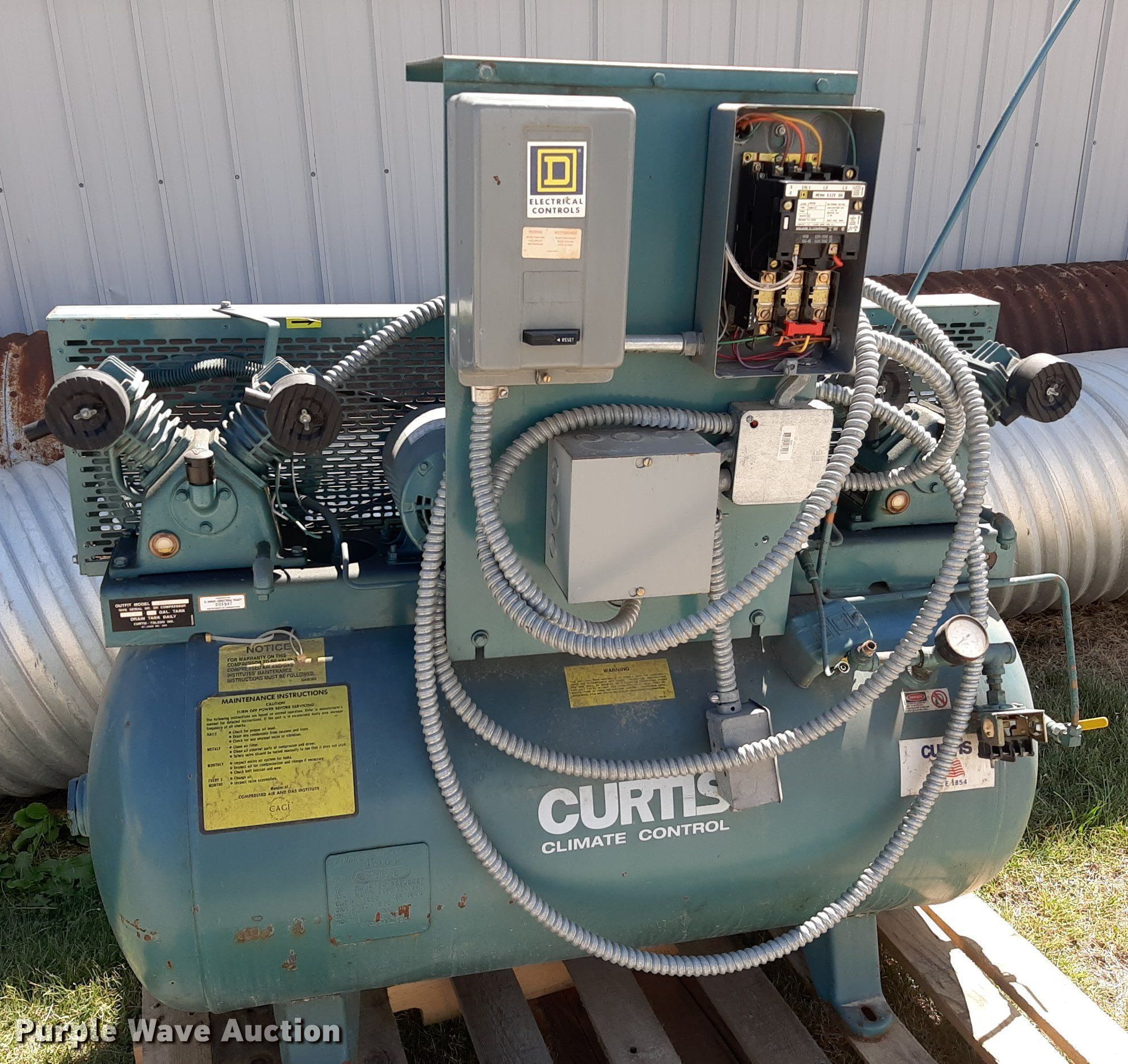 Purple Wave is selling a used Air Compressor in Kansas. This item is a Curtis ES-06D air compressor with the following: Serial: A6100438, Tank capacity: 60 gallons, Unknown operating condition