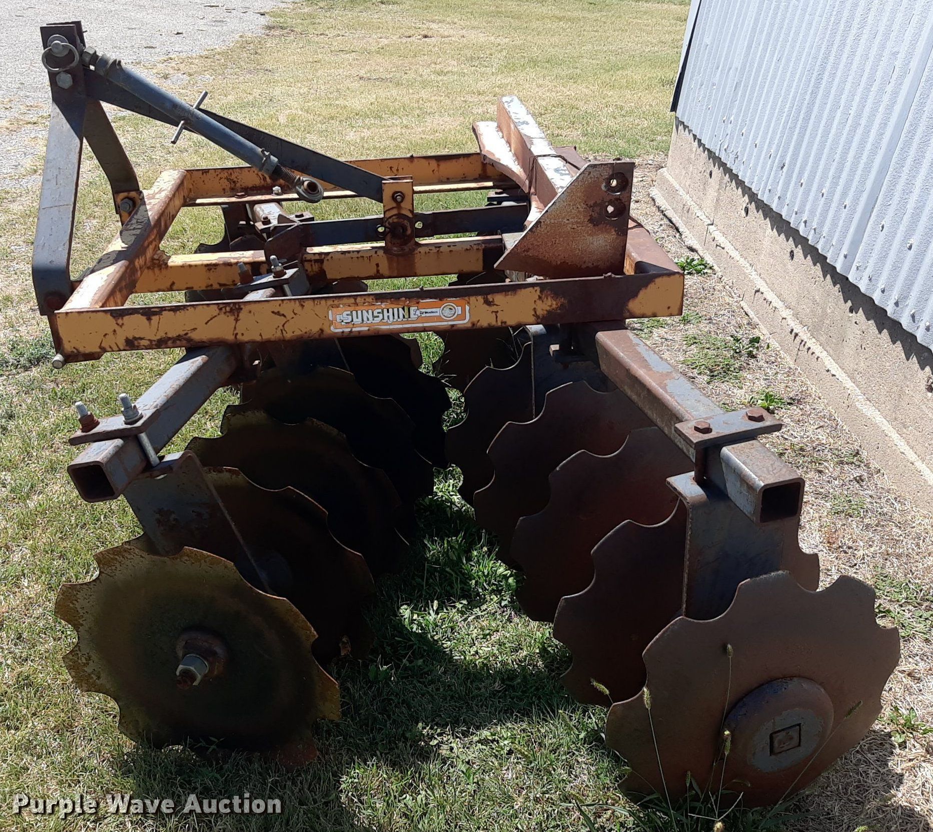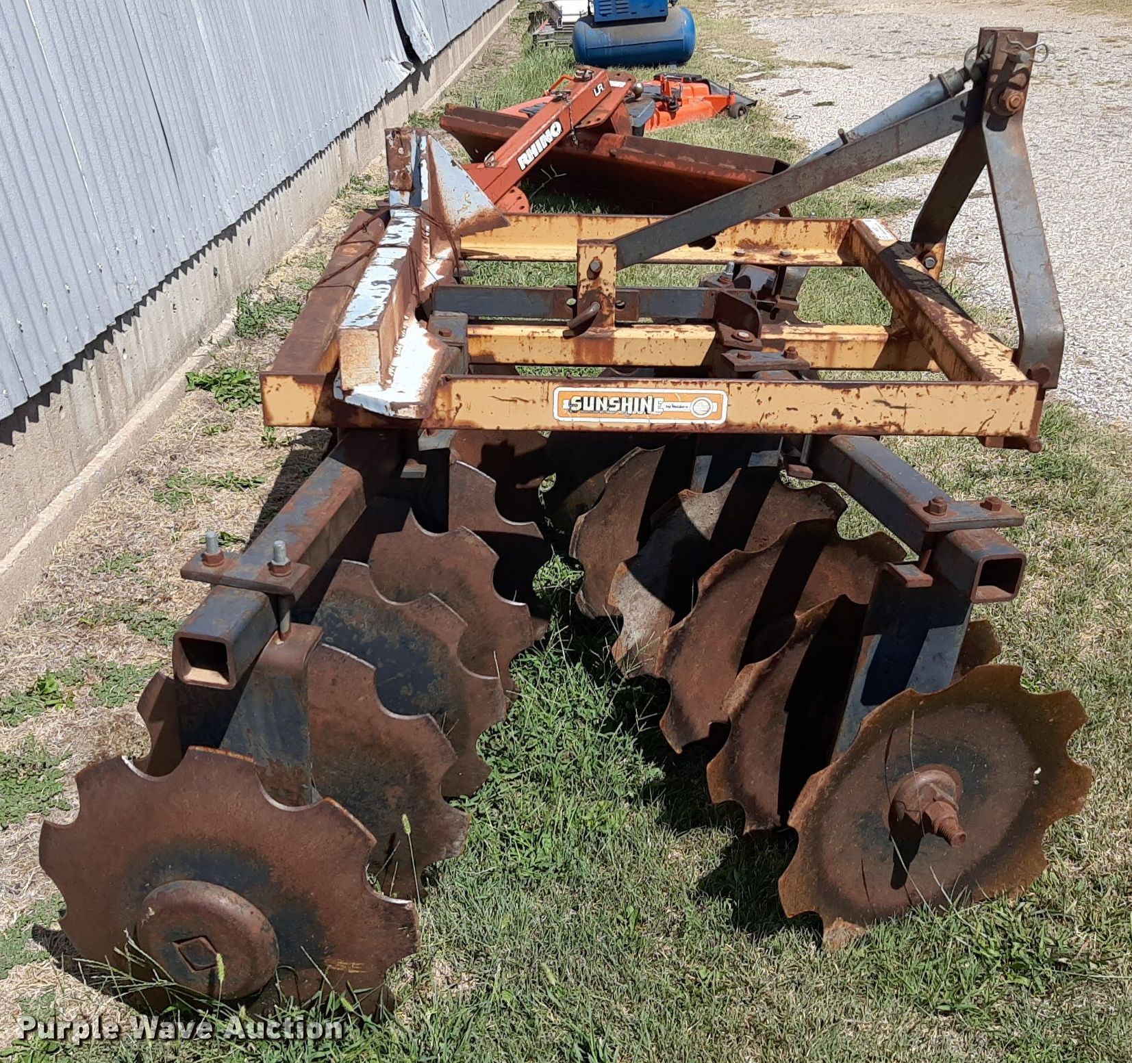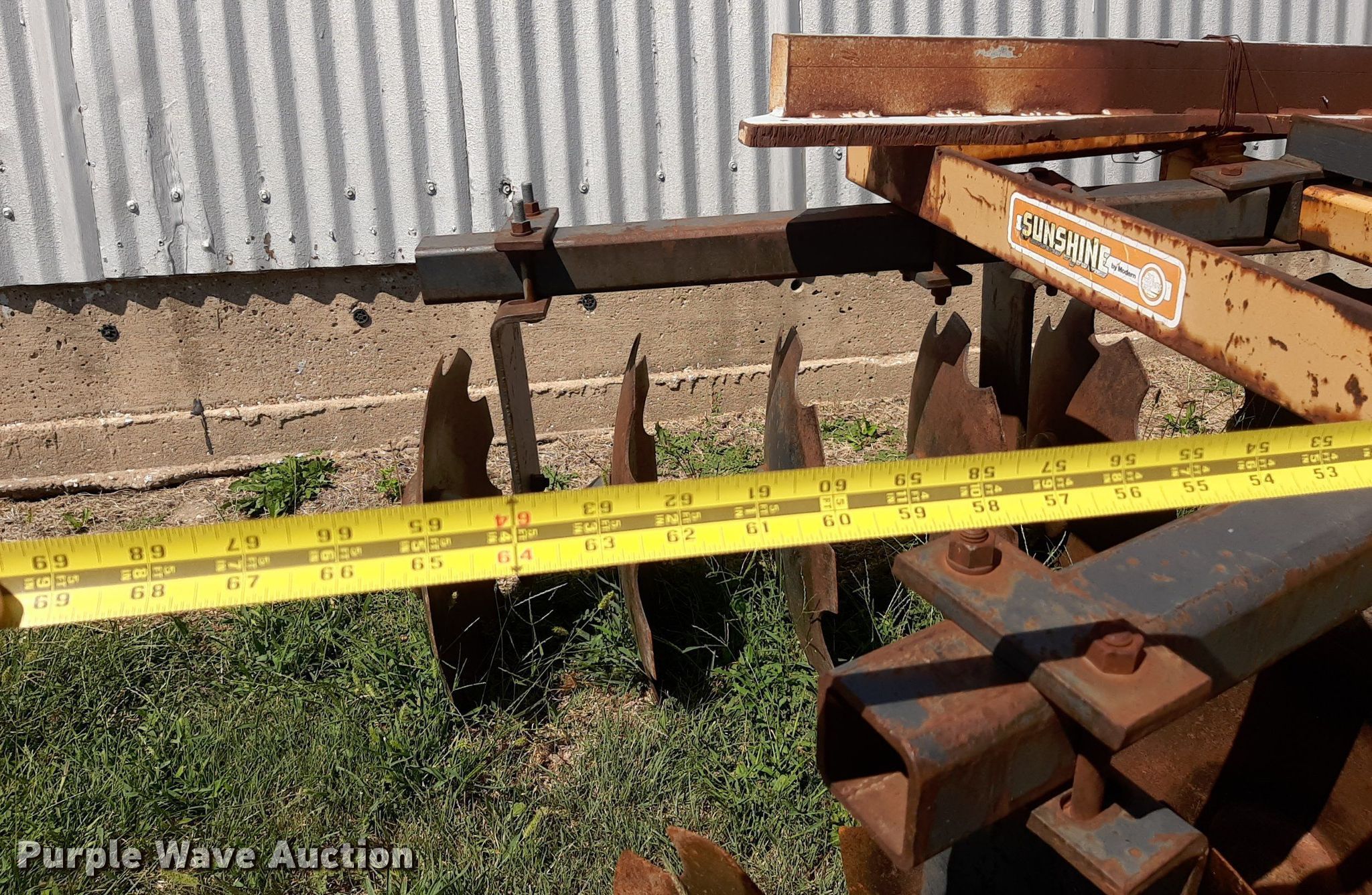 Purple Wave is selling a used Disk in Kansas. This item is a Sunshine tandem disk with the following: Overall width: 6' 6"
