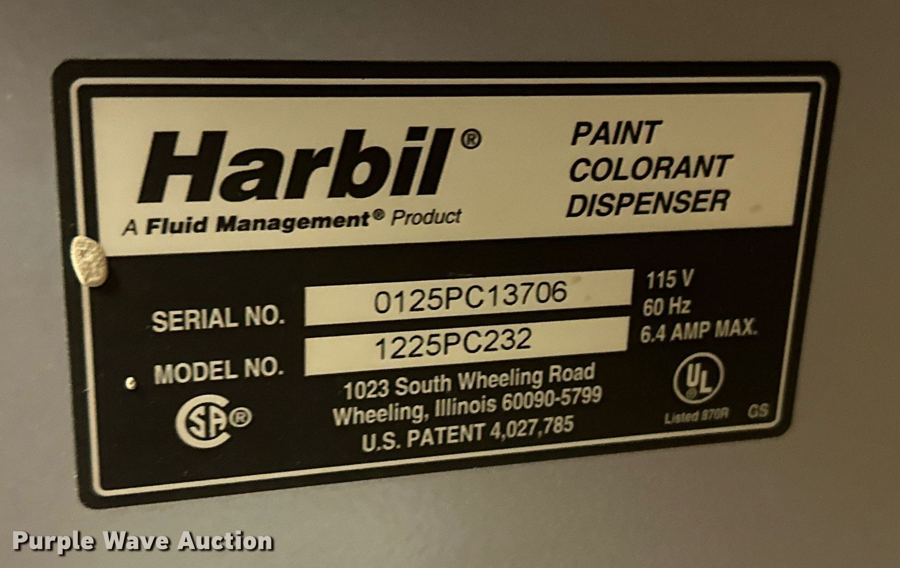 Harbil 1225PC232 paint colorant dispenser. Serial: 0125PC13706. USD 408. 101 North Thorp Street. Marion, KS 66861