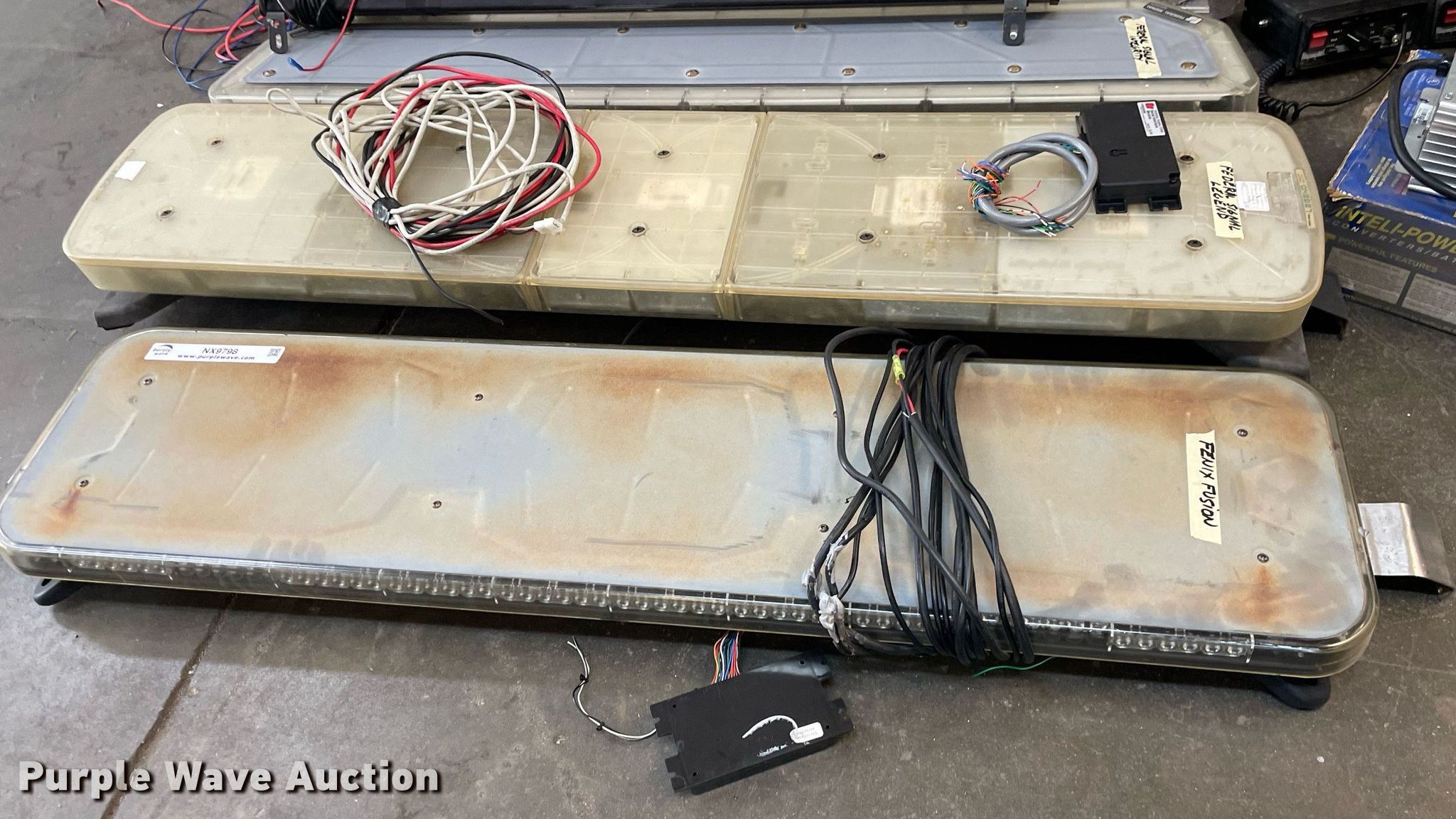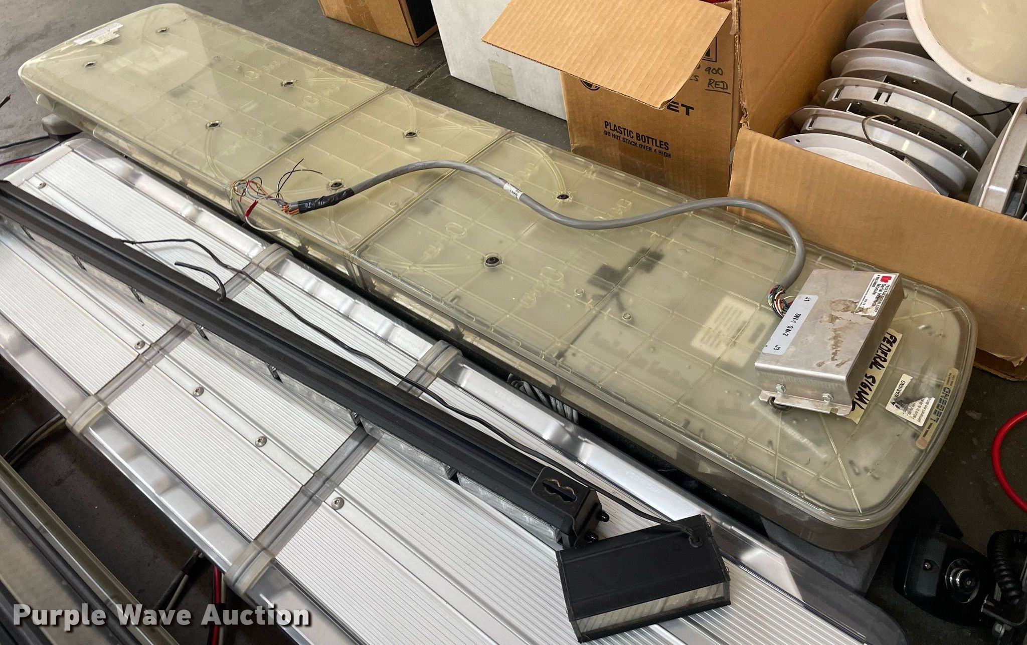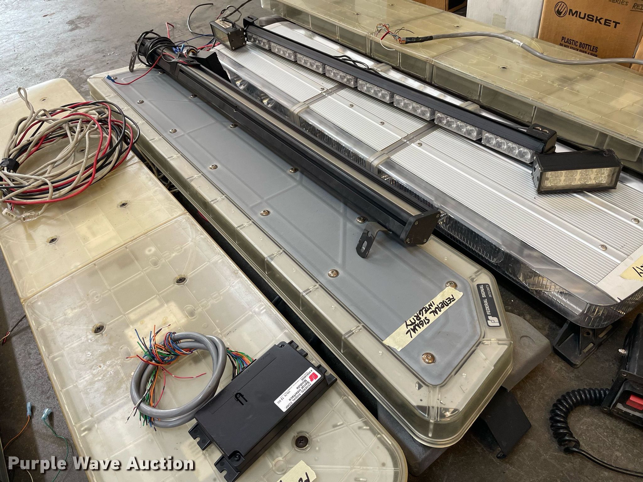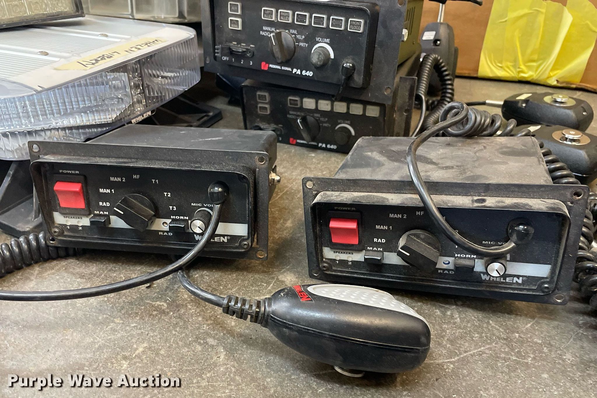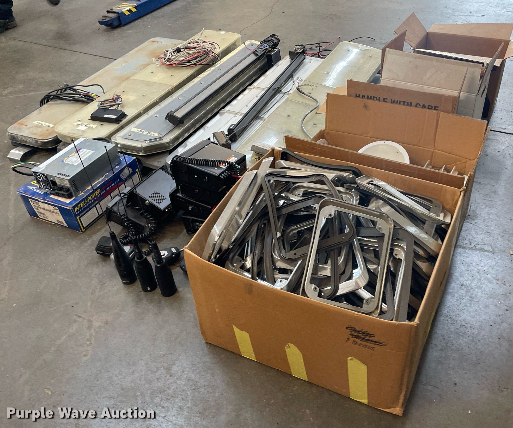 Purple Wave is selling a used Automotive Parts or Acces. in Kansas. This item is a Law enforcement equipment with the following: (5) light bars, Intel Power 9100 PD9180 power converter, Unused, (7) siren and light controllers, (4) Federal Signal PA 640, (2) Whelen, Code 3 3672L4, (3) Motorola antennas, (18) Interior LED, (28) Whelen 900 Series LED lights, Light frames and more