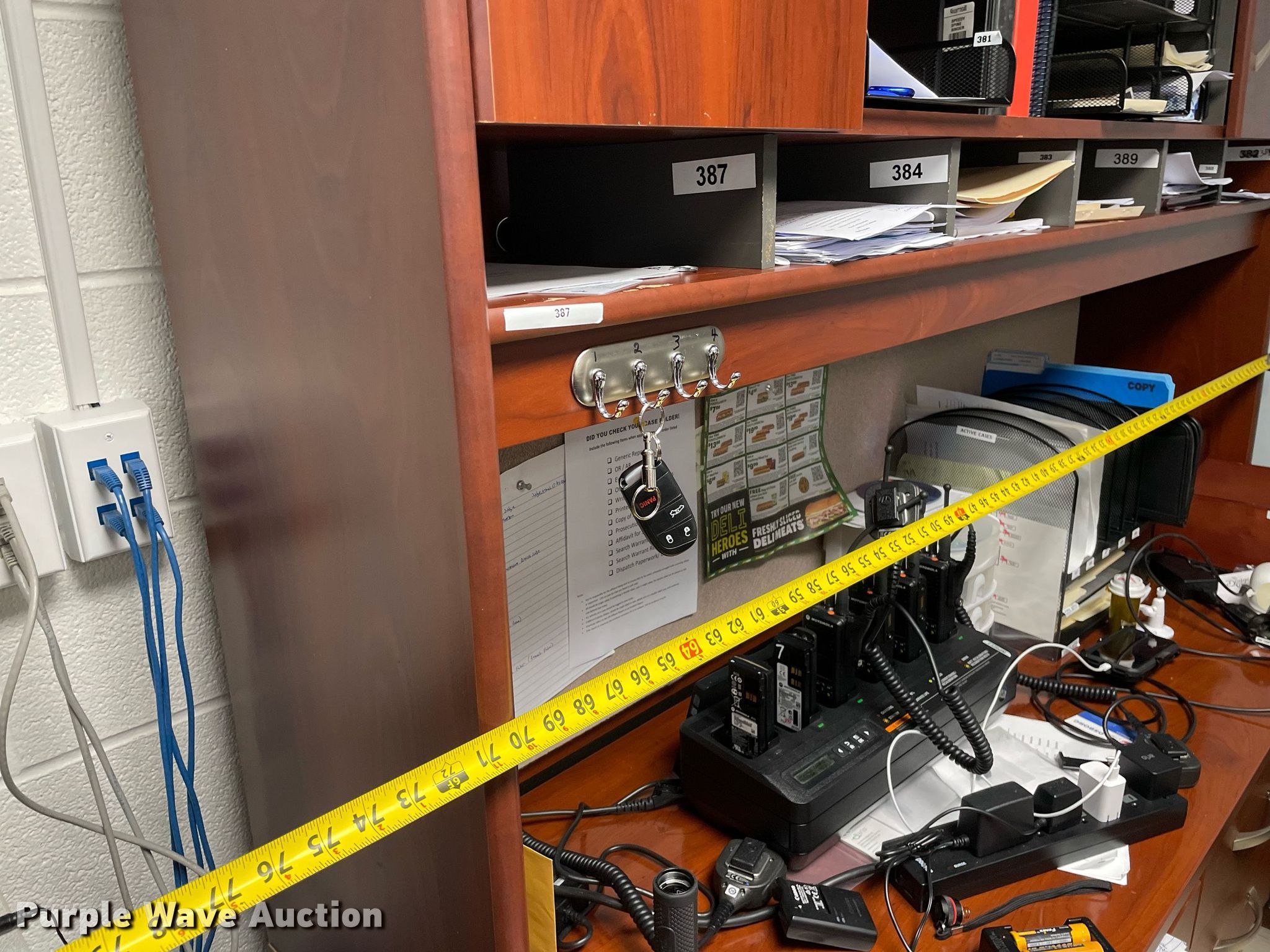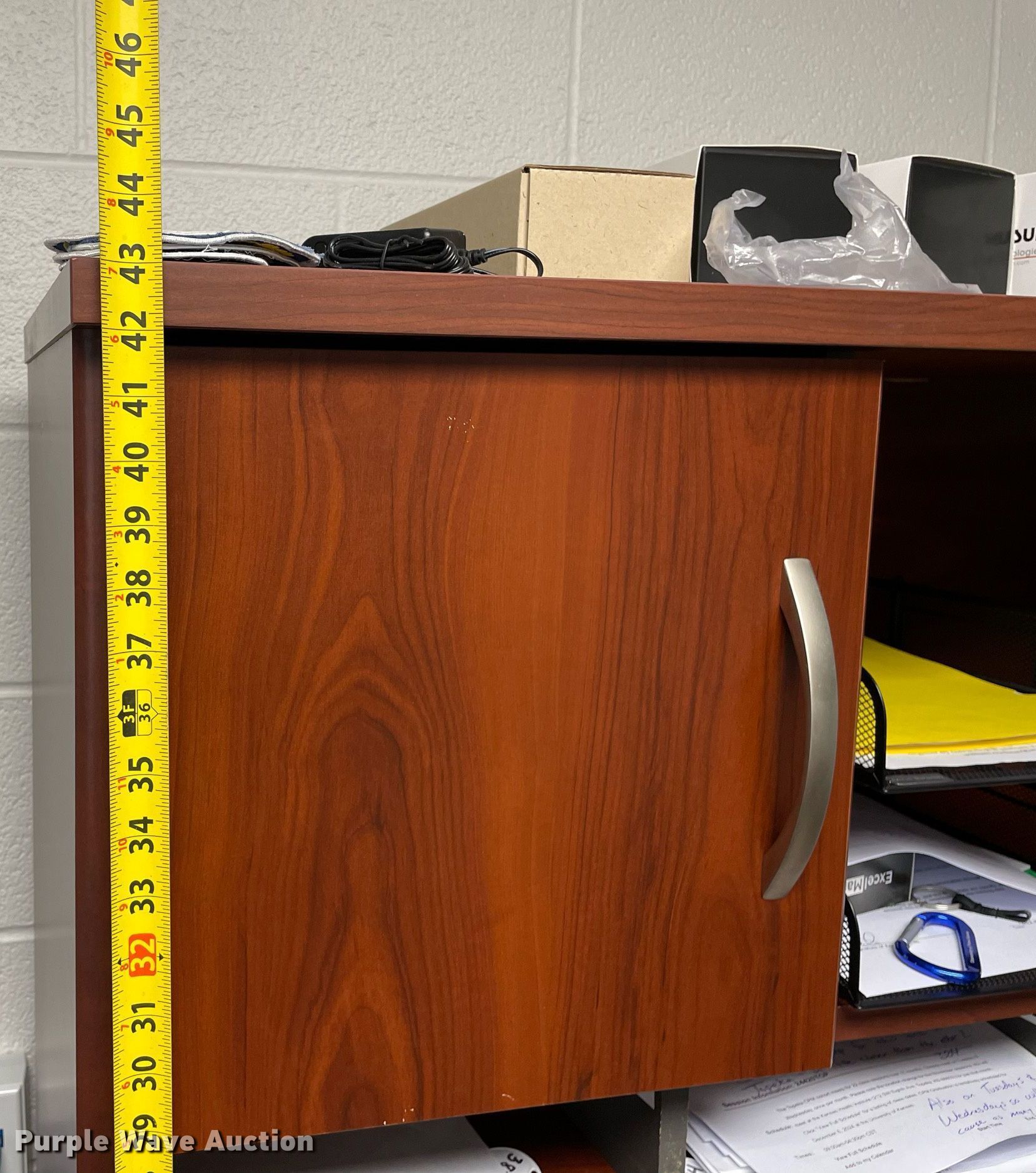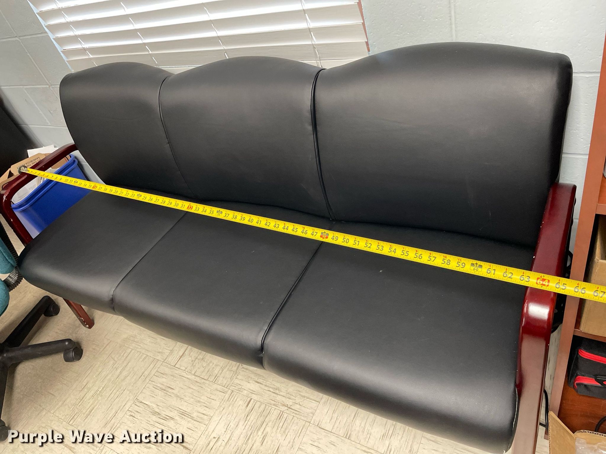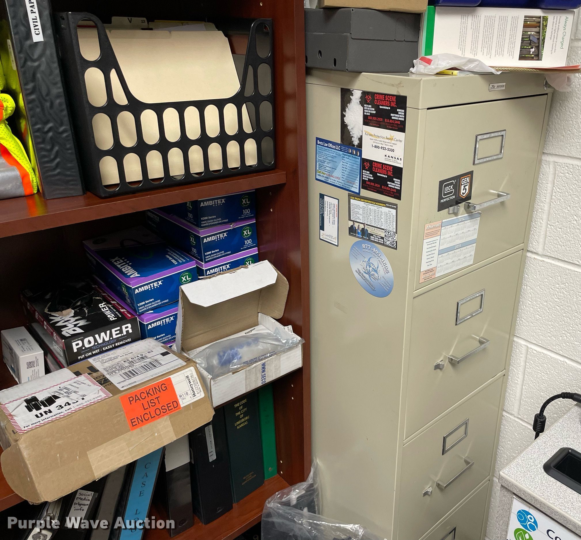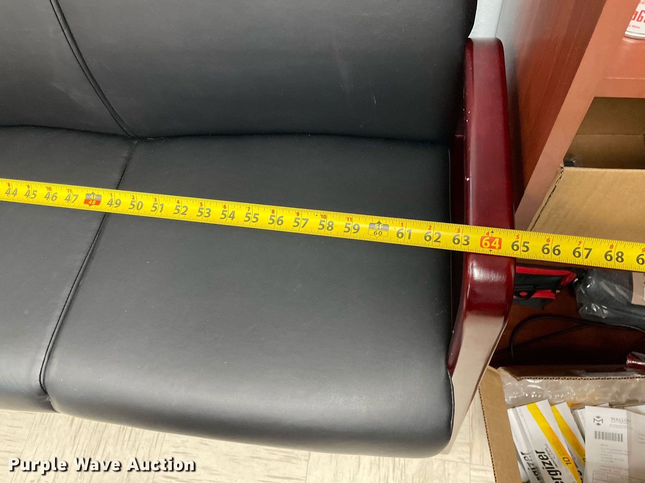Purple Wave is selling a used Furniture in Kansas. This item is a Office furniture with the following: Complete desk set, Four drawer file cabinet, Wooden shelf, Couch, (4) office chairs, Paper shredder not included, TV not included, Contents not included