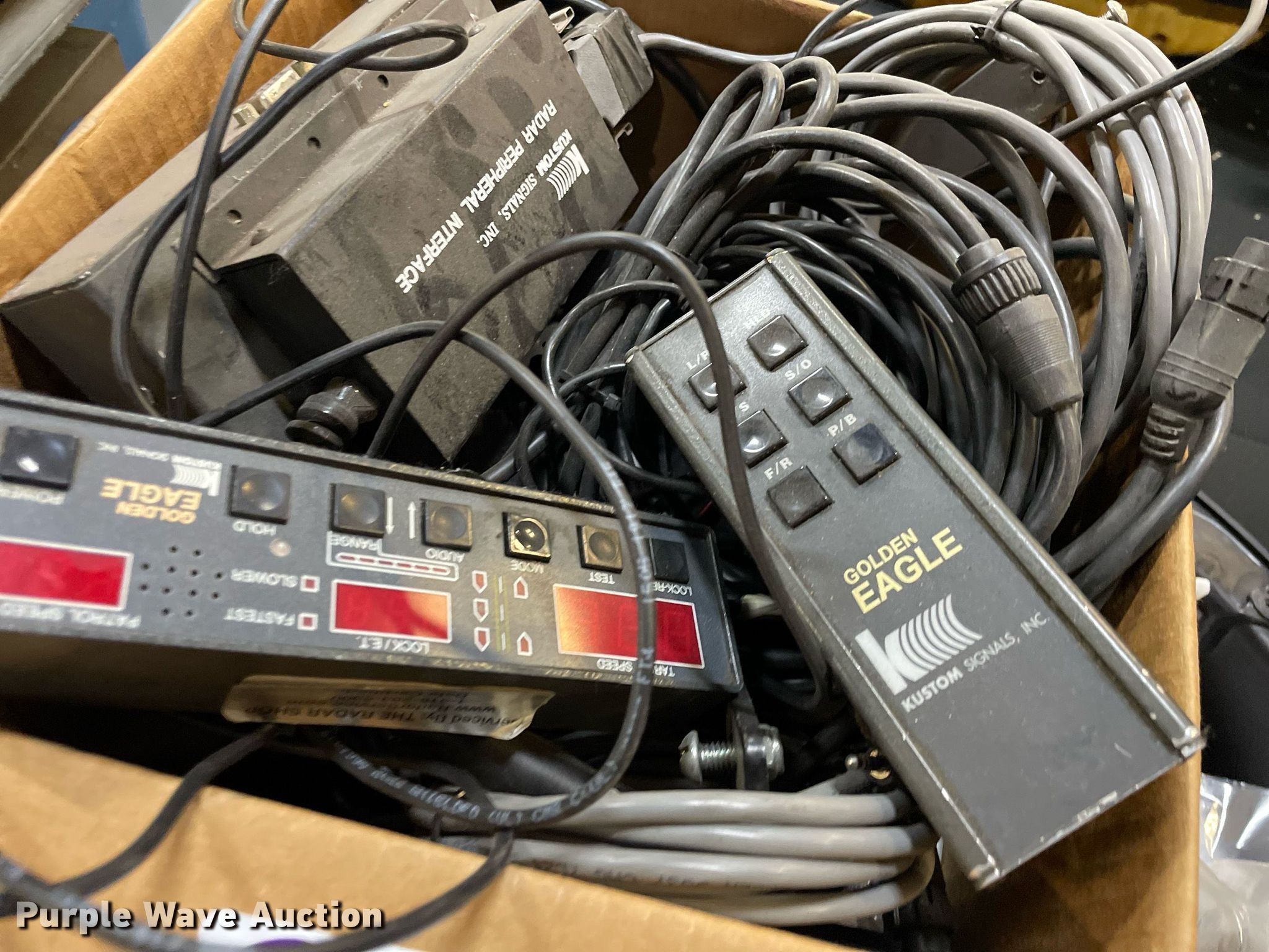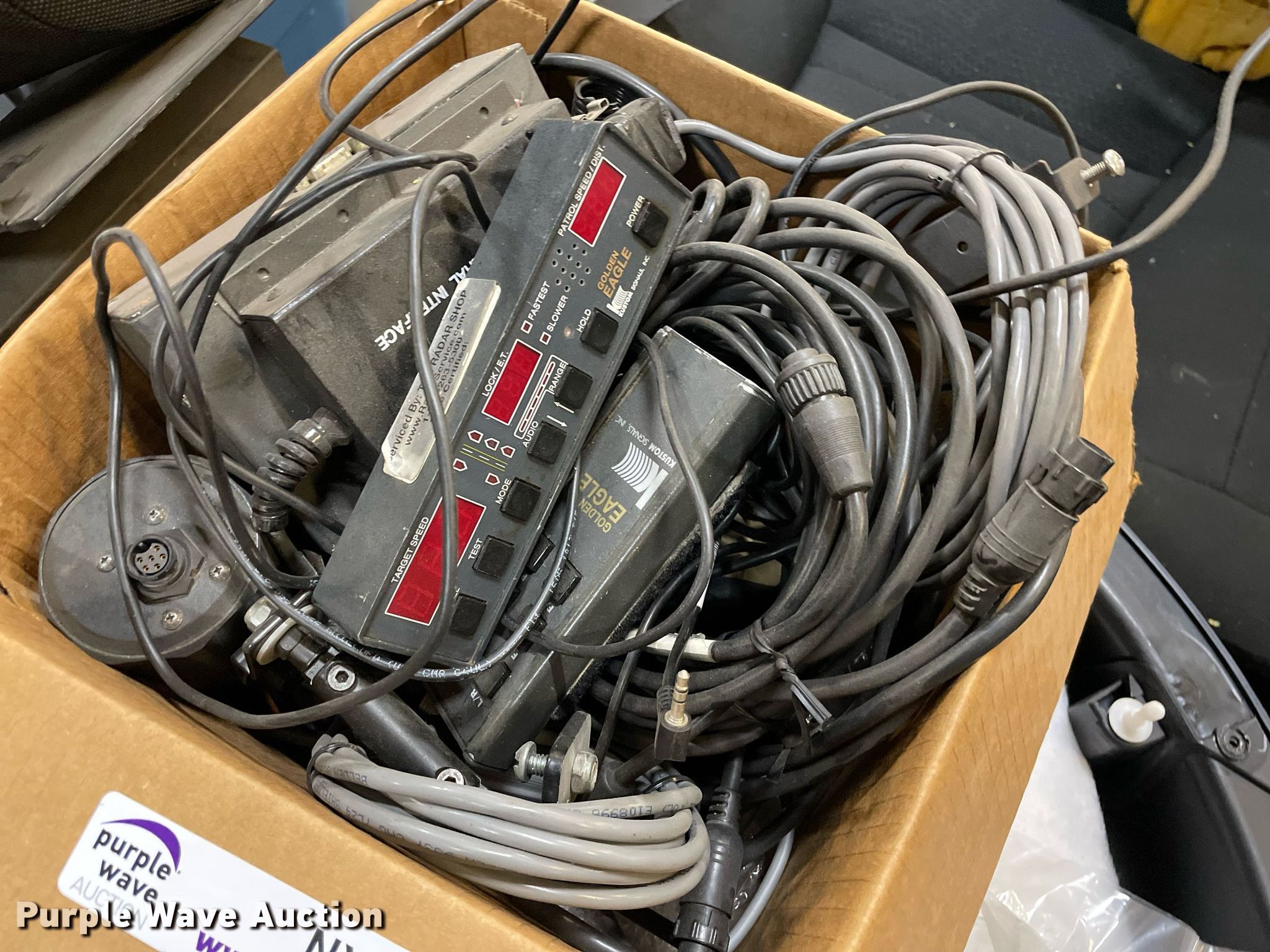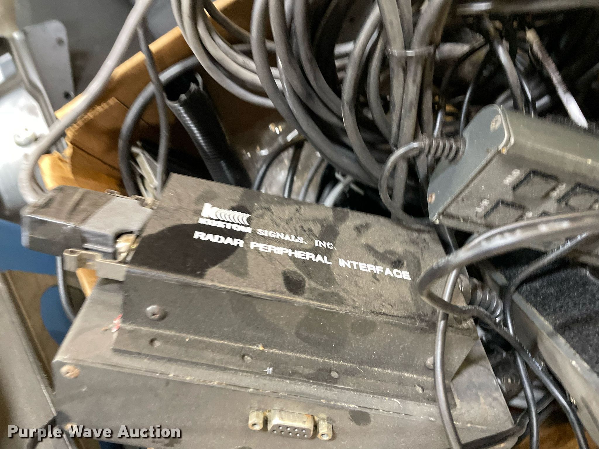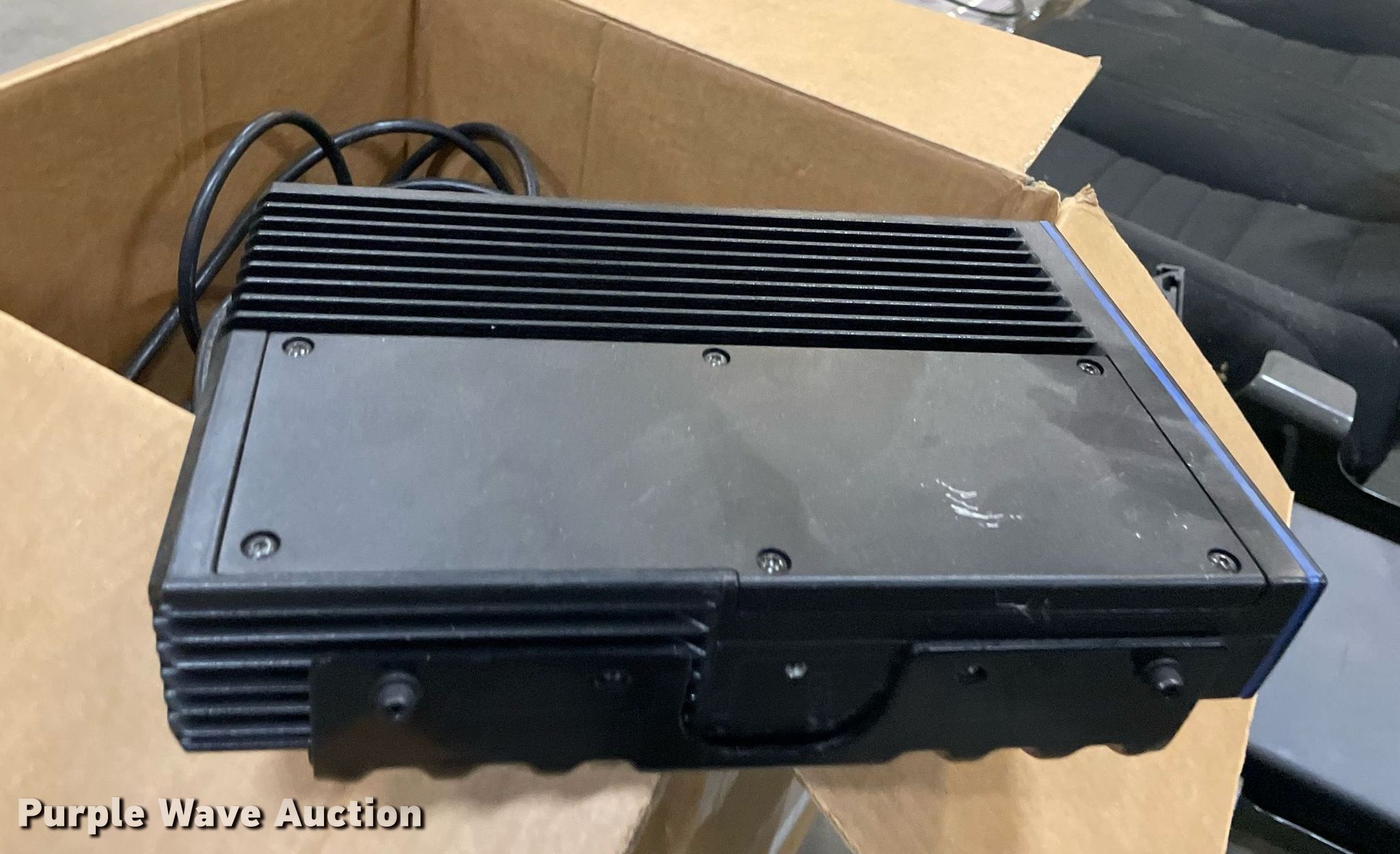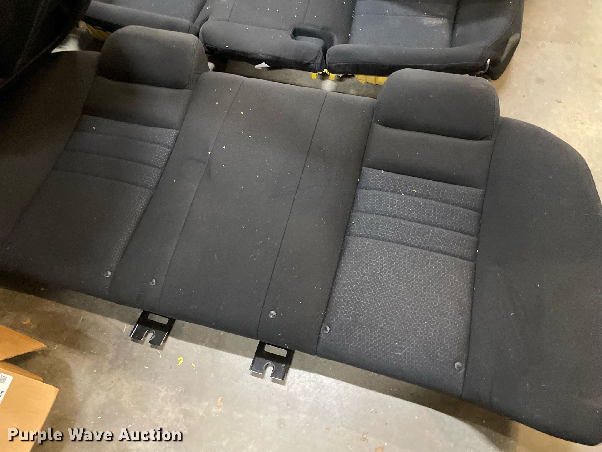 Purple Wave is selling a used Automotive Parts or Acces. in Kansas. This item is a Automotive parts with the following: (3) backseats, Removed from Dodge Charger, (2) Dodge Charger door panels, unused, Whelen light bar, Approximately 30 carpet squares, Custom signals radar, Center console components, Container of siren boxes and speakers, Container included, (2) M/A-Com radios, Push bumper and more