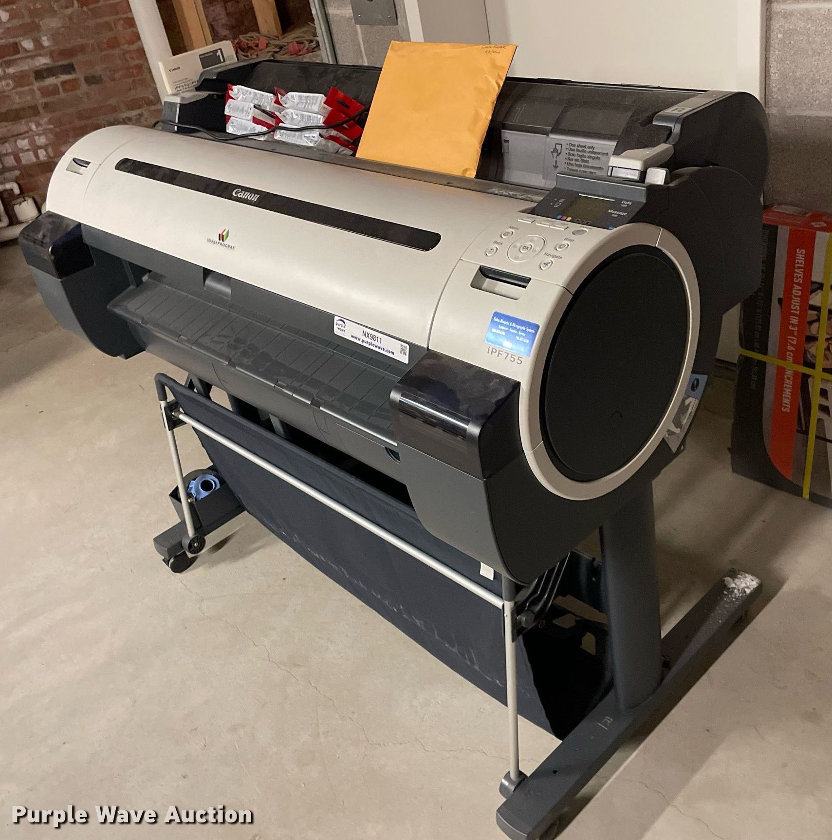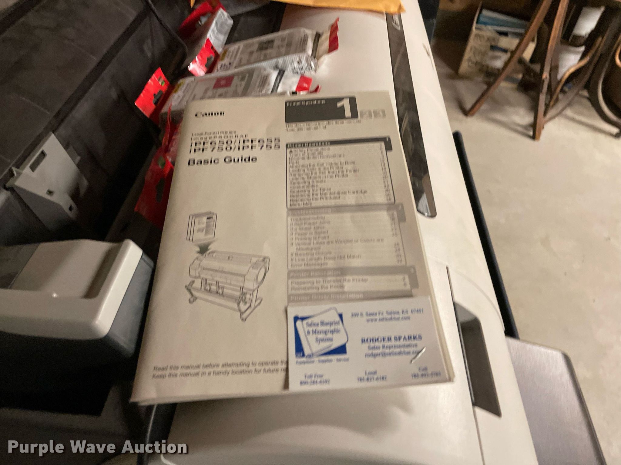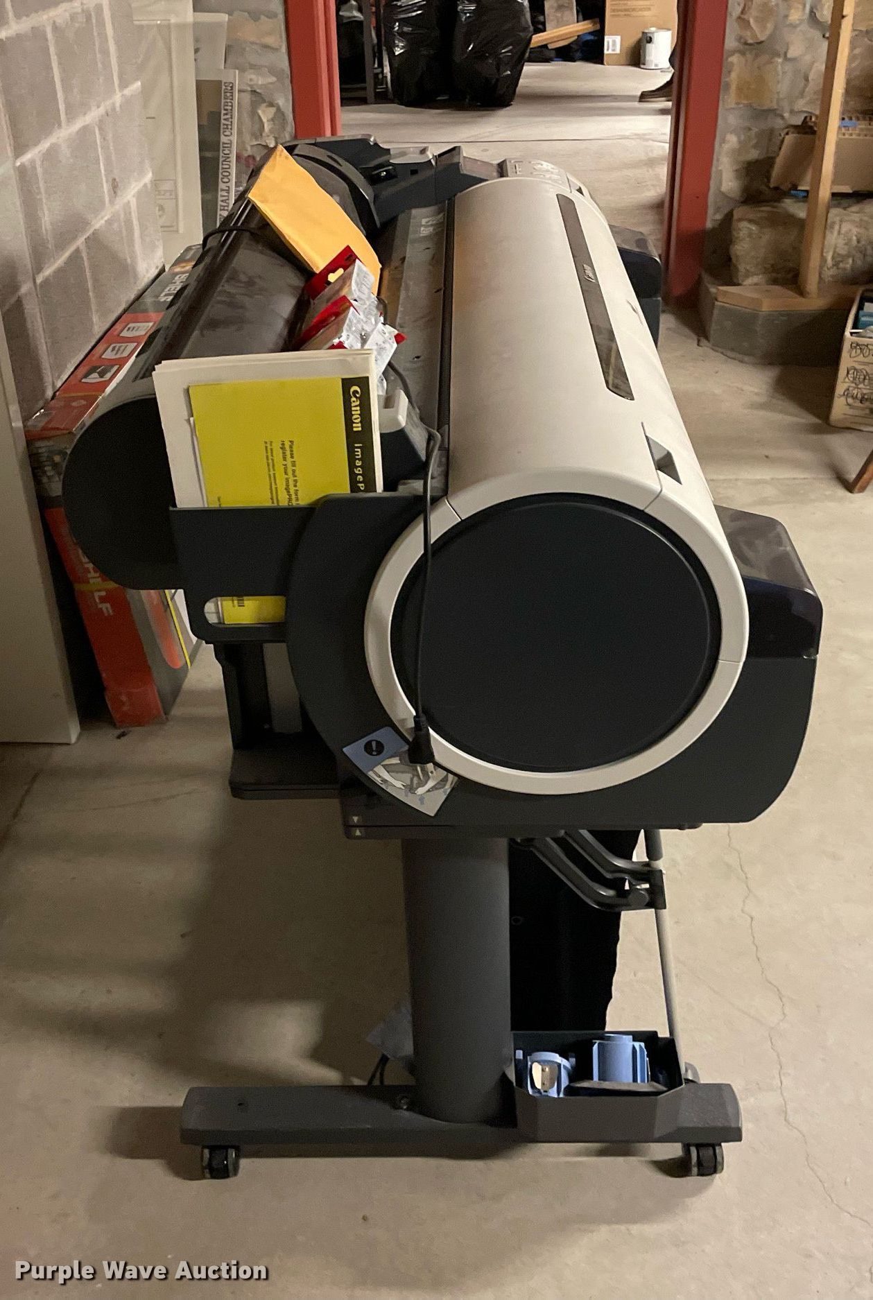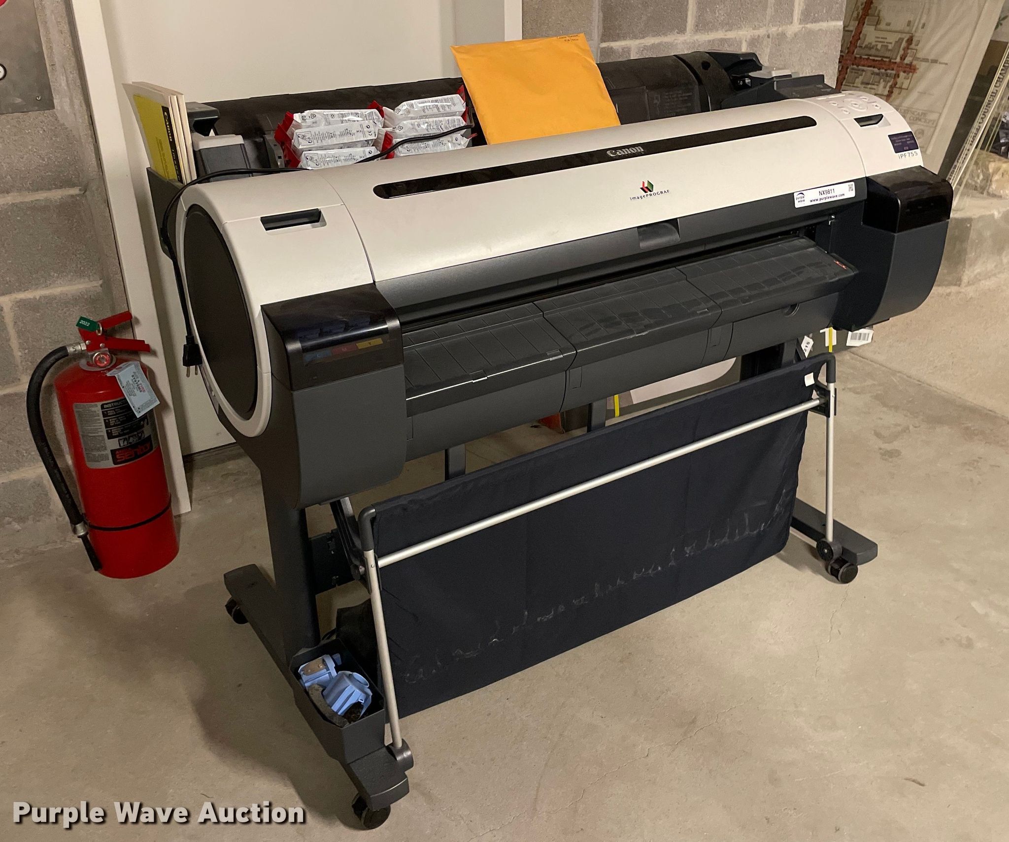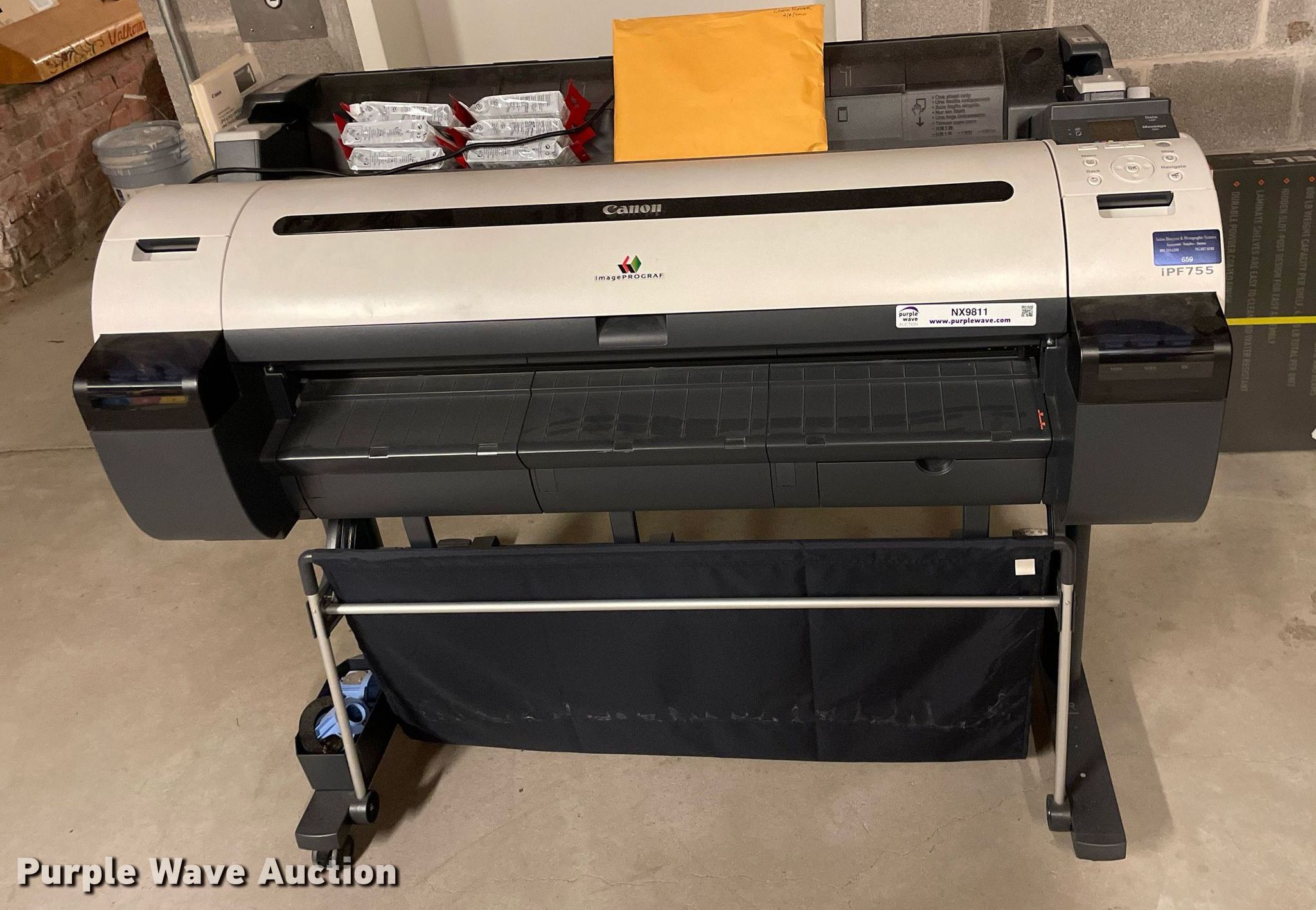 Purple Wave is selling a used Electronics in Kansas. This item is a Canon iPF755 printer with the following: Ink included, Serial: AAAH0434