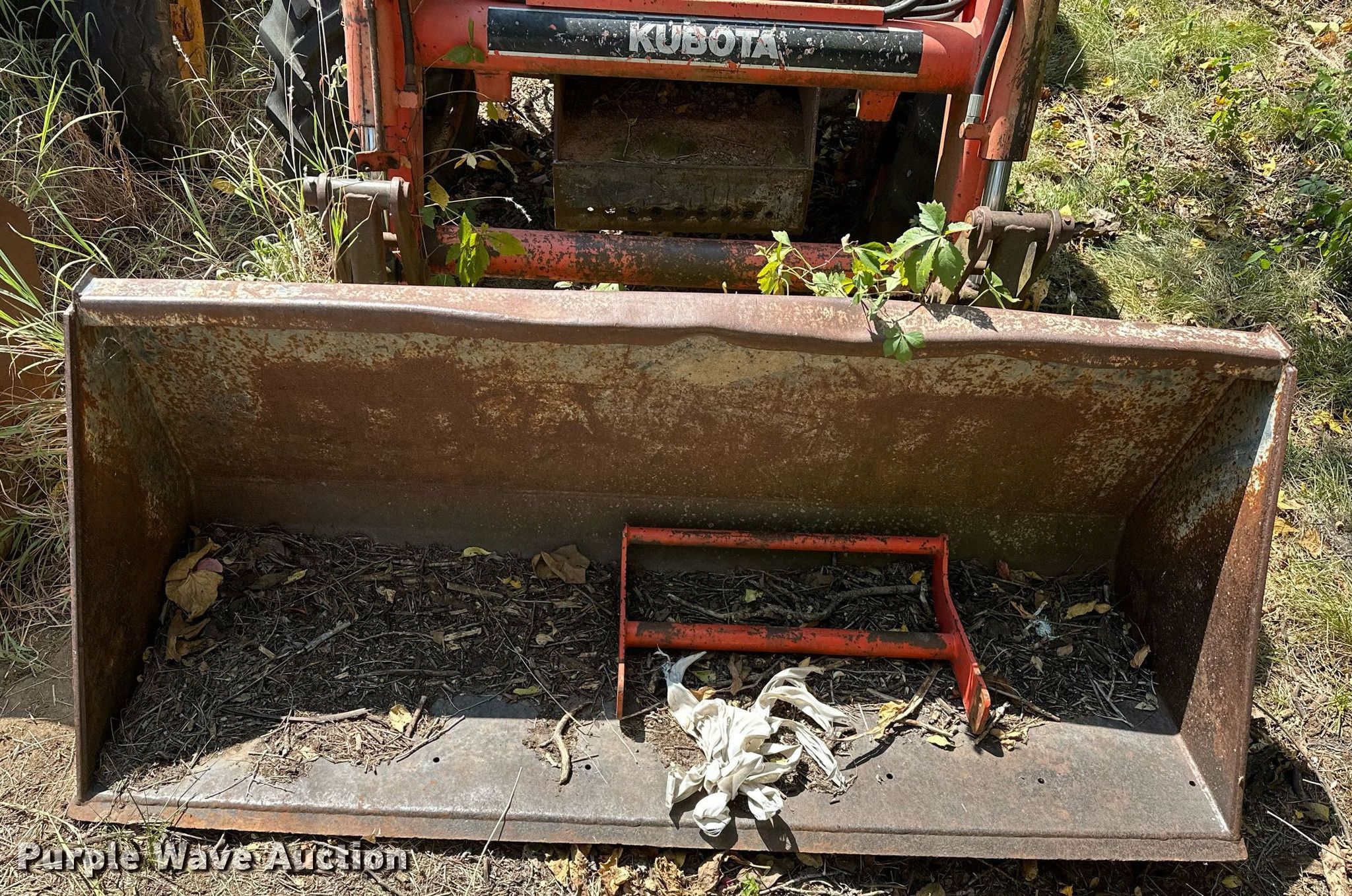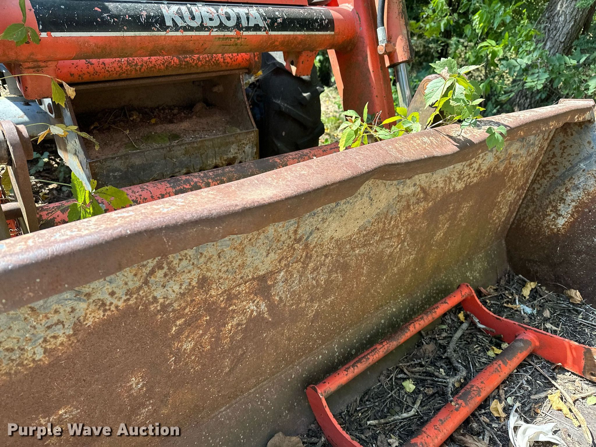 1985 Kubota M7030SU tractor. Hours: 3,468 on meter, Serial: M7030DT. Engine Kubota , Cylinders: 4, Fuel type: Diesel. Transmission Manual, 8F - 2R, Differential lock. Features PTO: 540, Three point Top link, Hydraulic remote sets Rear: 2, Loader Kubota M1250, Controls: Two-lever, Bucket Width: 72".. Tires Front: 9.5-24, Rear: 18.4/15-28. Notes Brush hog not included , Dead battery, Hydraulic hose damaged , Unknown operating condition. Town of Fairfax. Fairfax, OK 74637