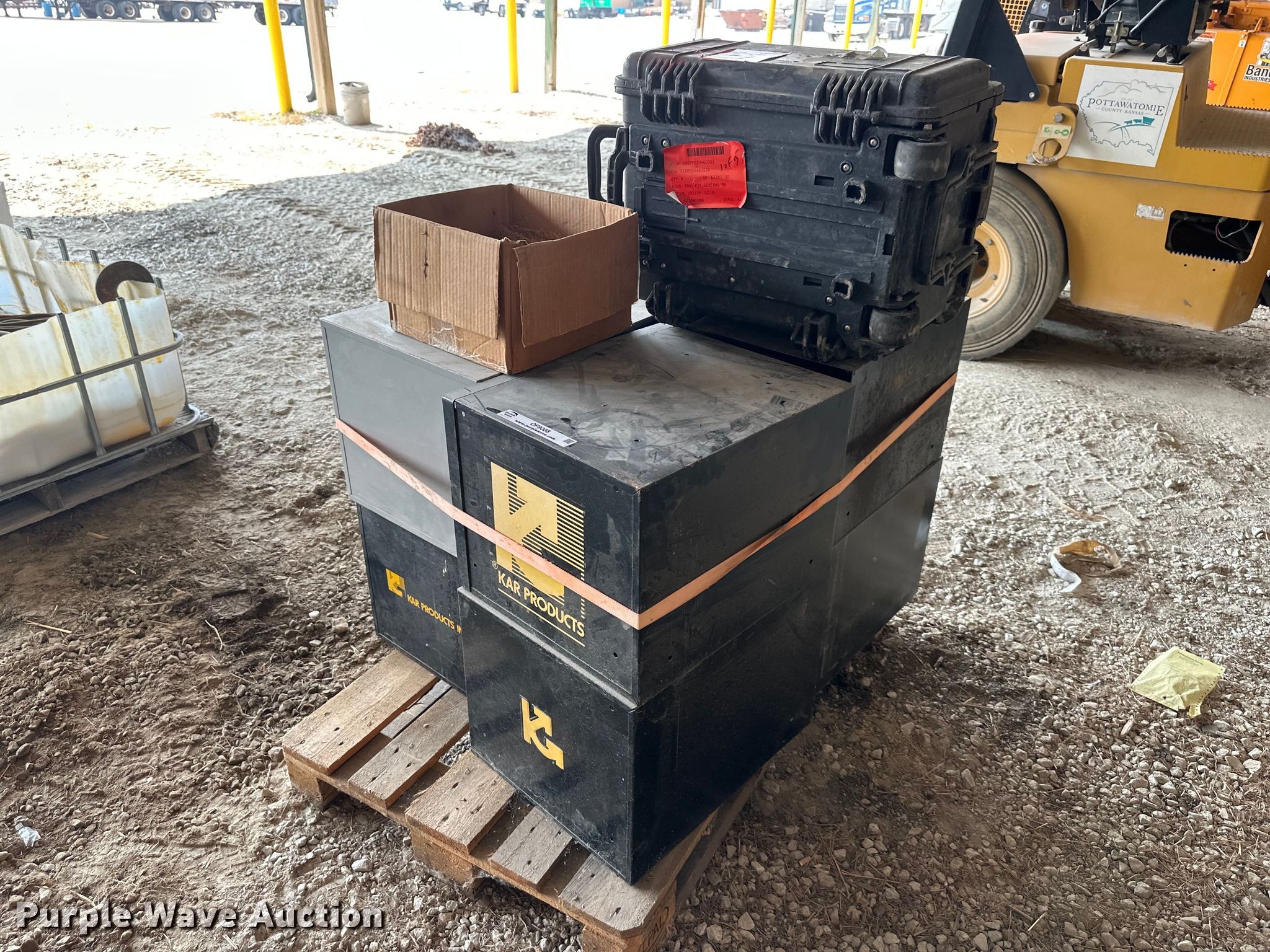 Purple Wave is selling a used Tools in Kansas. This item is a (9) storage boxes with the following: (9) storage boxes. Pottawatomie County Public Works. 306 Fifth St. Westmoreland, KS 66549