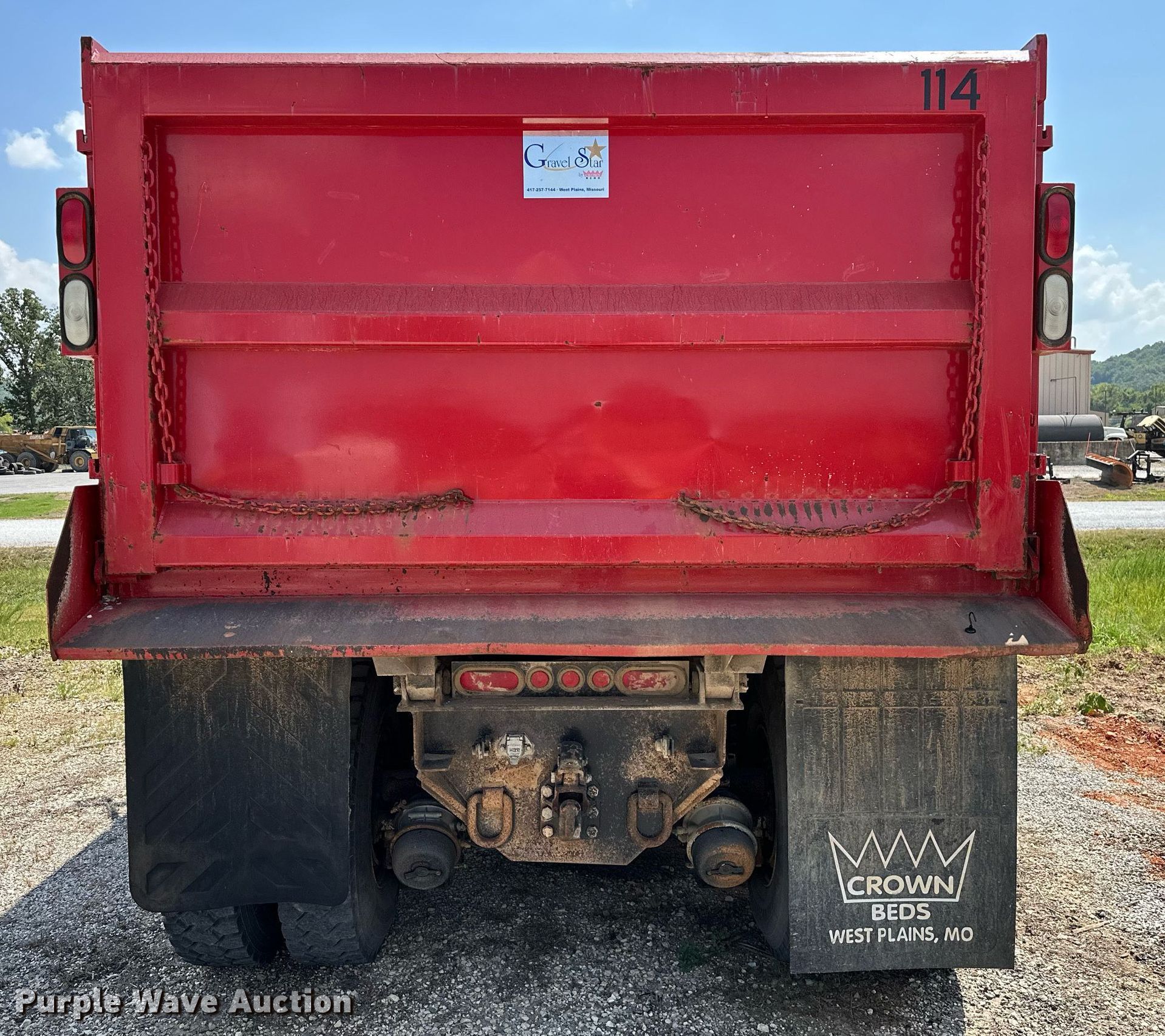 2007 Mack CHN613 dump truck. Miles: 470,692 on odometer, VIN: 1M1AJ06Y47N010493, Unit #: 114. Engine Displacement: 12.0L, Cylinders: 6, Fuel type: Diesel, Engine brake. Transmission Mack Maxitorque T2090, Manual, Speed: 9. Chassis Double frame, Axles: Tandem, Differential lock: Inter-axle, Suspension: Camelback, Brakes: Air, PTO, GVWR: 50,000 lbs FAWR: 12,000 lbs, IAWR: 19,000 lbs, RAWR: 19,000 lbs. Interior AC, Heat, Heated mirrors, Cruise control, Brake controller. Features Dump bed Crown Gravel Star, 14' L x 96" W, Side height: 52", Bed type: Steel, Roll tarp, Ram: Single, End gate: Air operated. Tires Size: 11/R22.5. Notes Windshield chipped or cracked, Dead battery, Unknown operating condition of AC, Exhaust issues, hole, Non-operational engine. Arkansas title. Title distribution may be delayed up to 14 days from verification of funds. Washington County, AR. 2615 Brink Dr. Fayetteville, AR 72701
