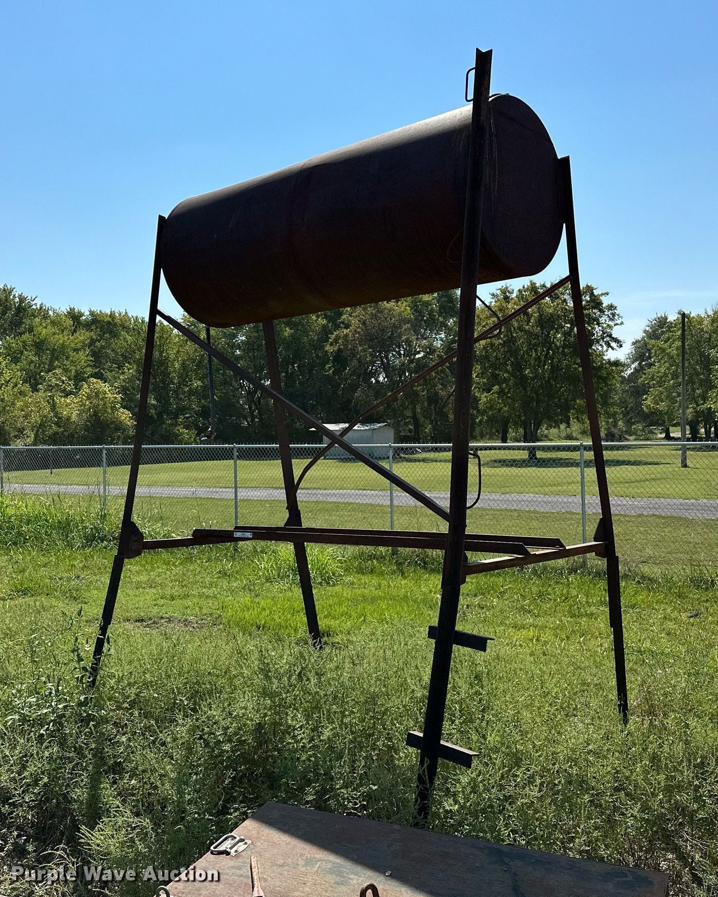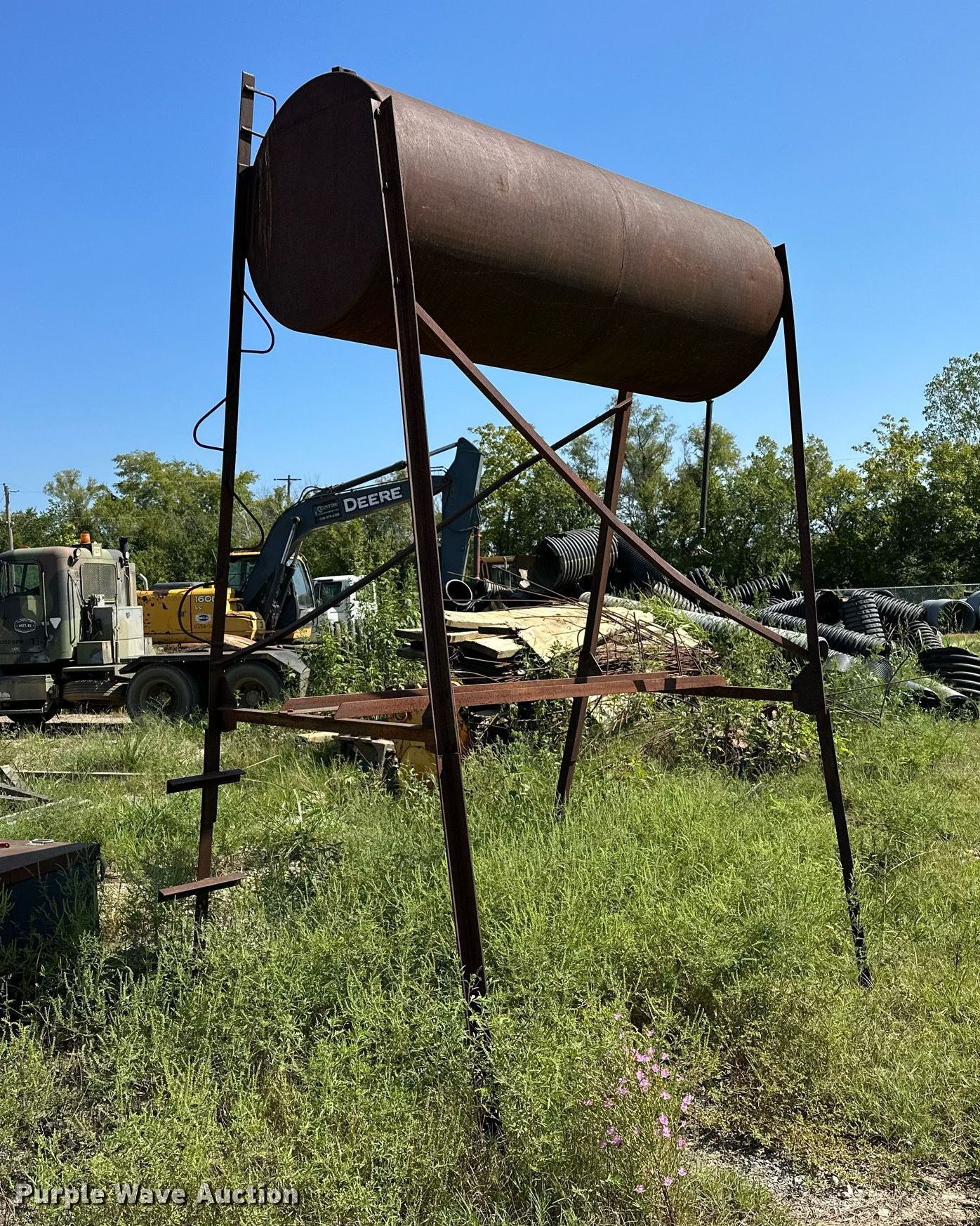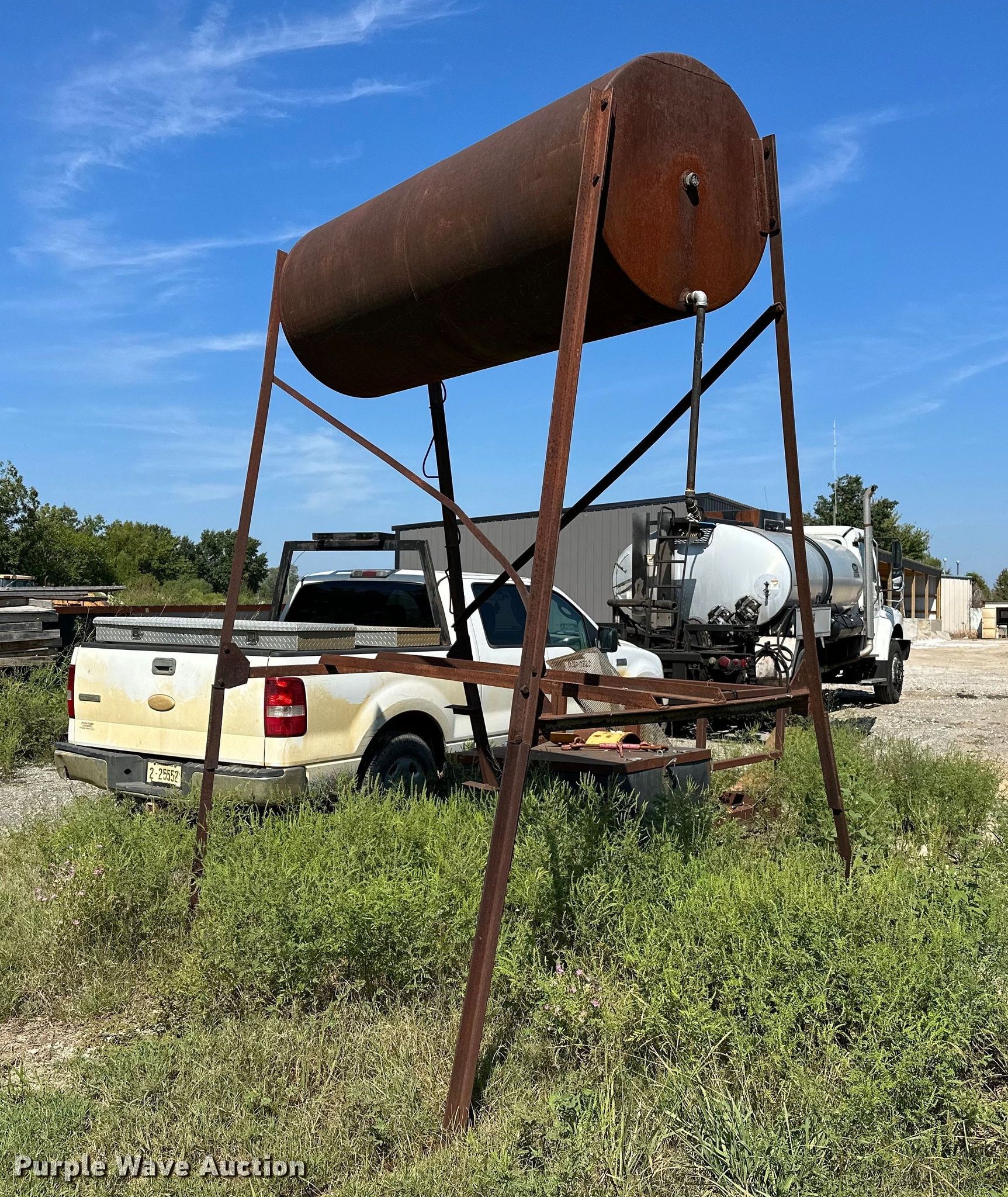 Purple Wave is selling a used Fuel and Lube in Oklahoma. This item is a Fuel tank with the following: Capacity: 300 gallons, Stand, 92"L x 123"W x 136"H