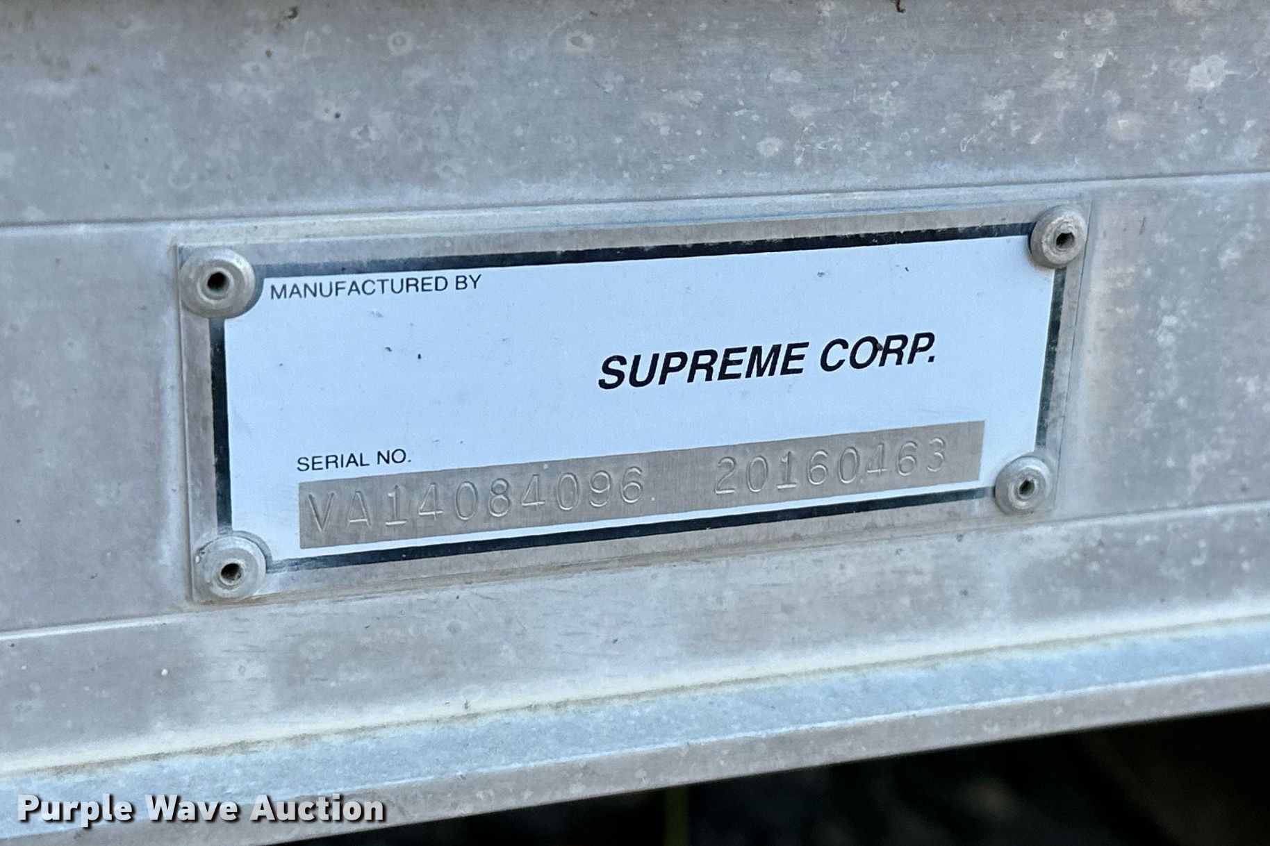 Supreme box bed. VIN: VA14084096 20160463. Dimensions Overall: 15' L x 96" W, Body: 14' L x 96" W, Rear door / ramp Width: 84". Features Deck type: Wood. Notes Contents not included. Muskogee County. 306 Zenith. Warner, OK 74469