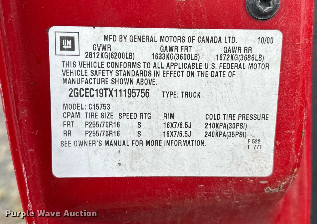 - VIN: 2GCEC19TX11195756