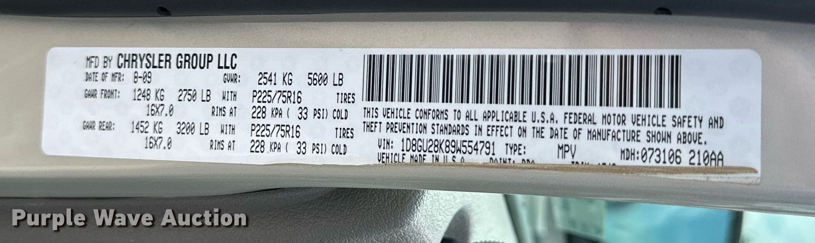 - VIN: 1D8GU28K89W554791