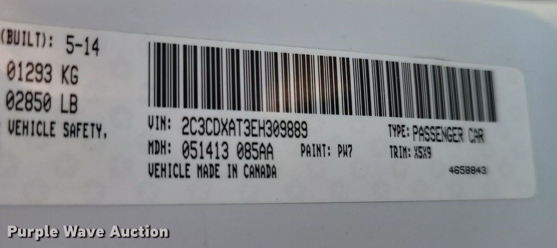 - VIN: 2C3CDXAT3EH309889