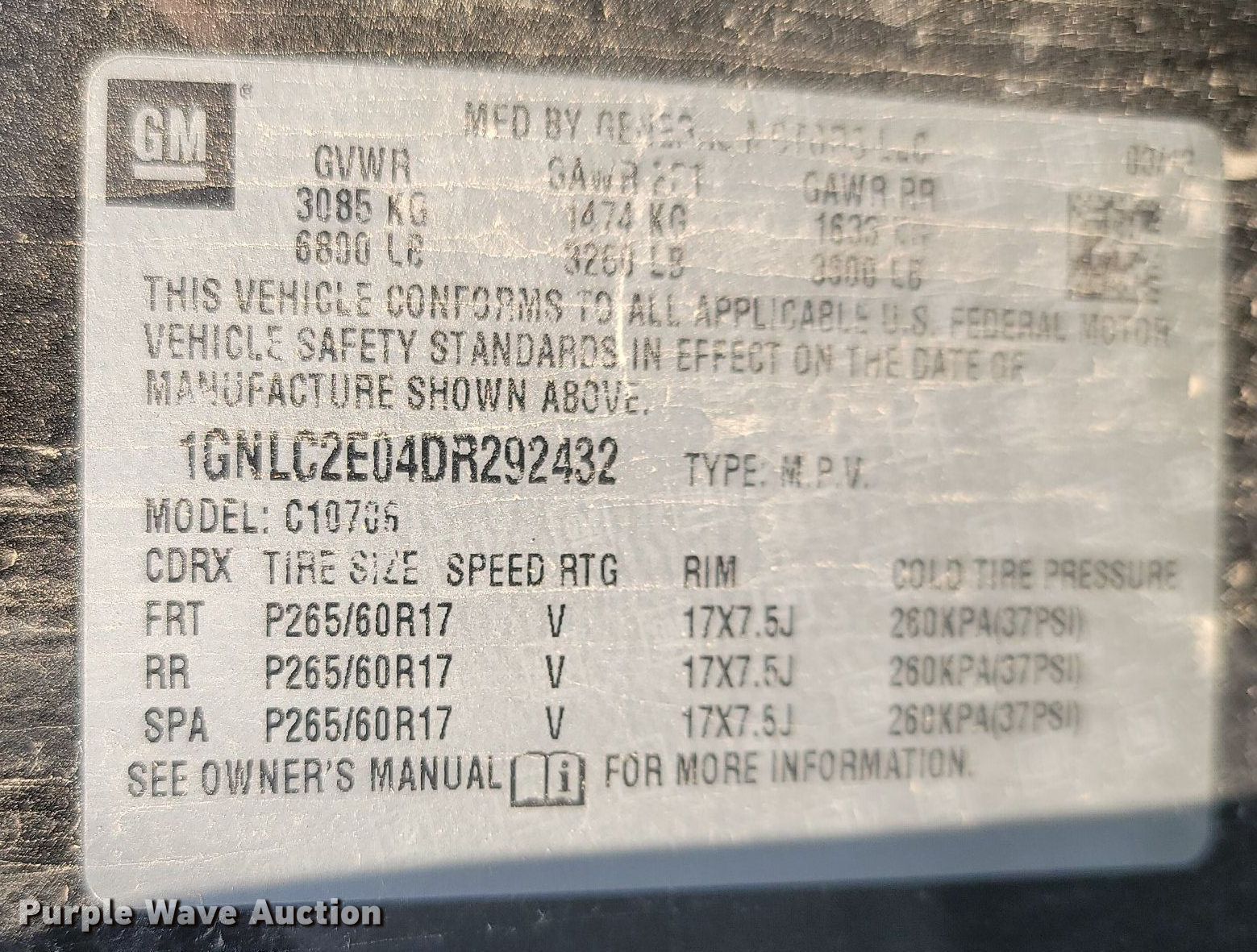 Purple Wave is selling a used Passenger Vehicle in Arkansas. This item is a 2013 Chevrolet Tahoe Police SUV with the following: Miles: 184,060 on odometer, VIN: 1GNLC2E04DR292432