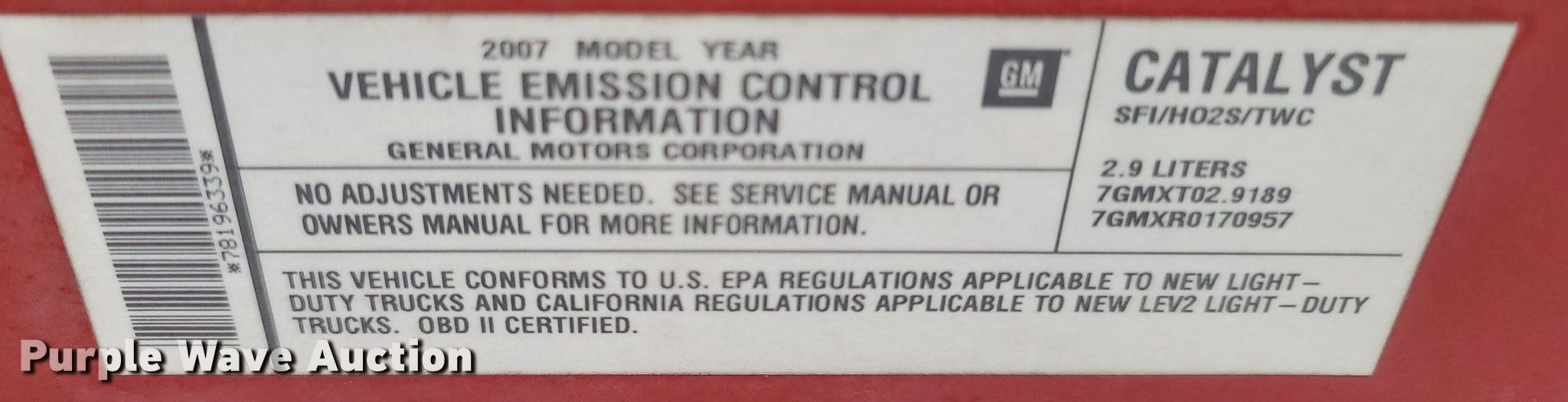 Purple Wave is selling a used Compact Pickup or Van in Arkansas. This item is a 2007 Chevrolet Colorado Ext. Cab pickup truck with the following: Miles: Unknown, VIN: 1GCDT199278196339