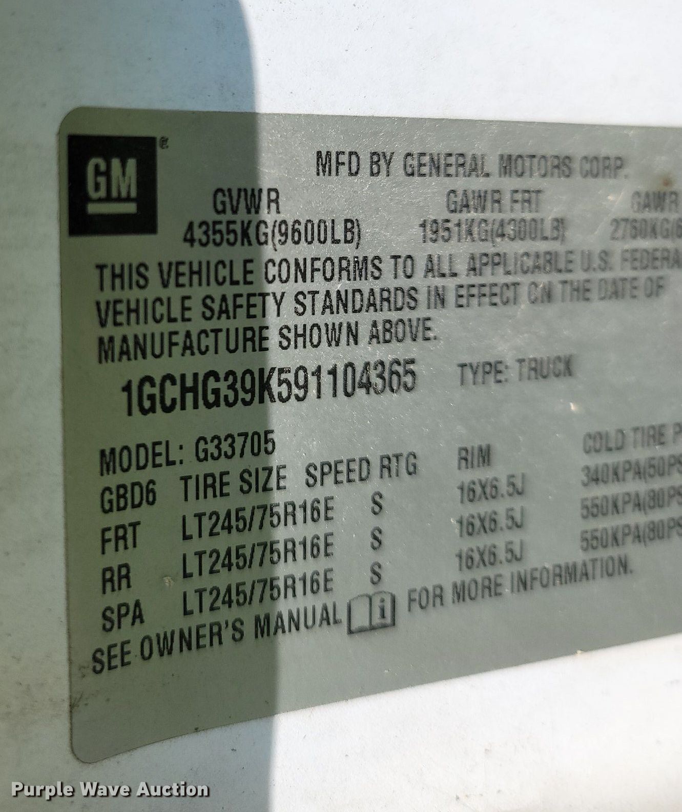 - VIN: 1GCHG39K591104365