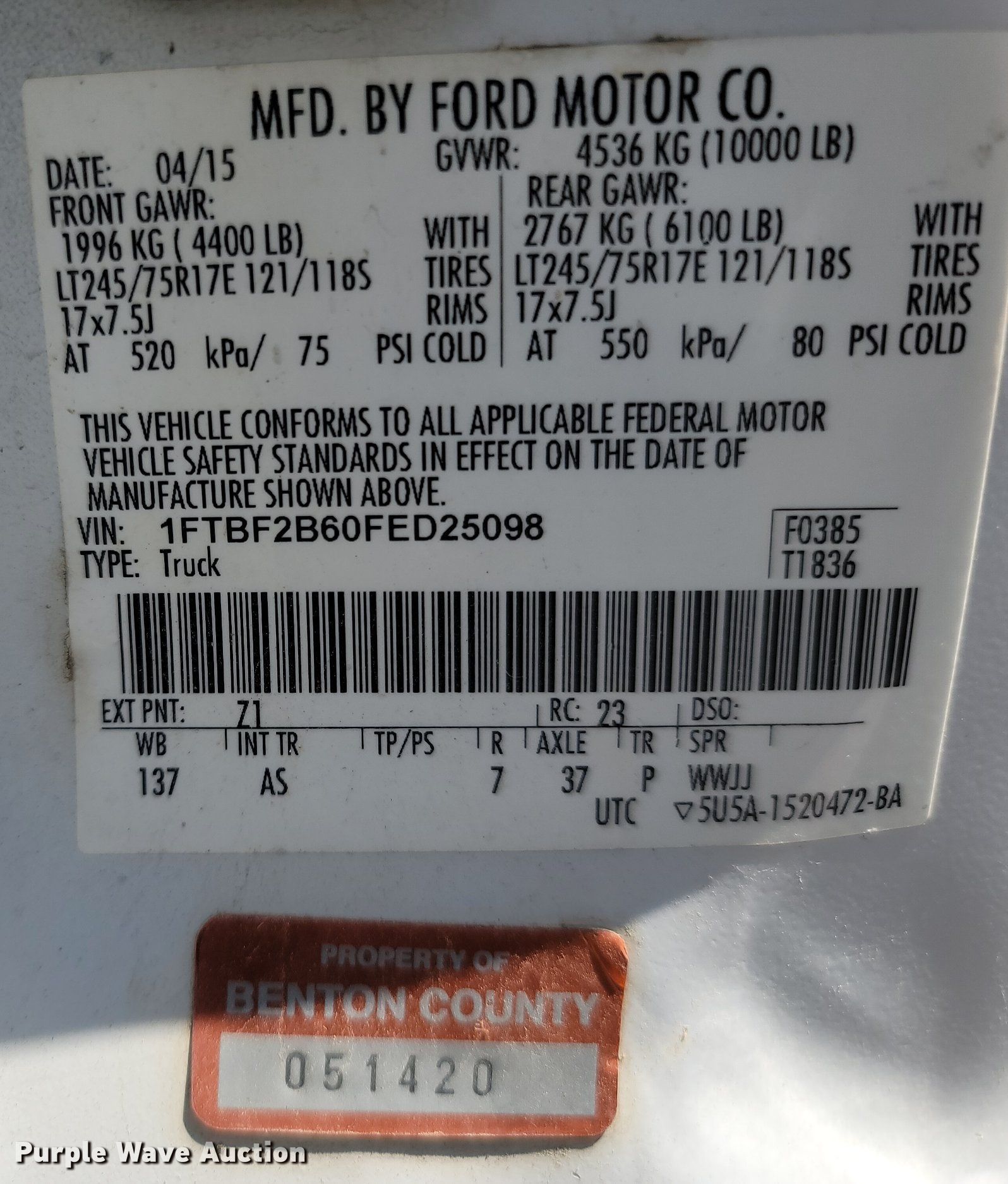 Take a look at this used 2015 Ford F250 pickup truck being sold on October 17th, 2023 in the SOLD! October 17 Government Auction made by Ford. Take a look at all of the item information below or take a look at similar auctions for Pickups and Vans.
