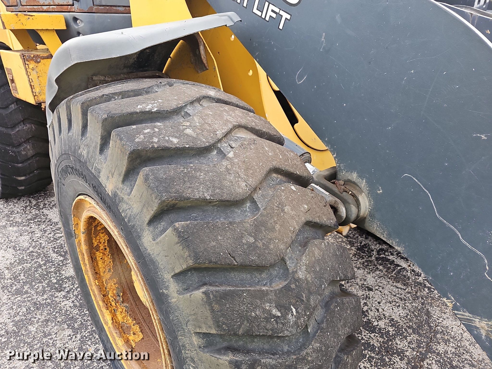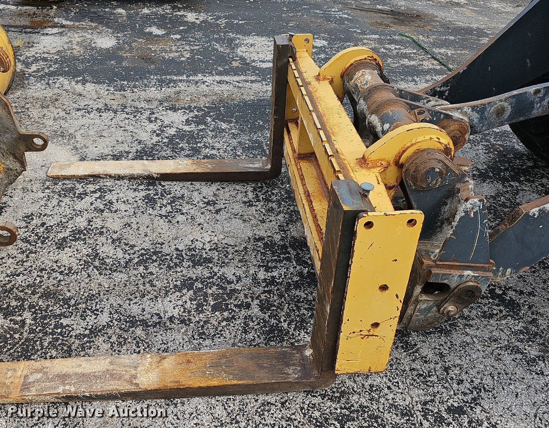 2007 John Deere 444J high lift wheel loader. Hours: 5,428 on meter, Serial: DW444JH612885, Unit #: G9317. Engine Cylinders: 6, Fuel type: Diesel. Transmission Powershift, 4F - 4R. Chassis Differential lock: Front, Rear, Limited slip: Front, Rear. Operators station Enclosed cab, AC, Heat, Bucket controls: Joystick, Ride control. Features Auxiliary hydraulics: Front, Quick coupler: Hydraulic, Bucket Width: 99", Cutting edge: Bolt-on, Forks Length: 48". Tires Size: 17.5-25. Missouri Department of Transportation-Southwest District. 3025 E Kearney St. Springfield, MO 65803