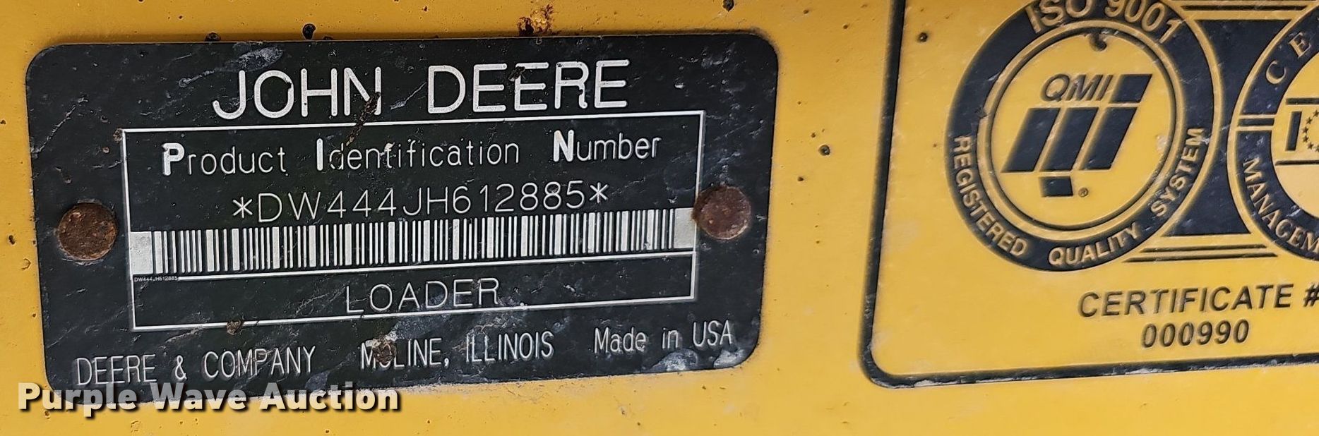Purple Wave is selling a used Wheel Loader in Missouri. This item is a 2007 John Deere 444J high lift wheel loader with the following: Hours: 5,428 on meter, Serial: DW444JH612885, Unit #: G9317