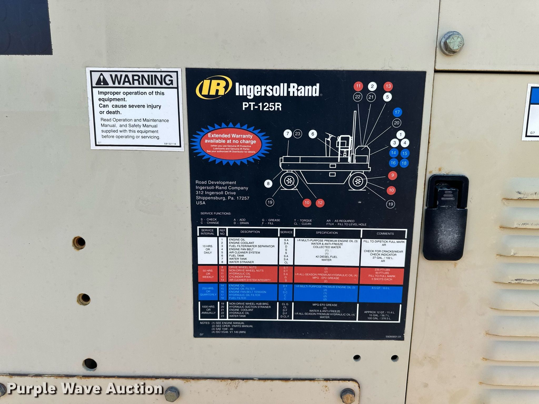 Purple Wave is selling a used Pneumatic Roller in Kansas. This item is a 2005 Ingersoll Rand PT-125R pneumatic roller with the following: Hours: 589 on meter, Serial: 186394, KDOT ID: 641-3035